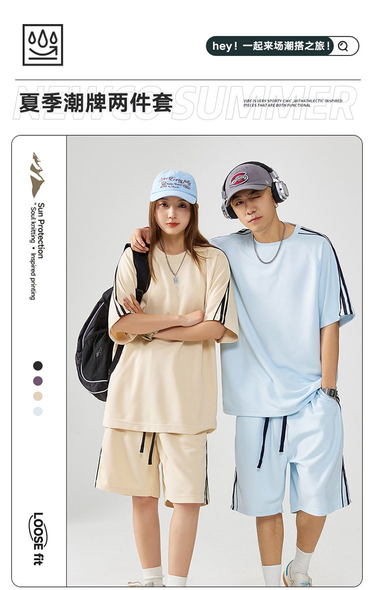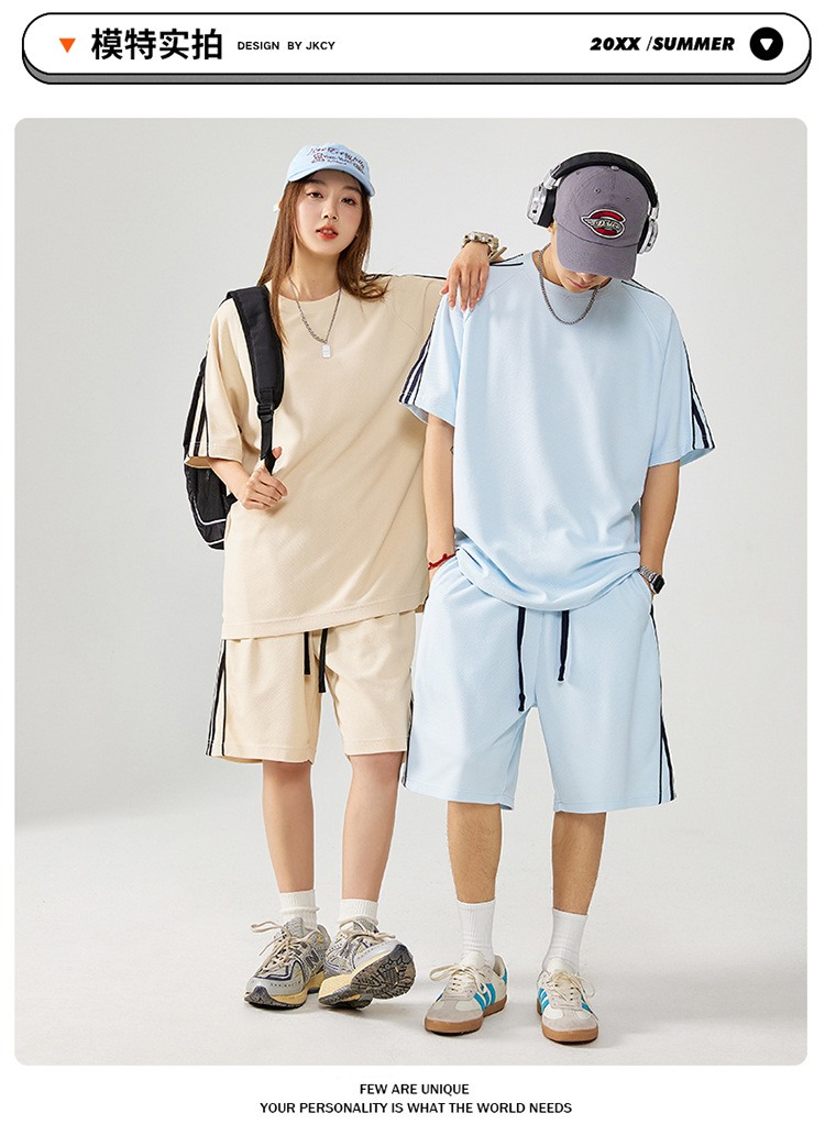 잭 추양 반팔 티셔츠 남자 여름 커플 반소매 티셔츠 남성 패션 브랜드 캐주얼 반바지 스포츠웨어 세트
