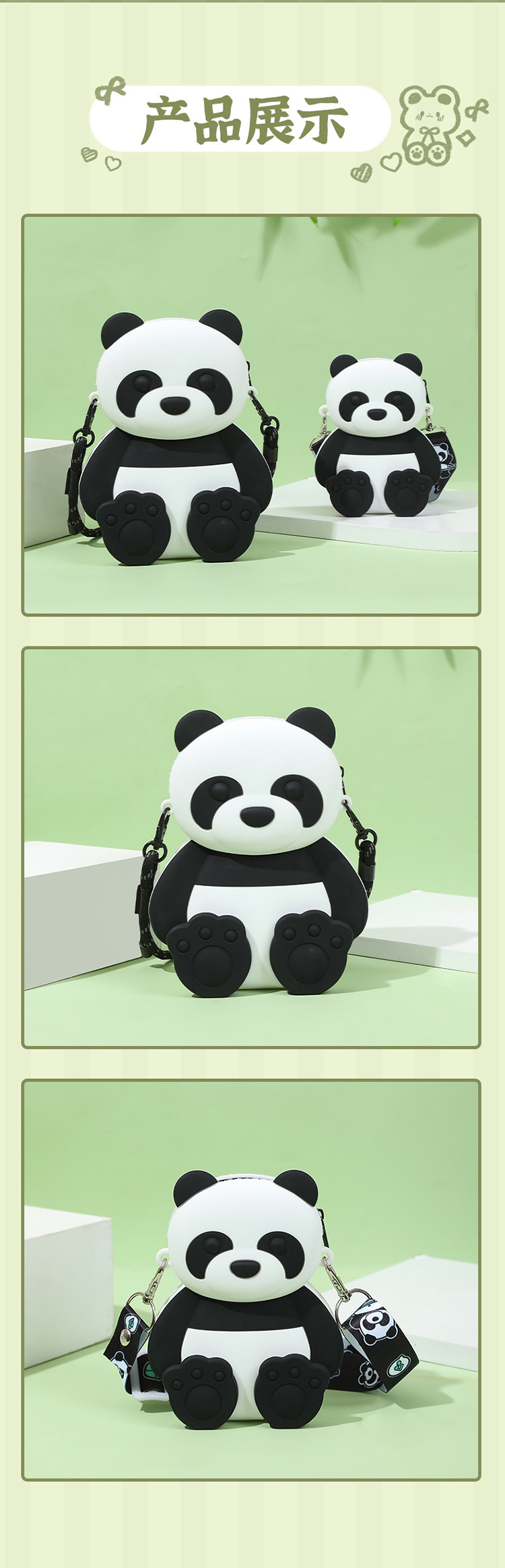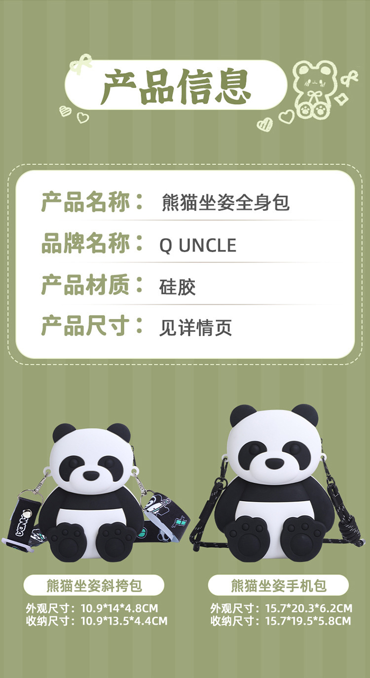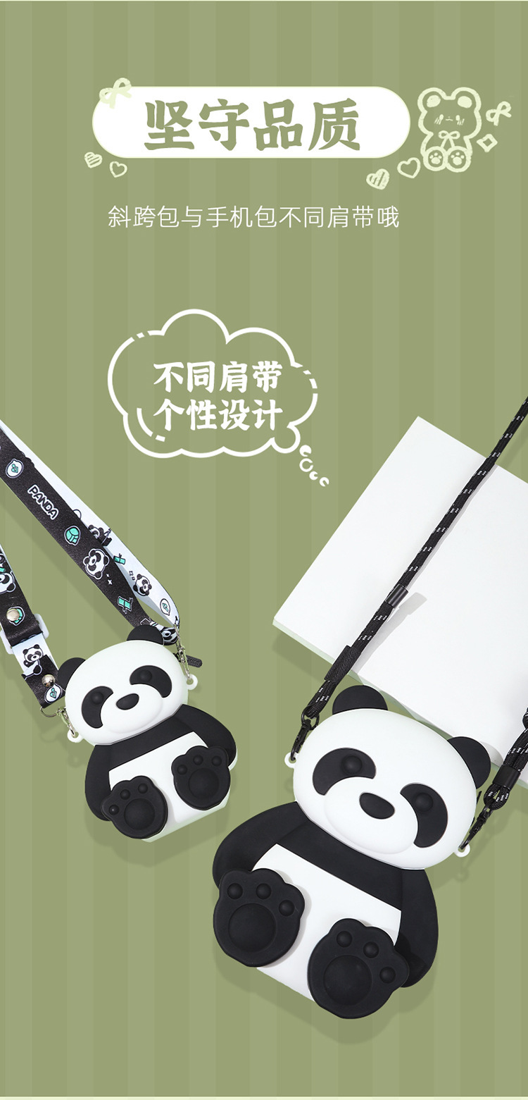 여름 새로운 귀여운 팬더 실리콘 크로스 바디 가방 어린이 만화 팬더 휴대 전화 가방 대용량 3 차원 배낭