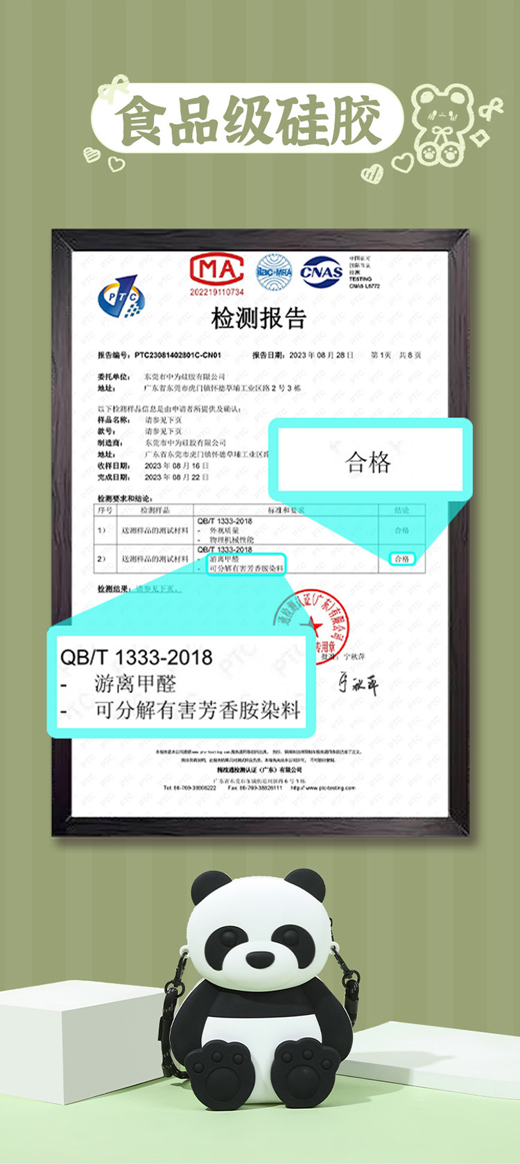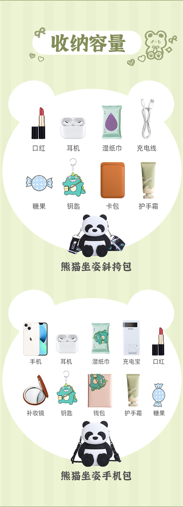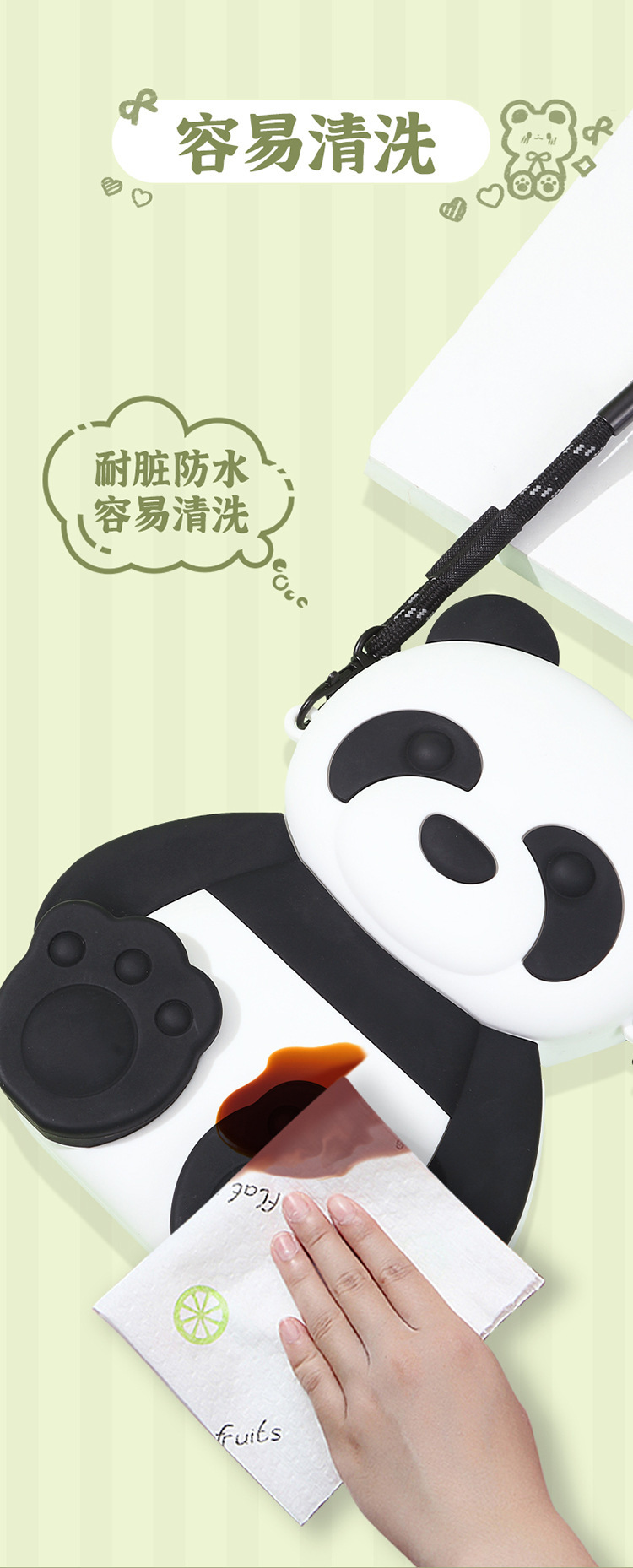 여름 새로운 귀여운 팬더 실리콘 크로스 바디 가방 어린이 만화 팬더 휴대 전화 가방 대용량 3 차원 배낭