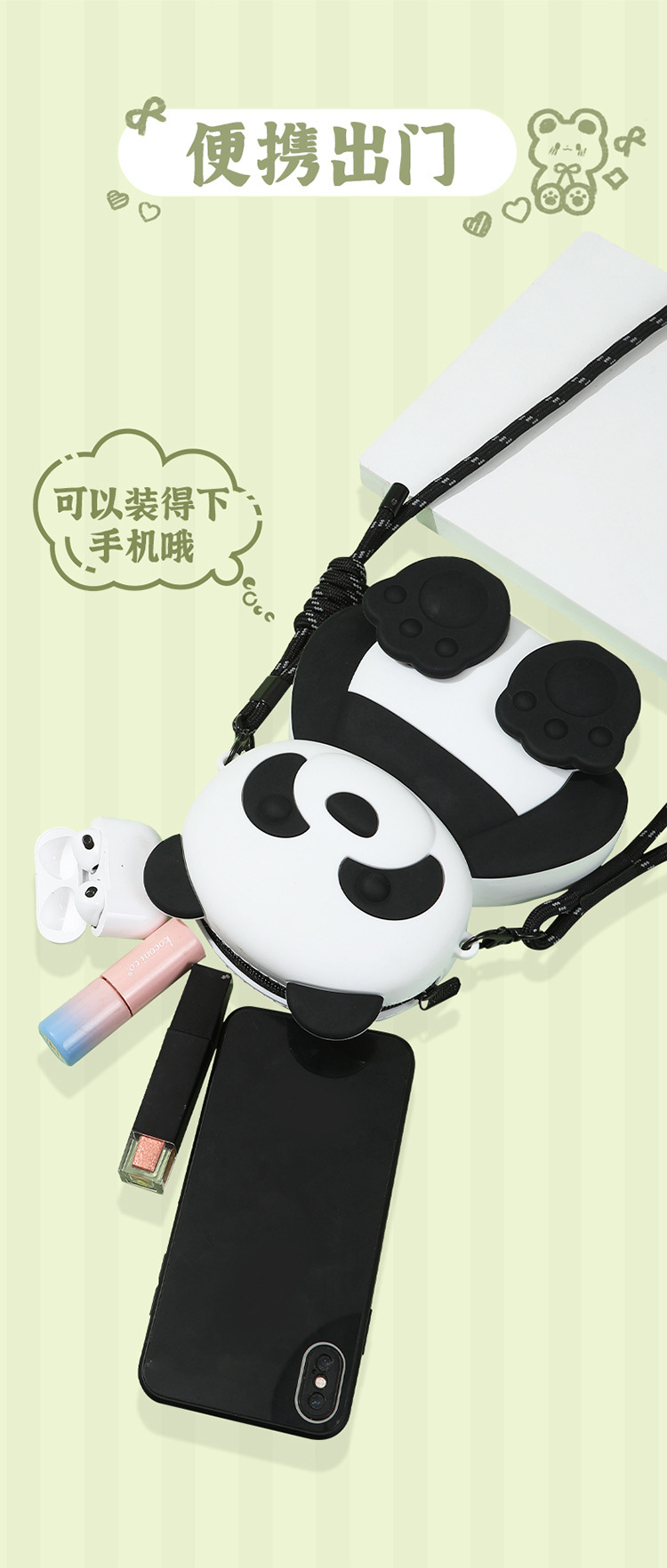 여름 새로운 귀여운 팬더 실리콘 크로스 바디 가방 어린이 만화 팬더 휴대 전화 가방 대용량 3 차원 배낭스토어 가기