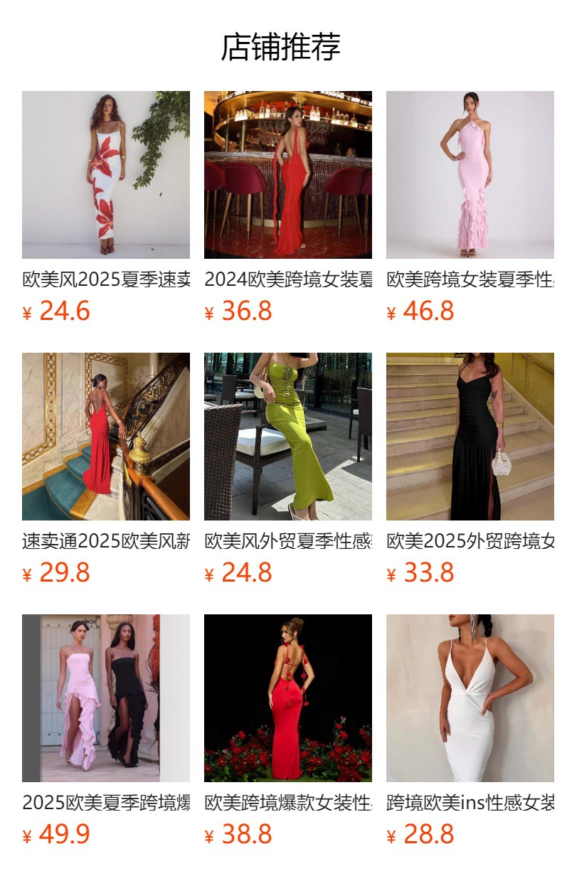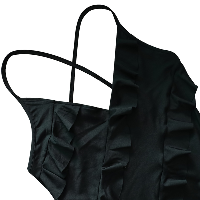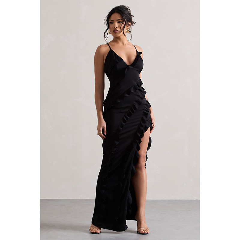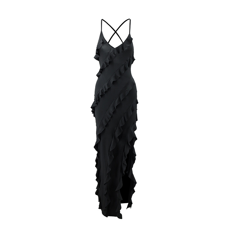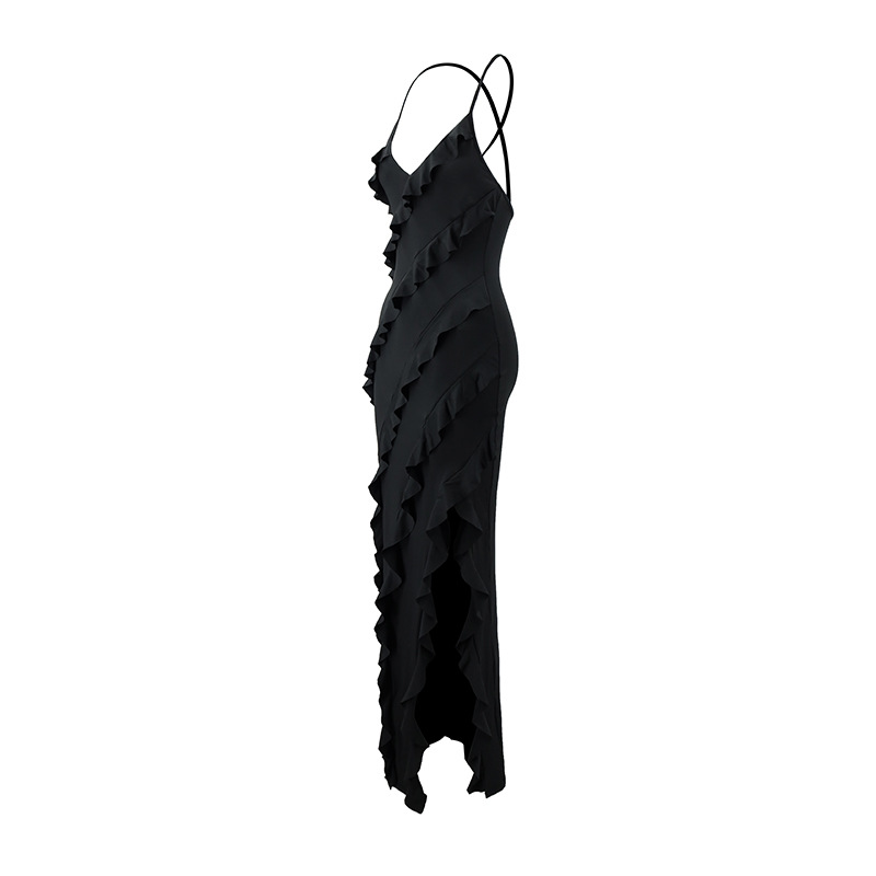 2025년 여성 섹시 브이넥 러플 사이드 슬릿 백리스 슬립 드레스 도매, 핫걸 유럽풍스토어 가기