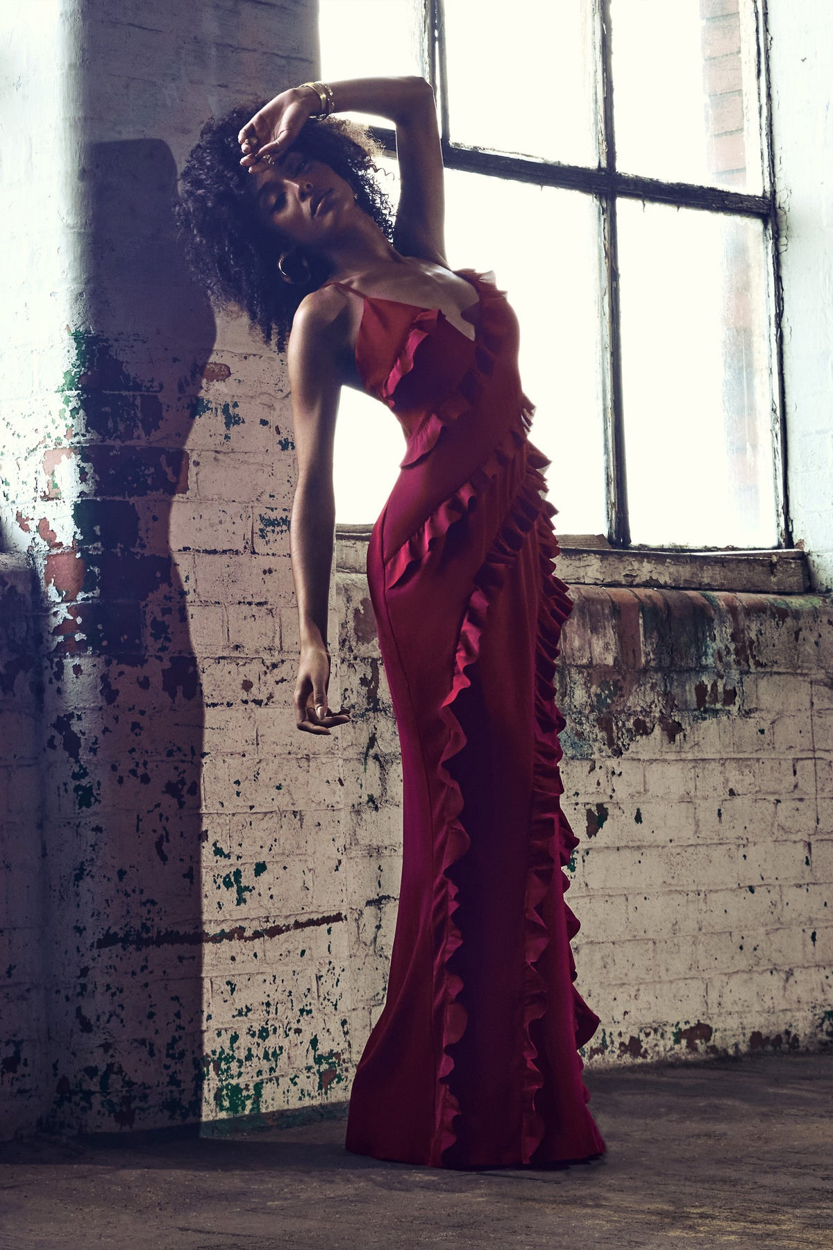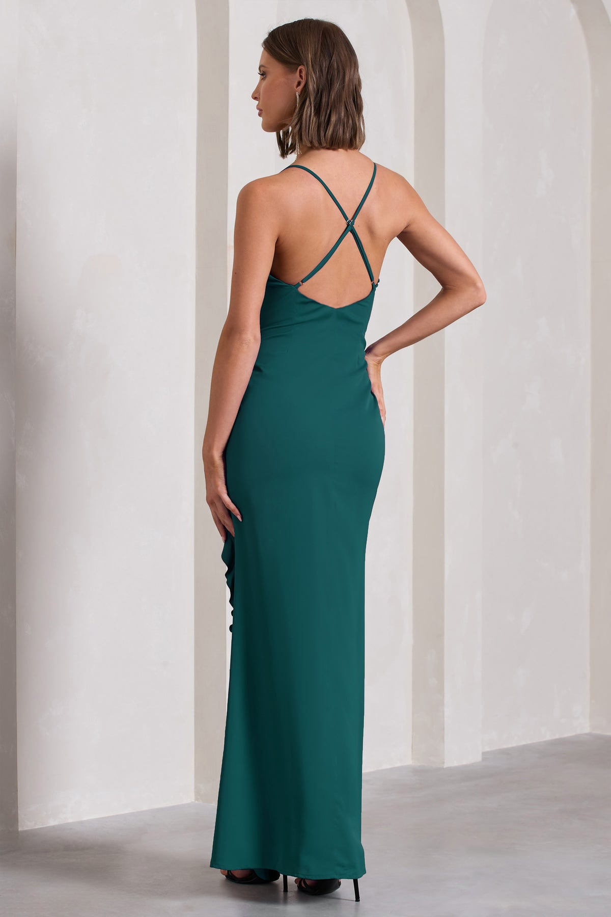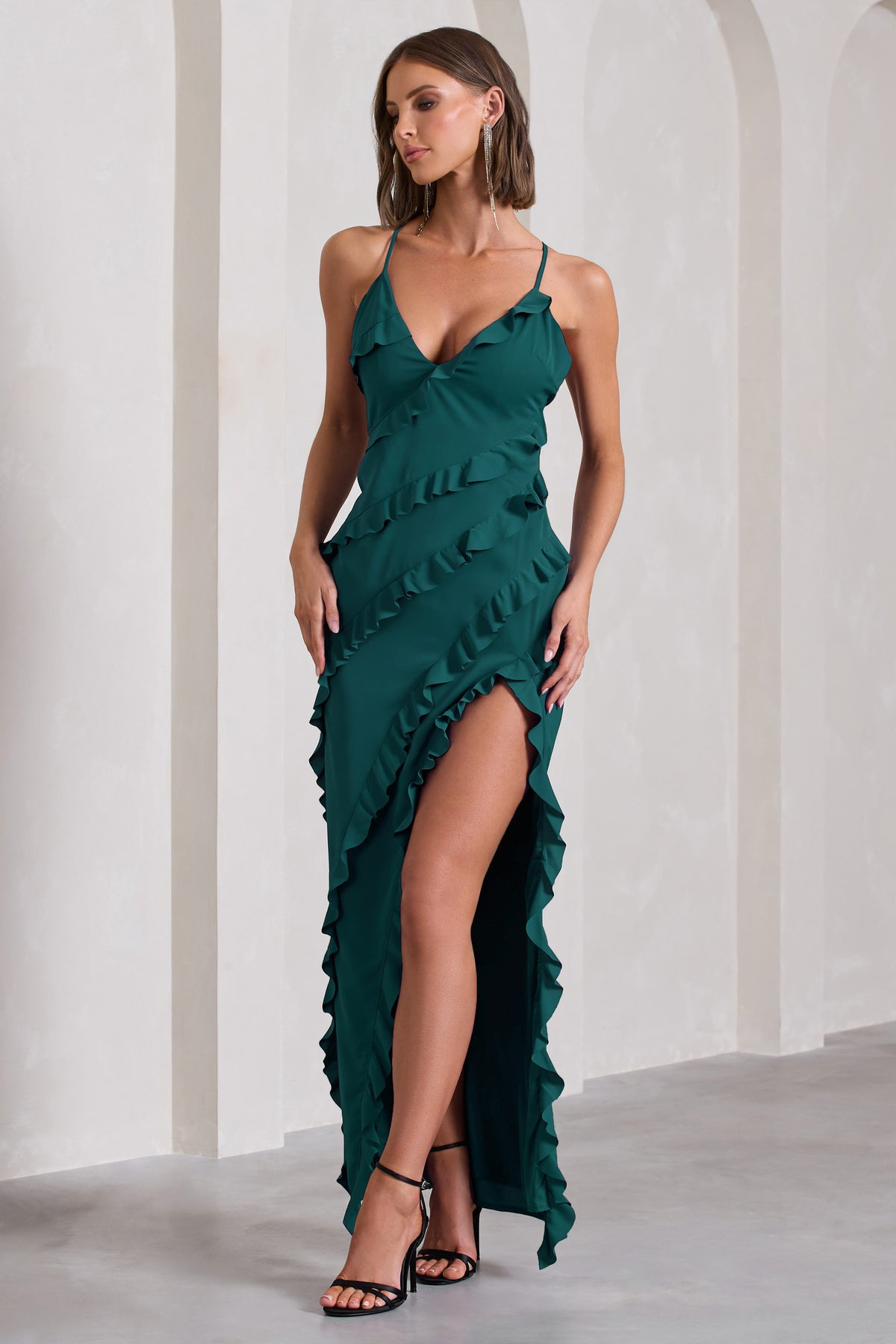 2025년 여성 섹시 브이넥 러플 사이드 슬릿 백리스 슬립 드레스 도매, 핫걸 유럽풍스토어 가기