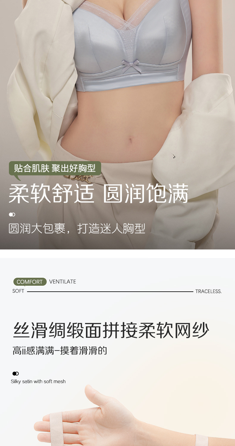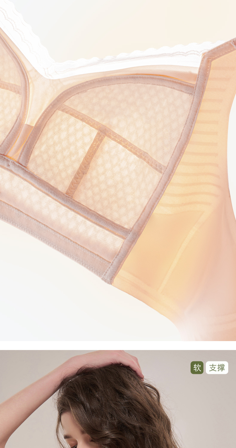 여름 얇은 원활한 속옷 여성의 큰 가슴 작은 아름다움 뒤로 처짐 방지 패러 메리 통기성 플러스 사이즈 브래지어 국경스토어 가기