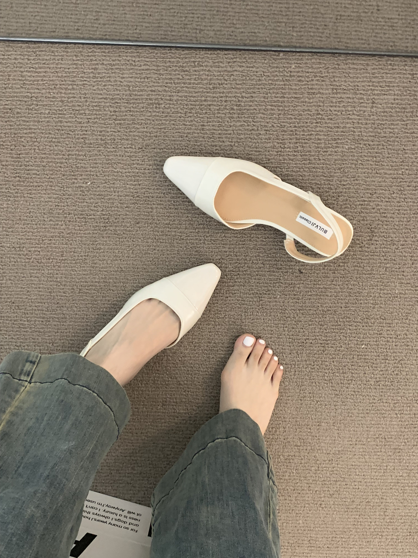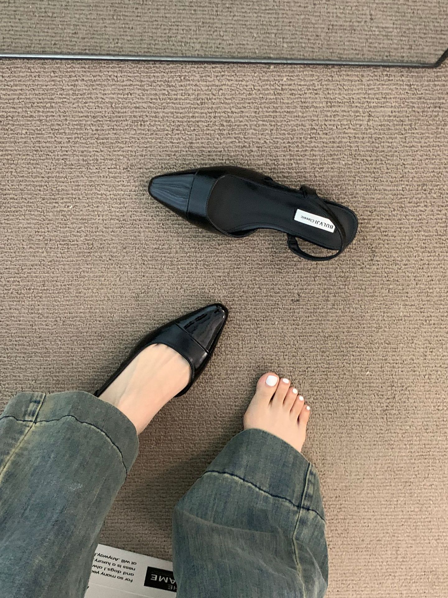 여성용 로우 힐 토드 샌들 프랑스 스타일 부드러운 저녁 누드 포인팅 작은 샤넬 스타일 레이디의 두꺼운 힐 공기질 신발스토어 가기