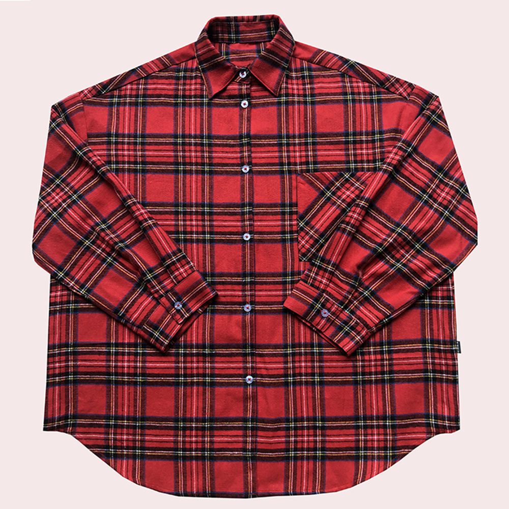스크러스트 레드 플레이드 캐주얼 올 매치 루즈 체크 셔츠 레드 셔츠 라이트 럭셔리 홍콩 스타일 빈티지스토어 가기