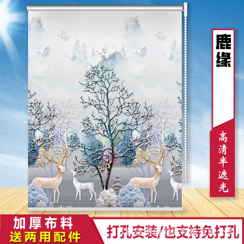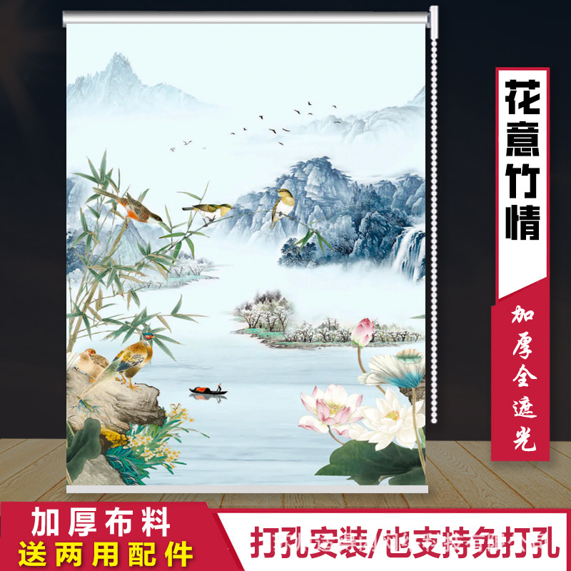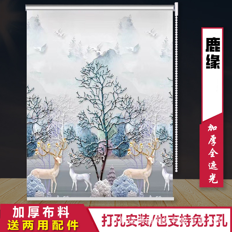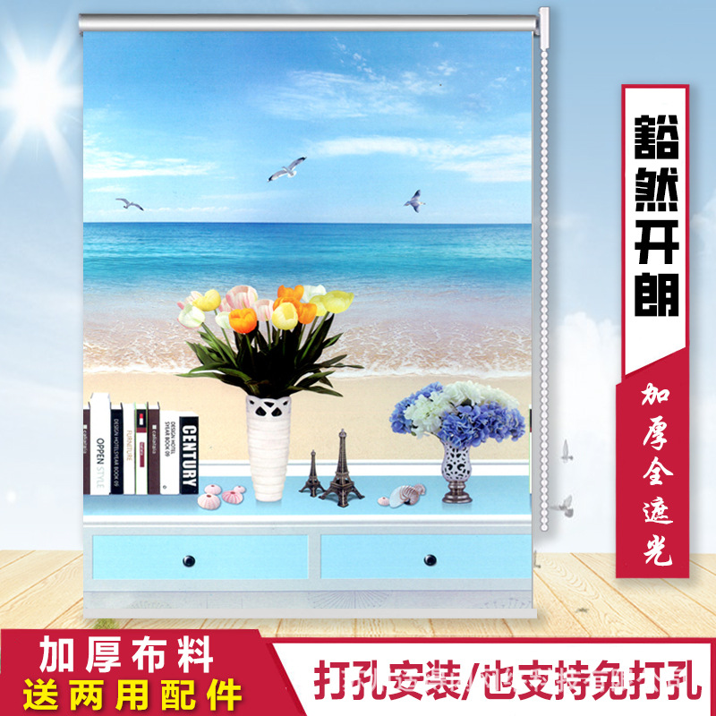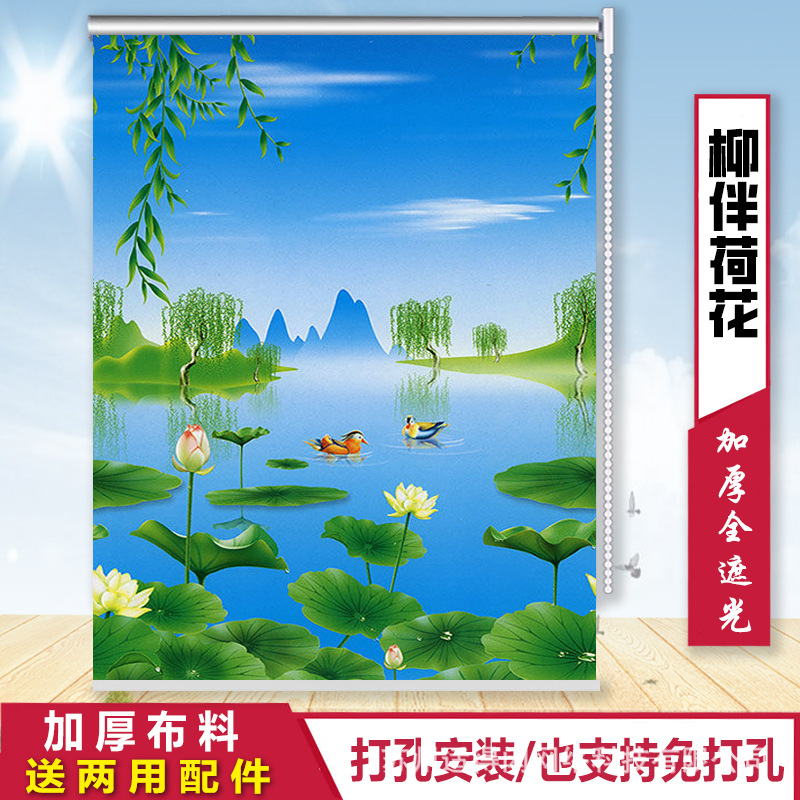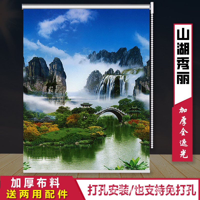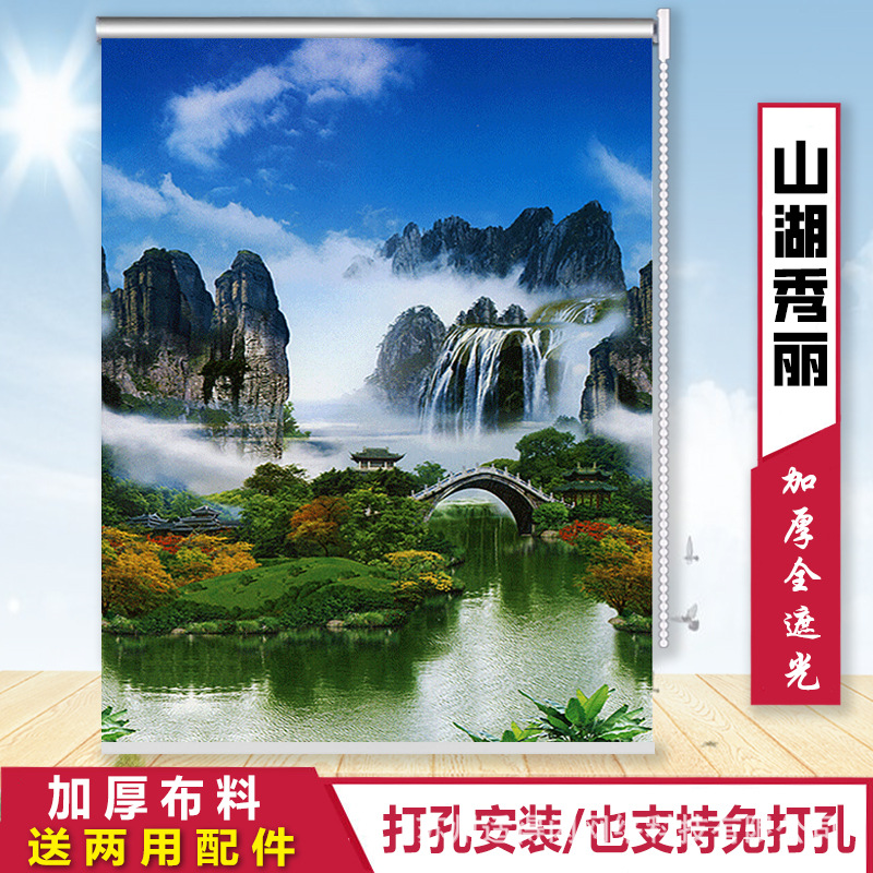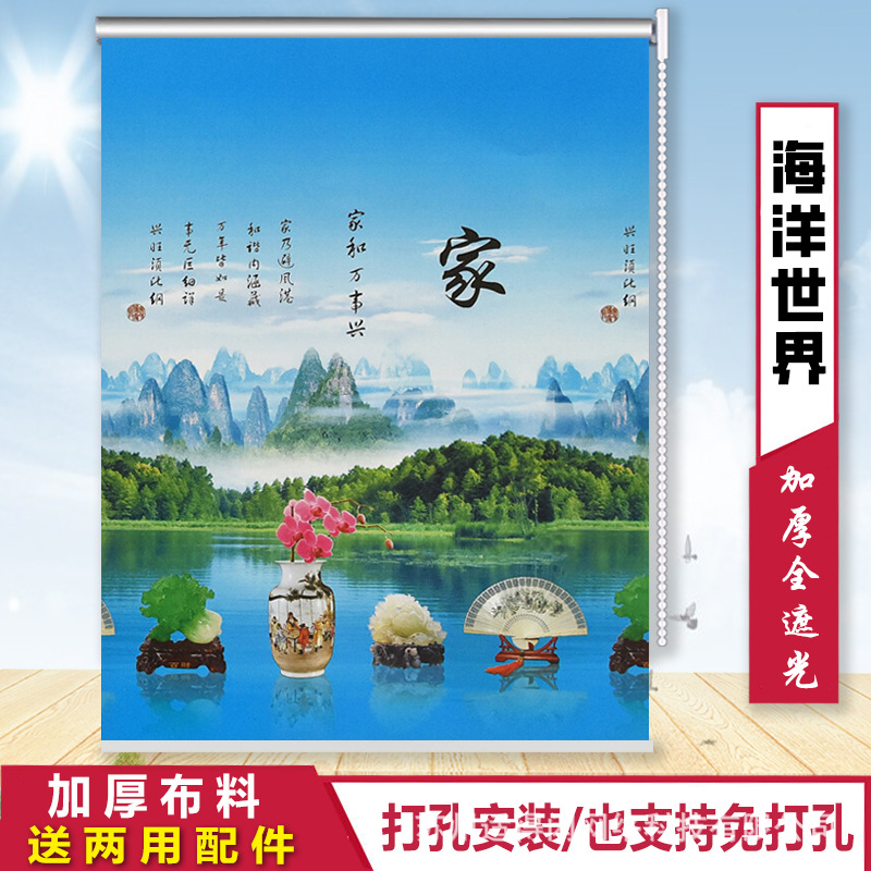 리프트 커튼 침실 차광 롤 풀형 펀치 프리 라이트 럭셔리 거실 풍경화 사무실 욕실 방수스토어 가기