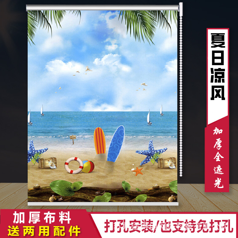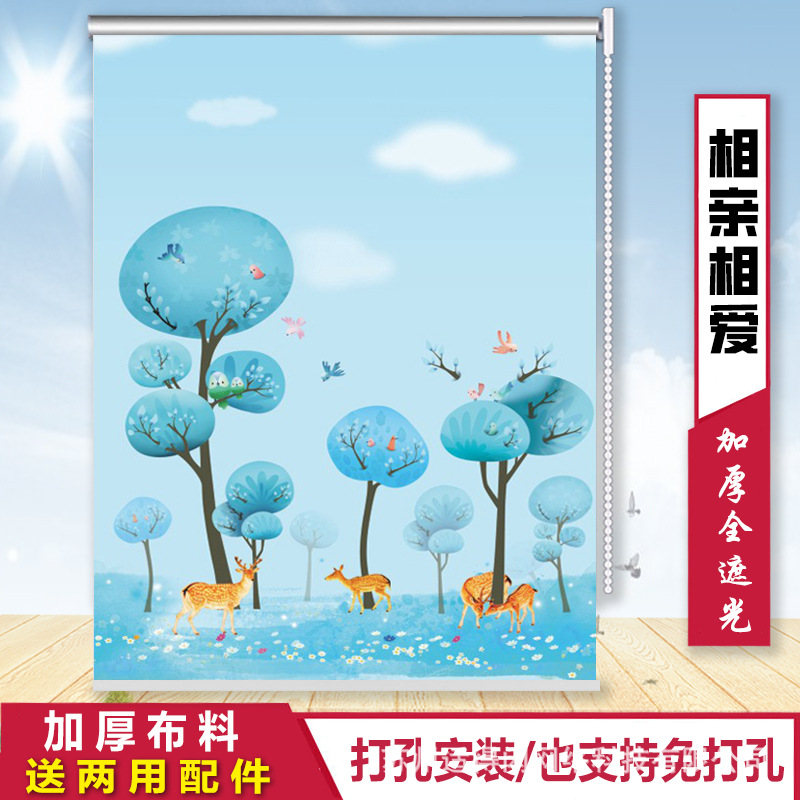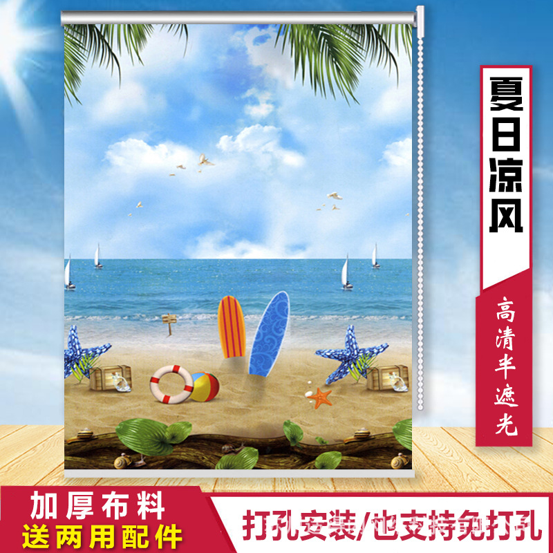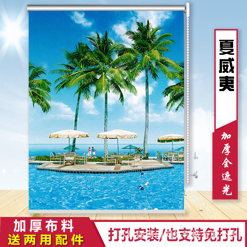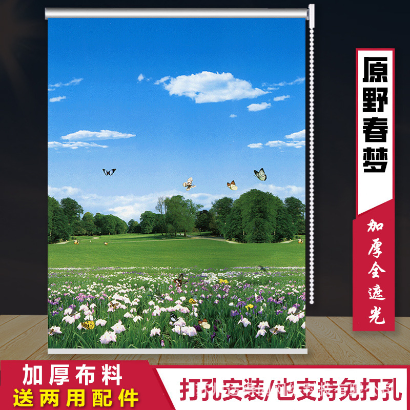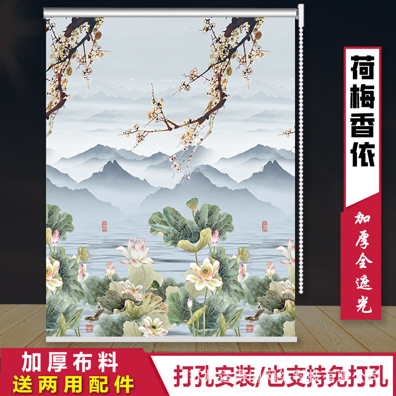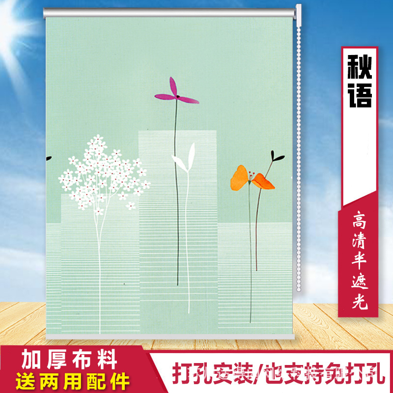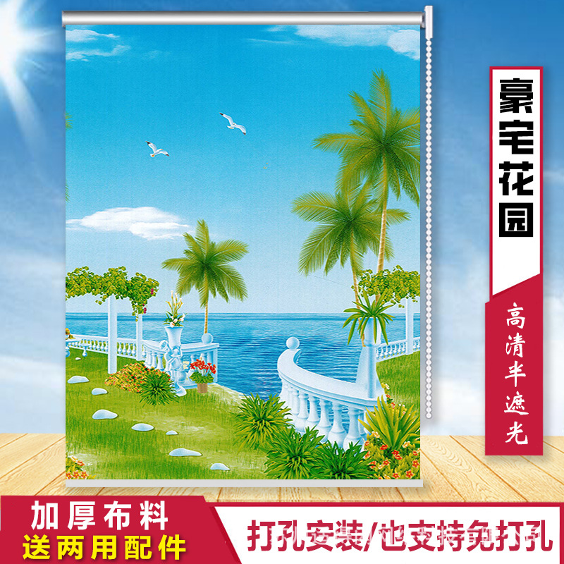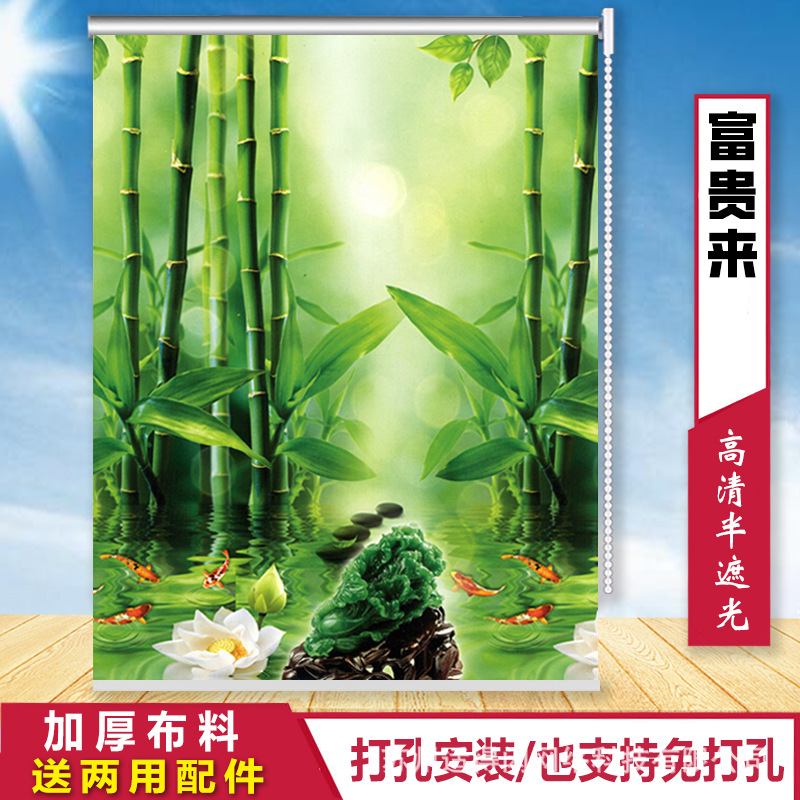 리프트 커튼 침실 차광 롤 풀형 펀치 프리 라이트 럭셔리 거실 풍경화 사무실 욕실 방수스토어 가기