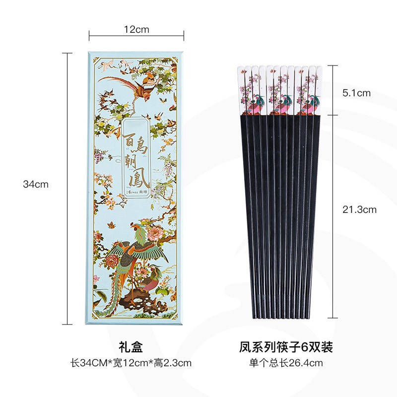 • A190-1A 백 새와 피닉스 젓가락 6 쌍 피닉스 시리즈 (선물 상자 포함)