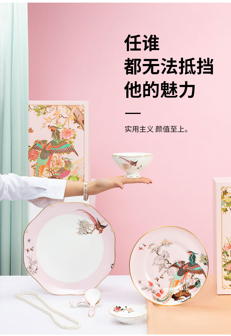Jingdezhen Bai Niao Chaofeng 하이 엔드 뼈 중국 프놈펜 접시 접시 접시 홈 세라믹 접시 크리 에이 티브 스테이크 접시 디저트 접시스토어 가기