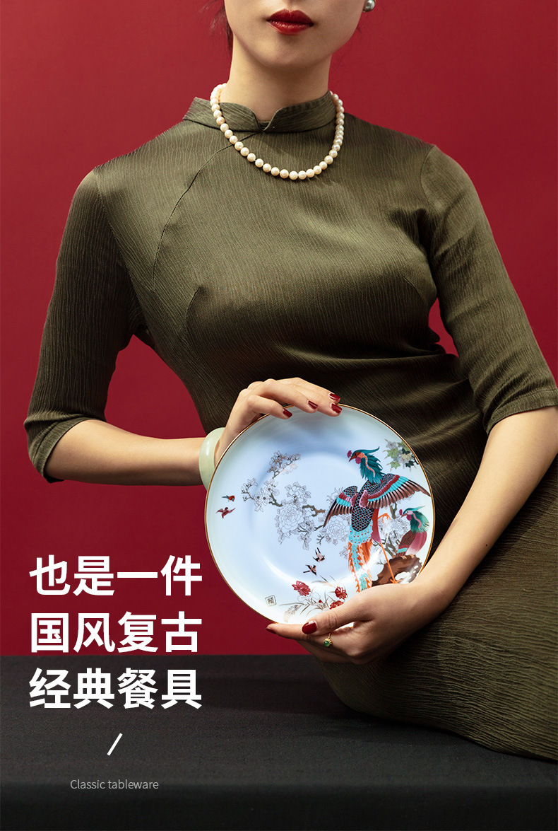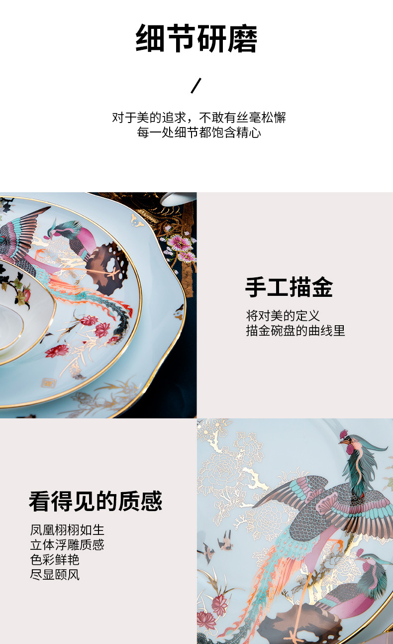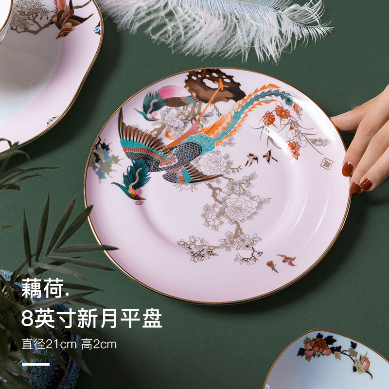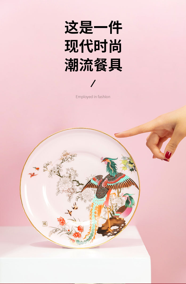 Jingdezhen Bai Niao Chaofeng 하이 엔드 뼈 중국 프놈펜 접시 접시 접시 홈 세라믹 접시 크리 에이 티브 스테이크 접시 디저트 접시