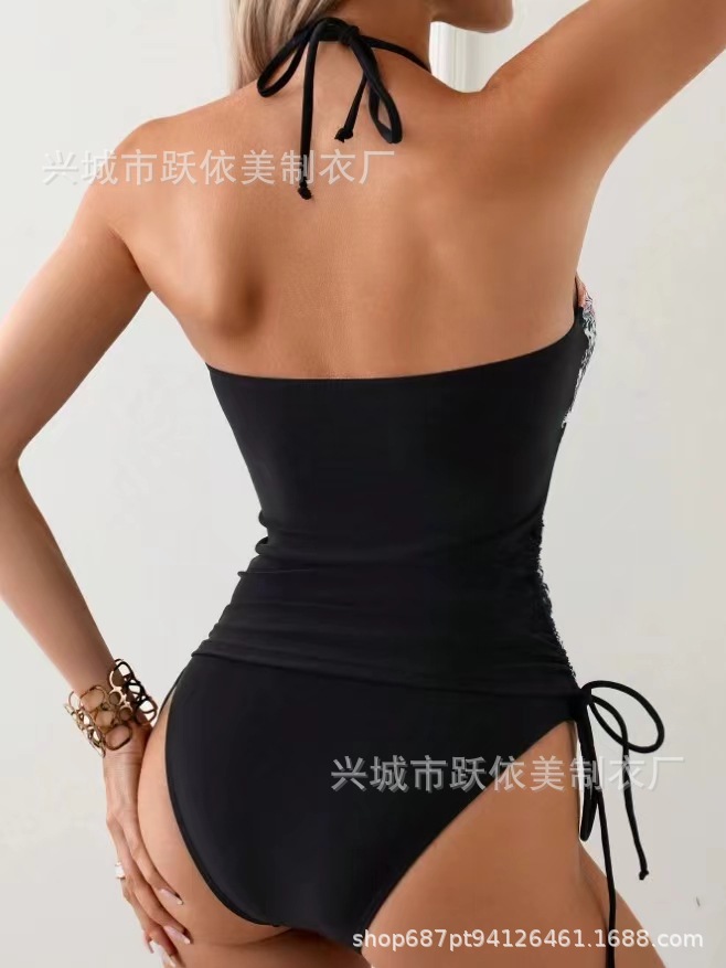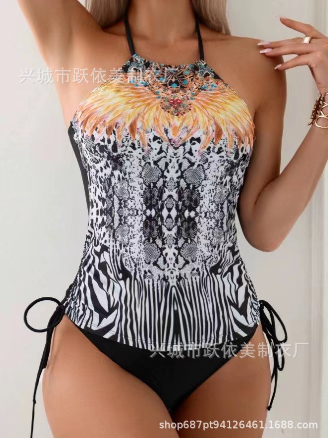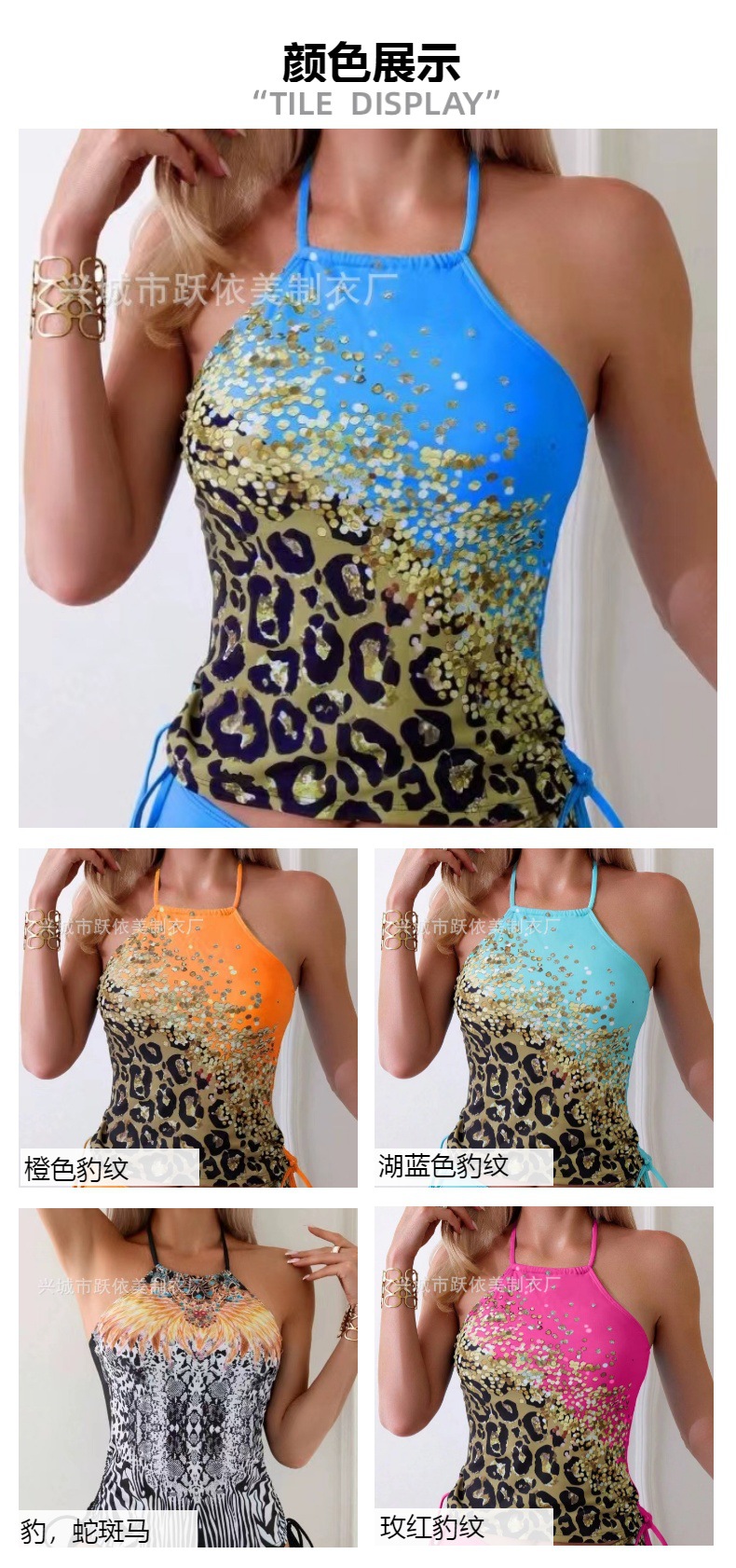 2024 새로운 유럽과 미국의 분할 비키니 그라데이션 표범 섹시한 슬림 하이 허리 아마존 국경 무역 휴가스토어 가기