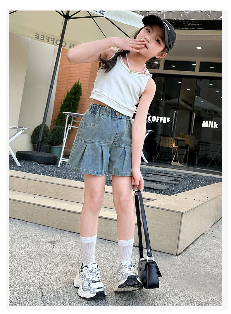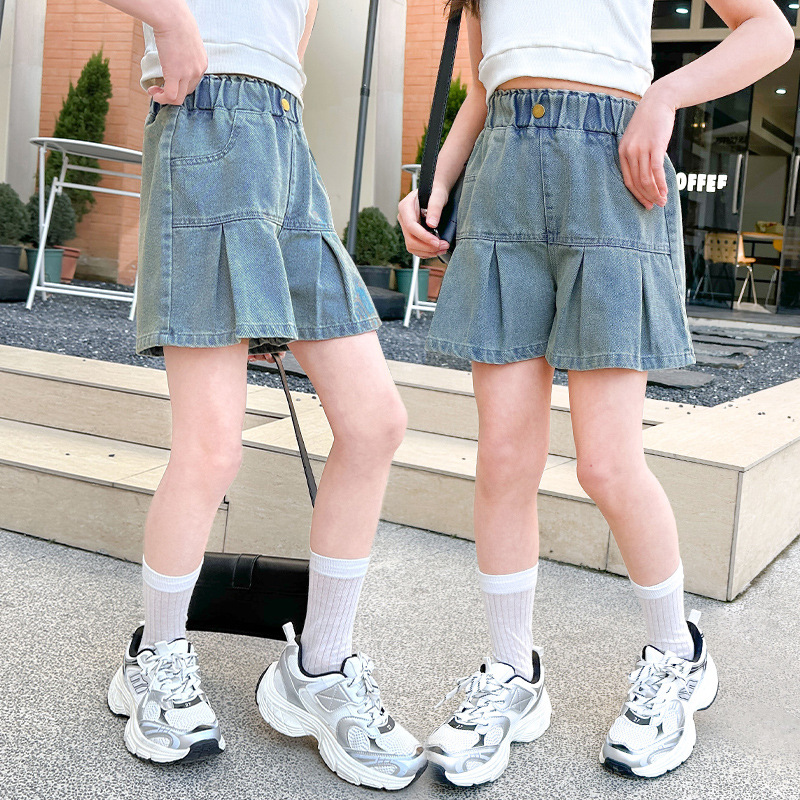 여자 데님 스커트 바지 여름 소녀 유럽 버전 패션 핫 팬츠 해외 무역 여름 바지 도매 cuhk 어린이 데님 반바지
