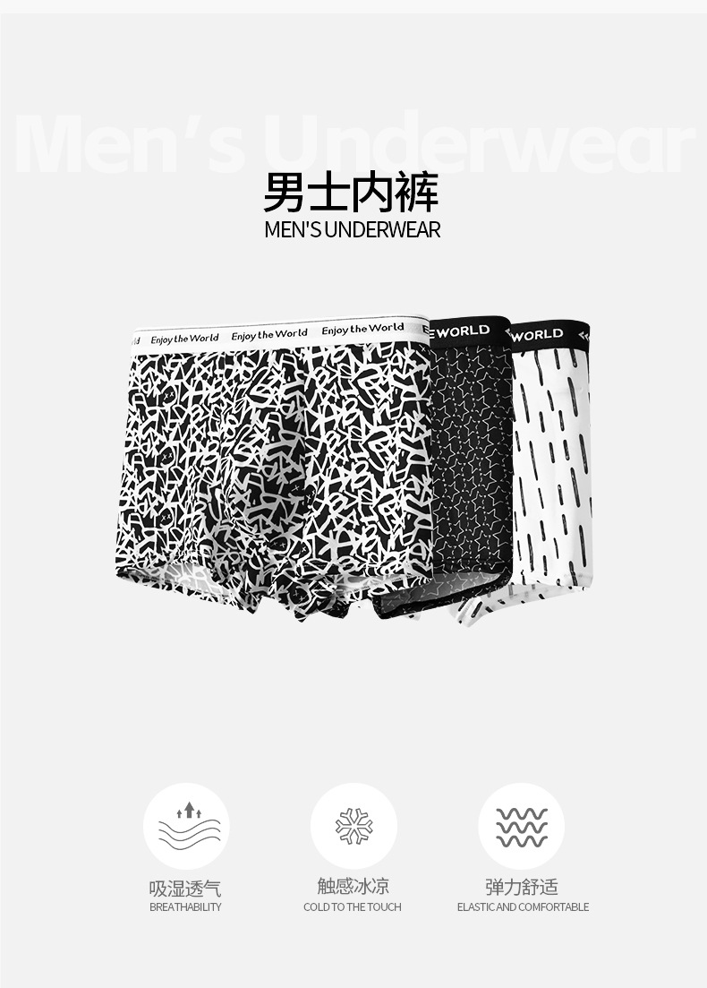 남성용 아이스 실크 통기성 중간 허리 빅사이즈 얇은 프린트 사각팬티 도매 유럽 및 미국 트렌드스토어 가기