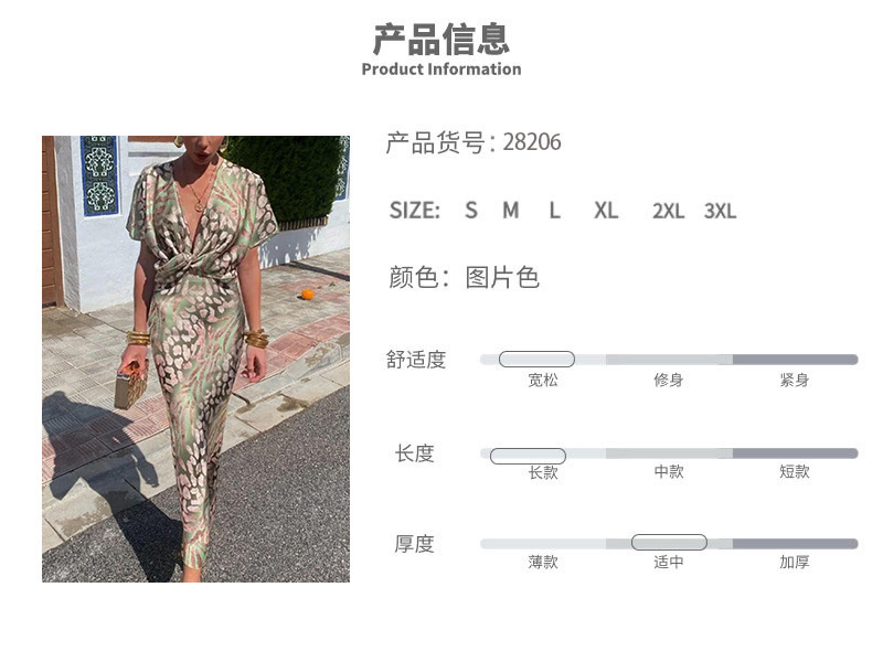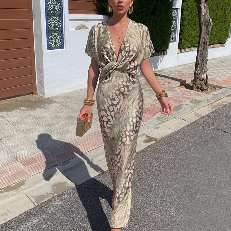 2024 여름 독립 역 여성 패션 타이트 프린트 트위스트 높은 허리 미니 원피스 섹시한 V-Neck 원피스스토어 가기