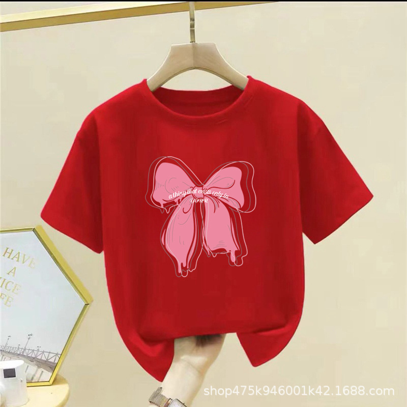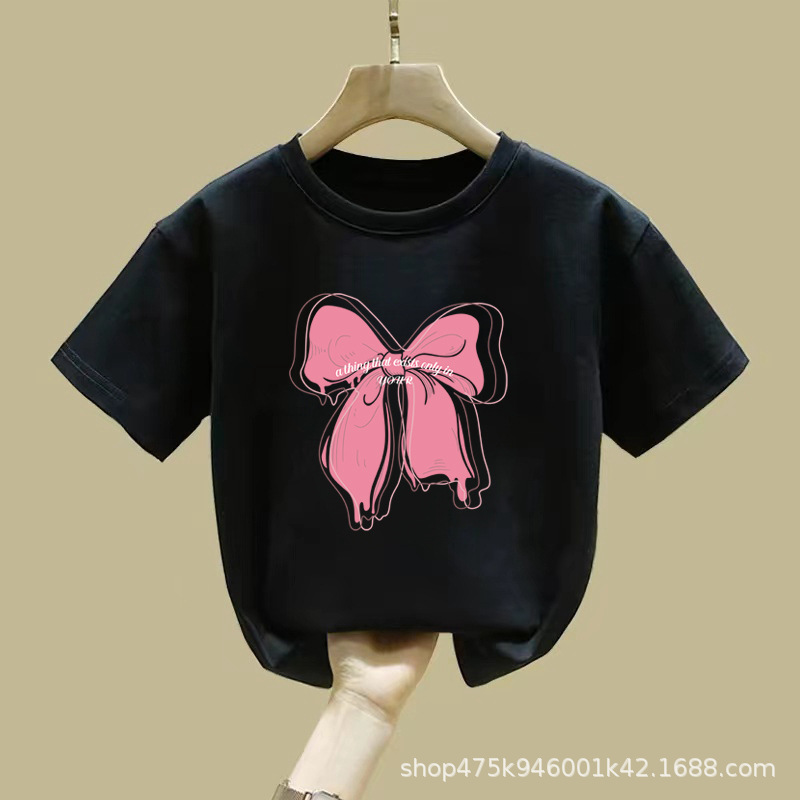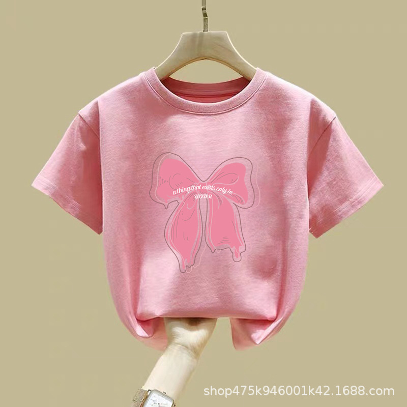 여아 여름 순면 반팔 티셔츠 2025 신상 한국 스타일 반팔 티셔츠 리본 아동복스토어 가기