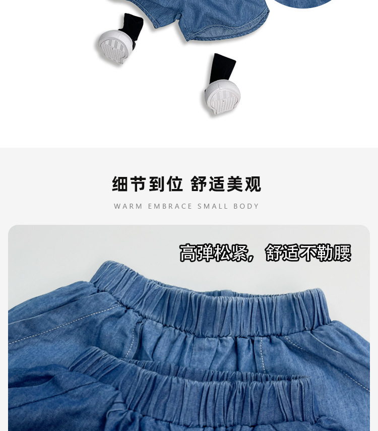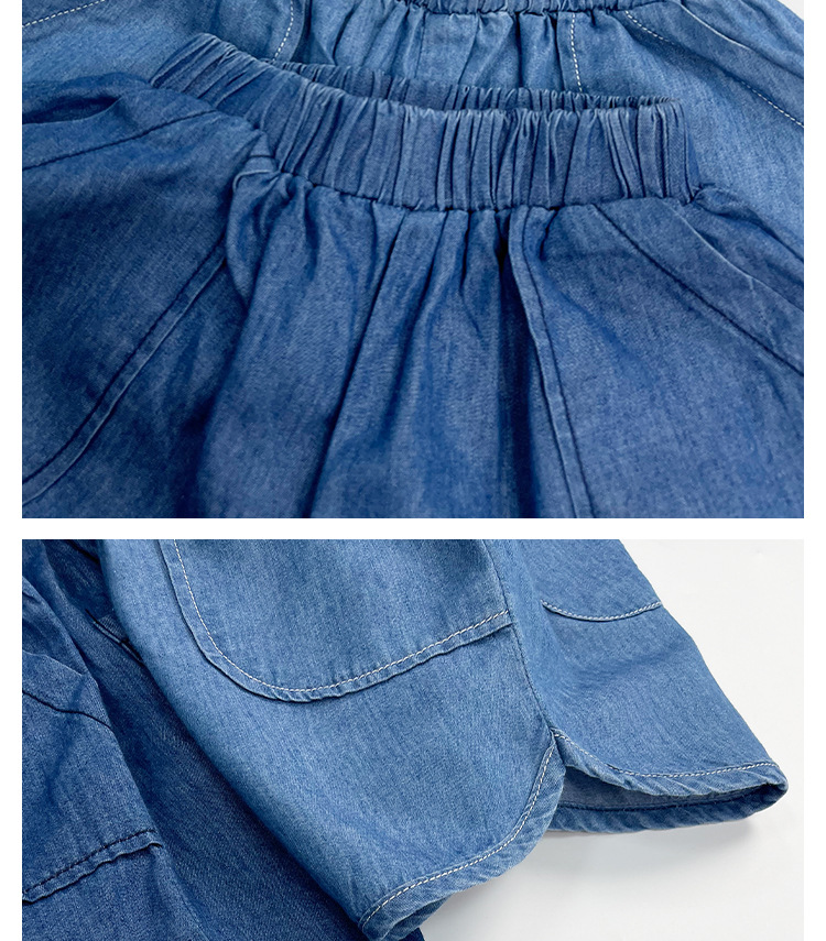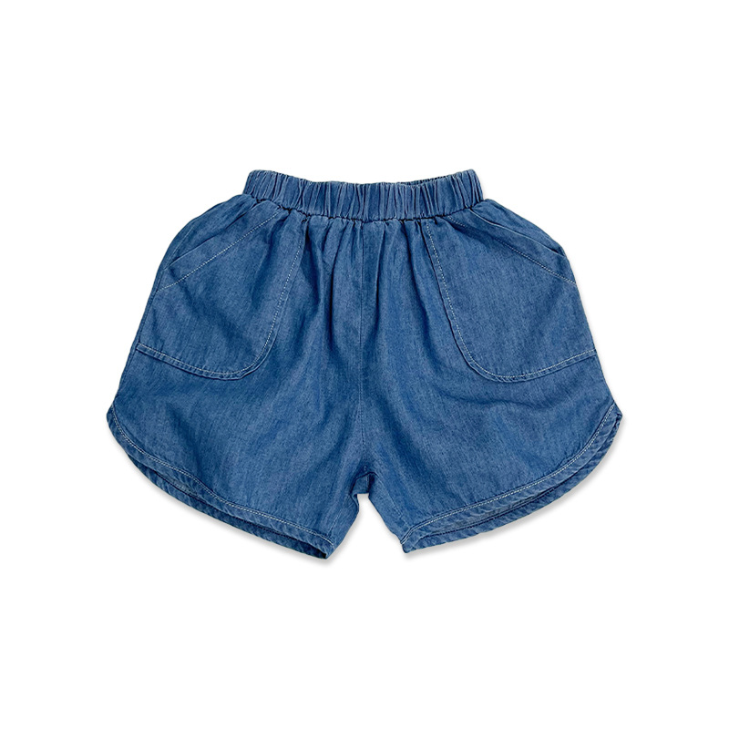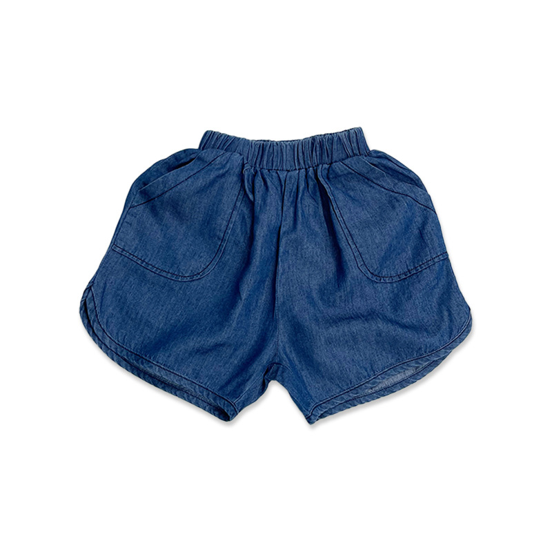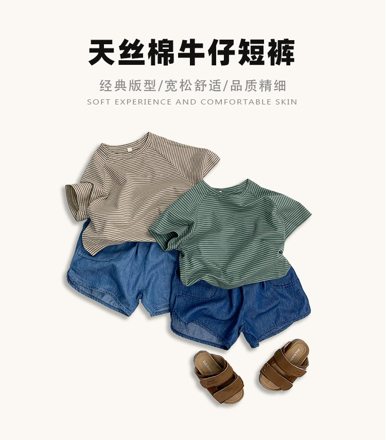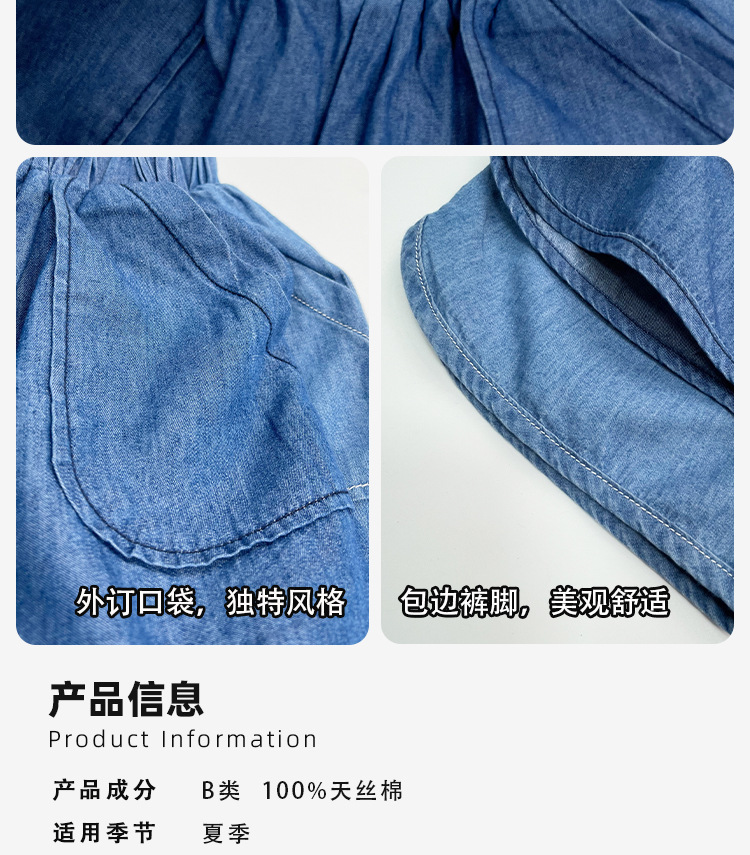 텐셀 코튼 데님 반바지 여름용 남녀공용 아동용 5부 바지 유아 및 어린이용 순면 트렌디 하이웨이스트