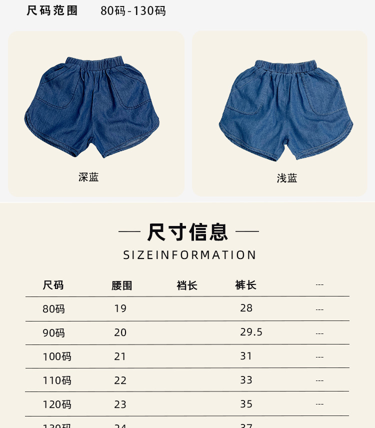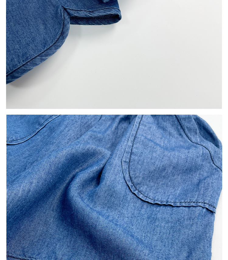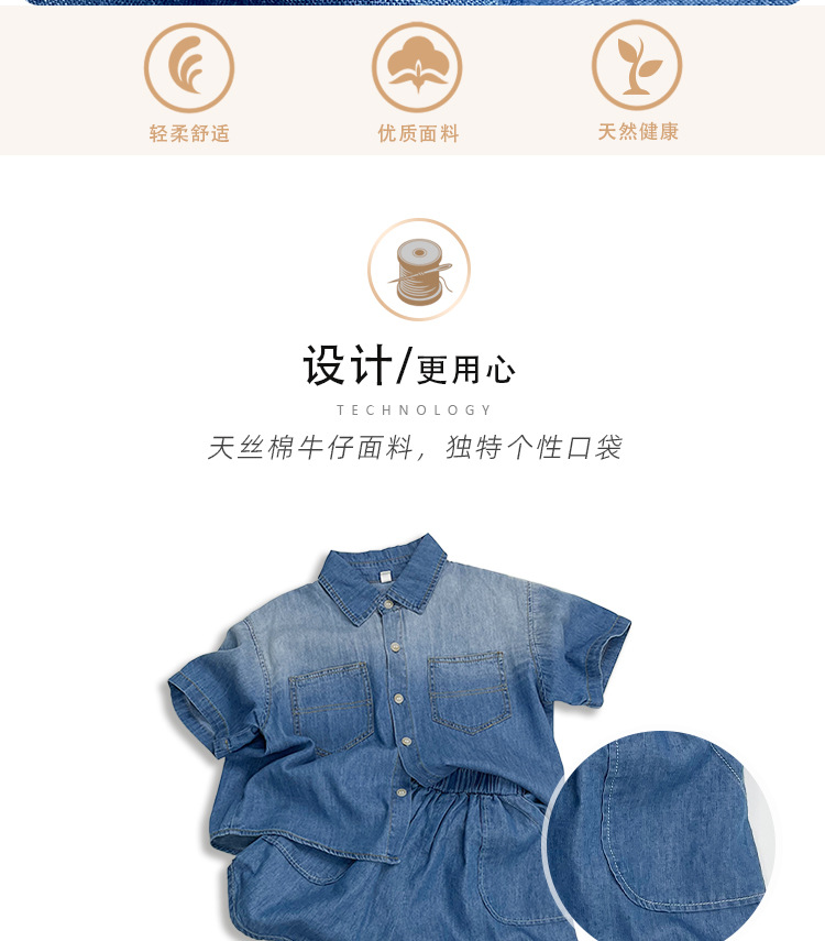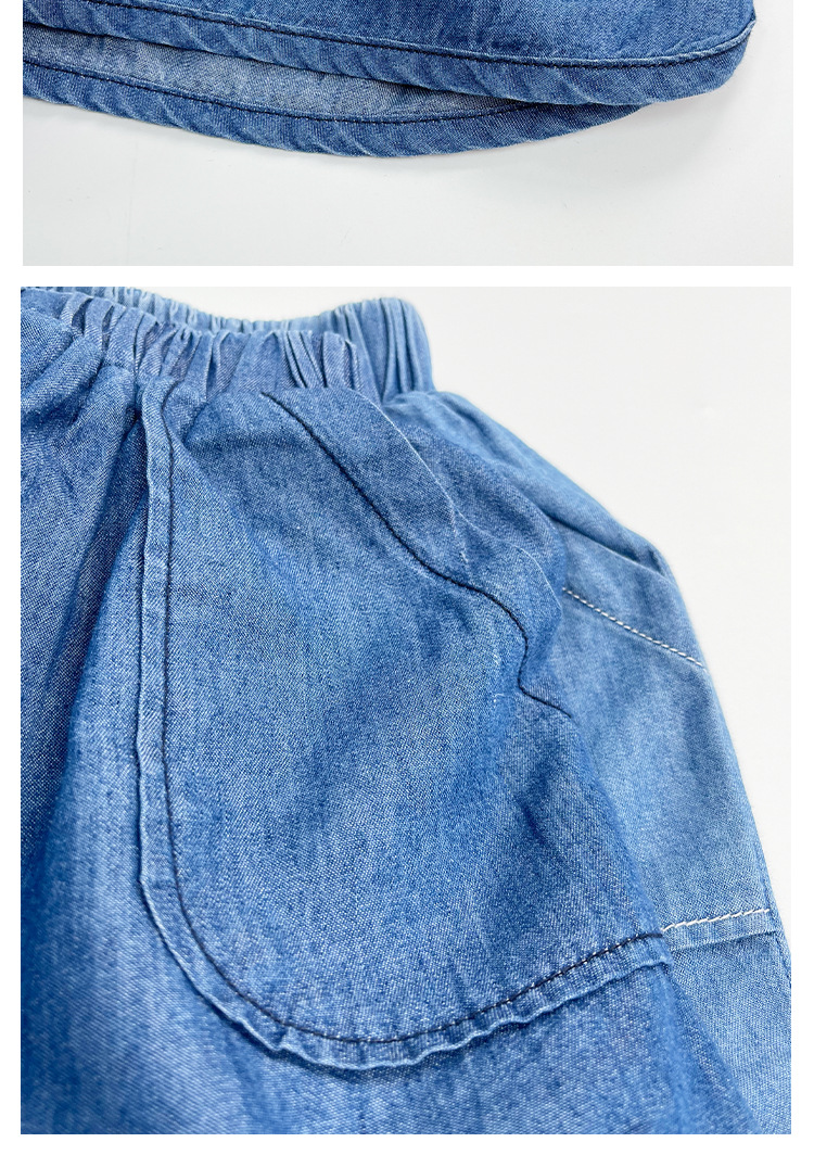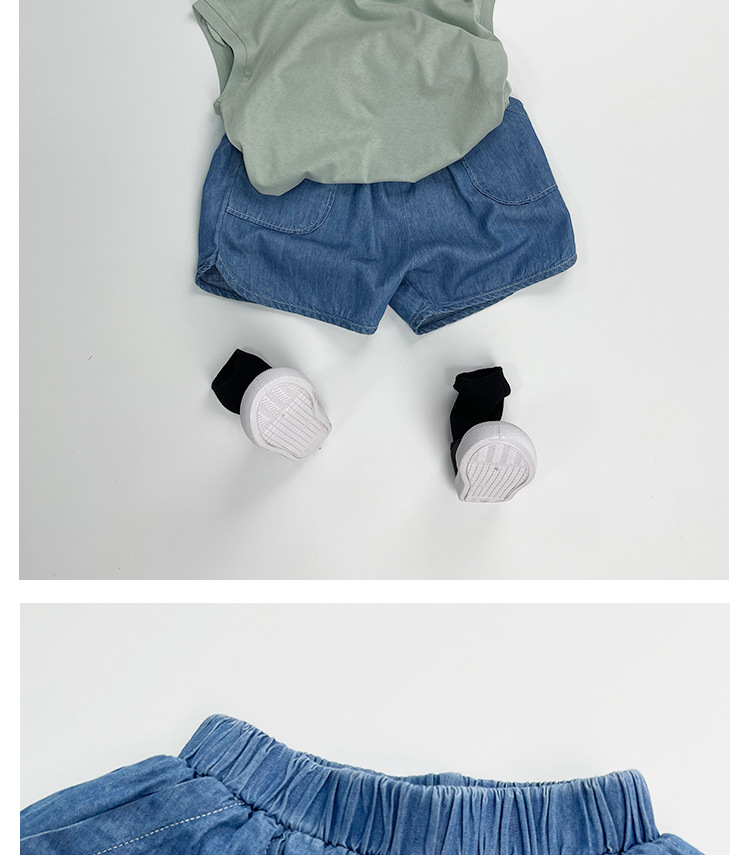 텐셀 코튼 데님 반바지 여름용 남녀공용 아동용 5부 바지 유아 및 어린이용 순면 트렌디 하이웨이스트