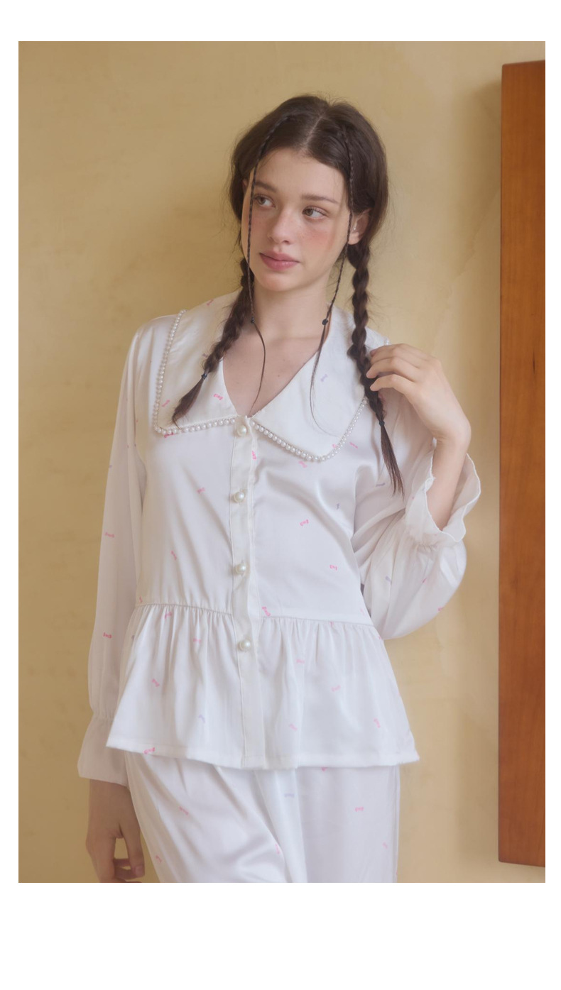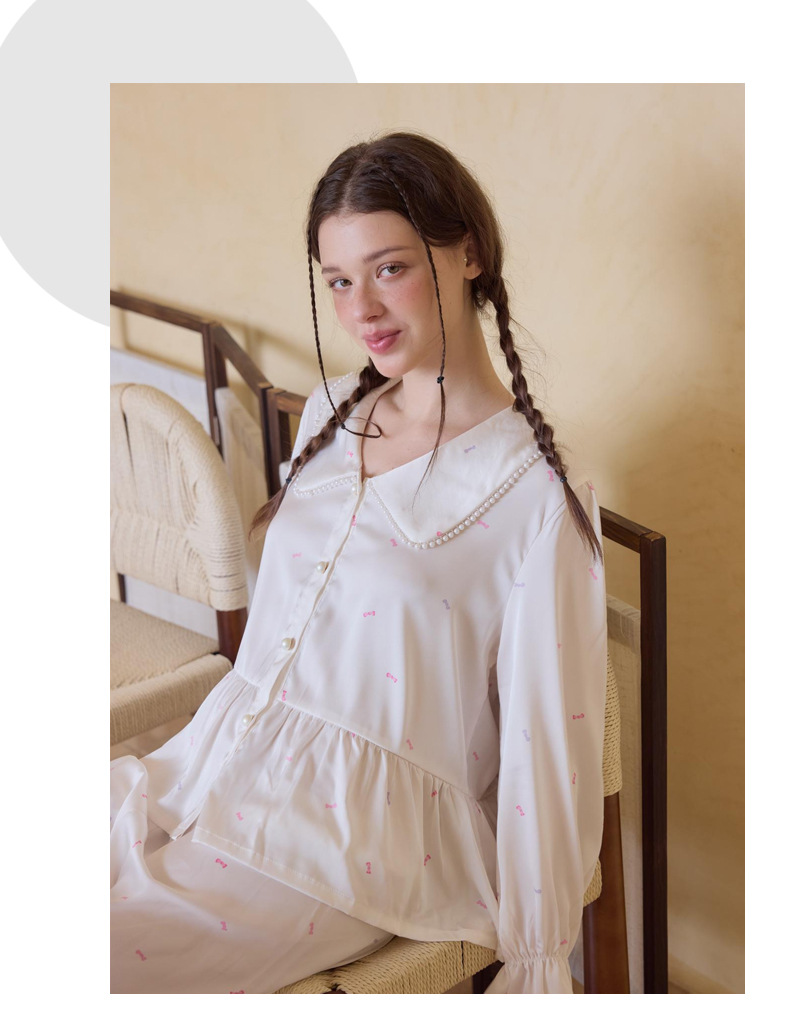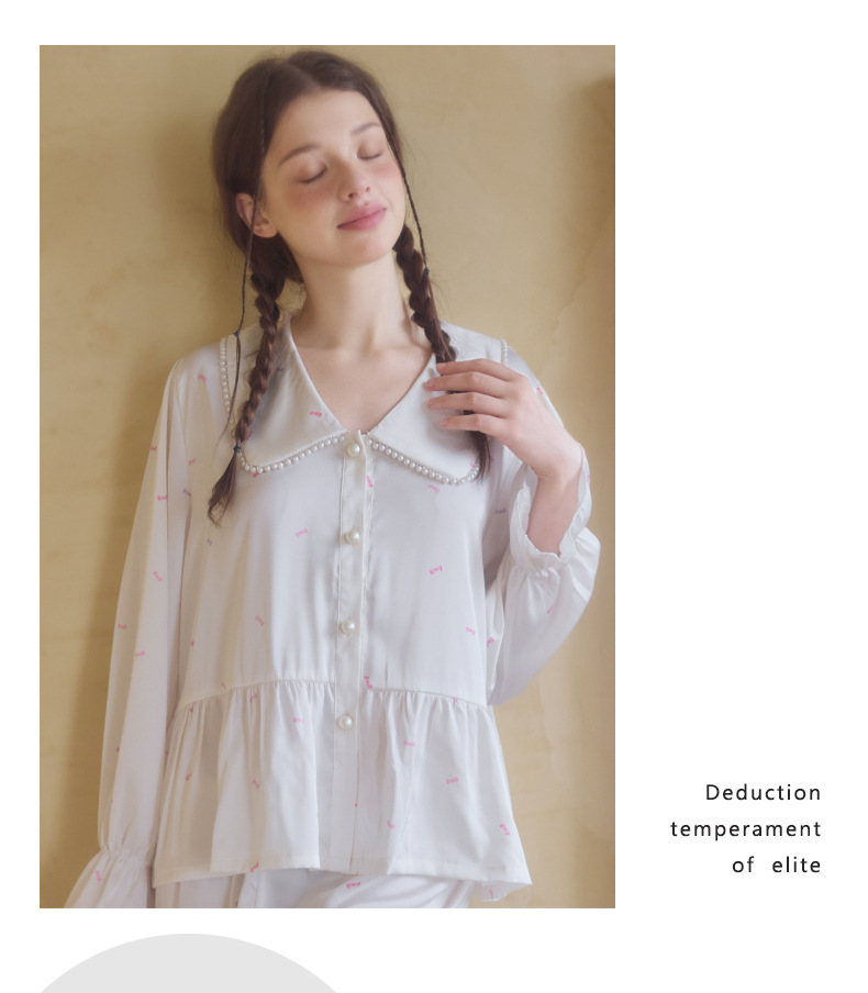 프렌치 스타일 진주 칼라 러플 아이스 실크 여성 홈웨어 고급 잠옷 세트 실크 느낌스토어 가기