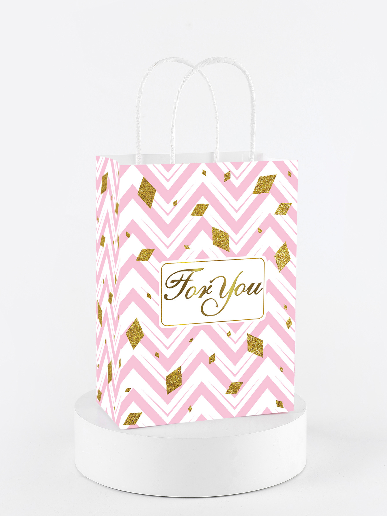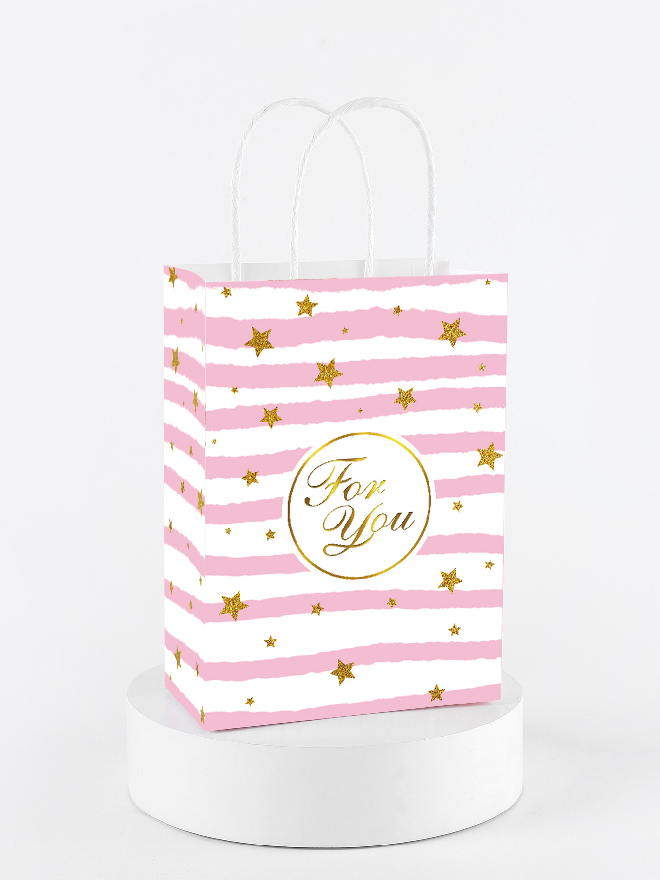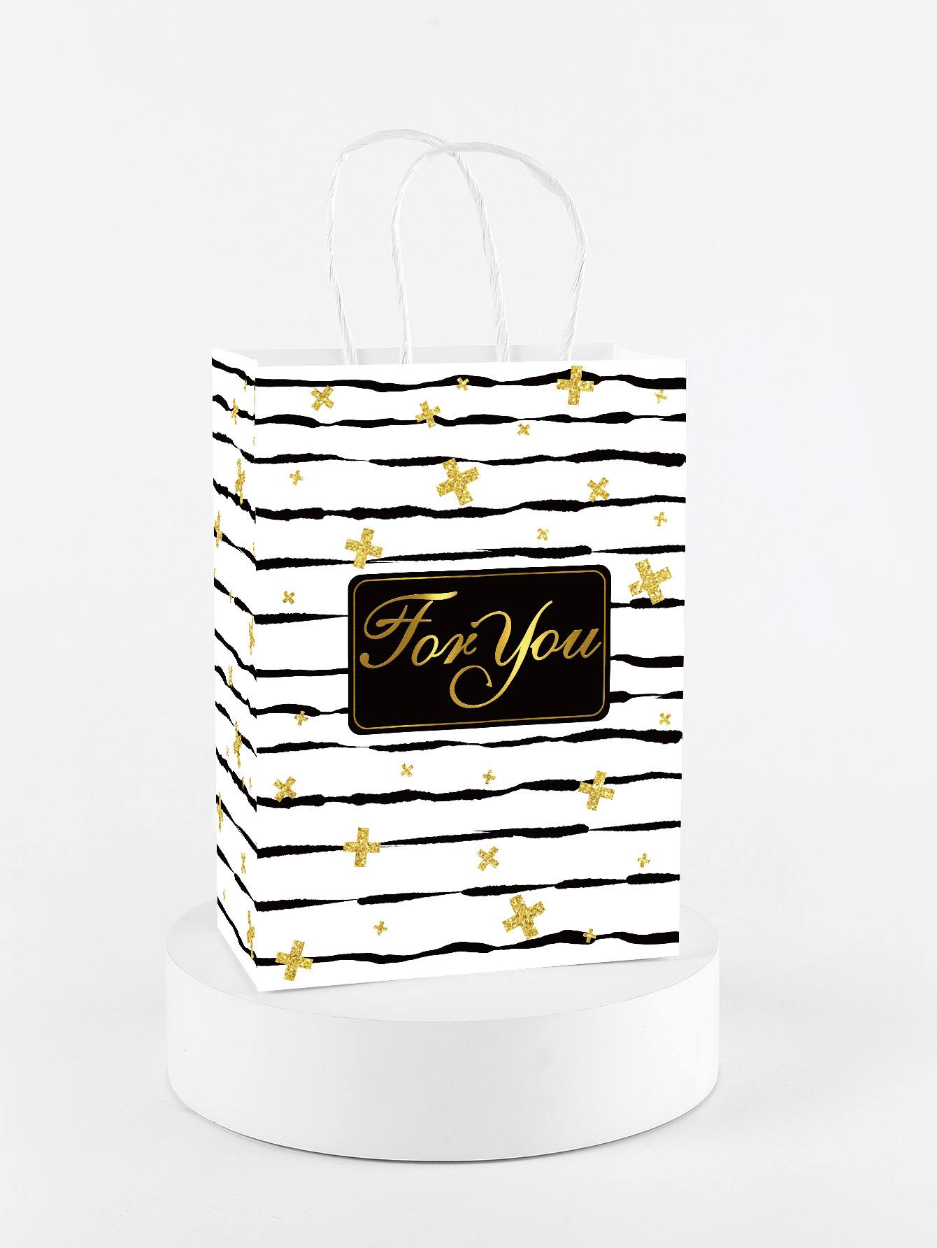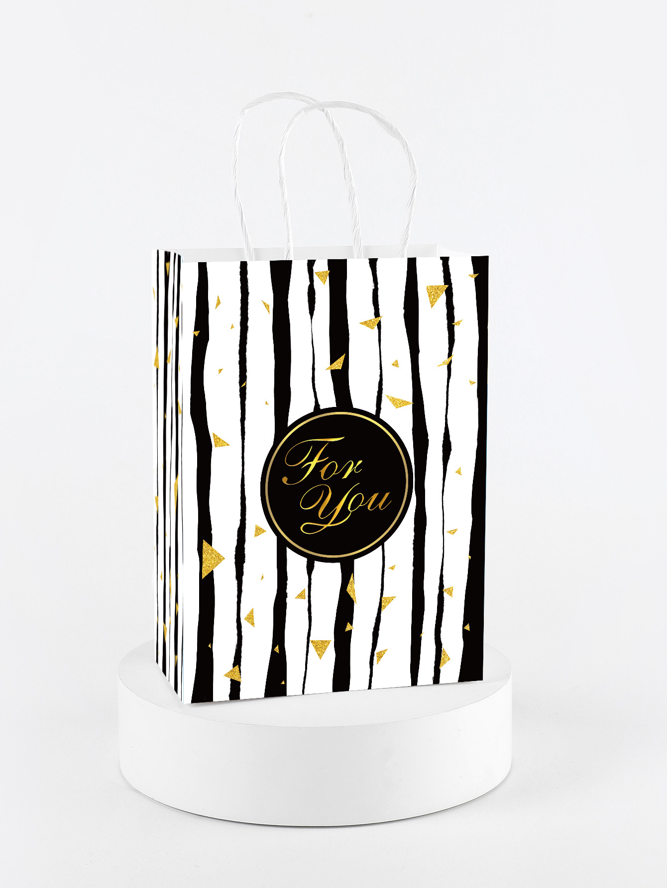 공장 재고 국경 Foryou 줄무늬 웨이브 휴대용 종이 가방 흰색 크래프트 종이 가방 인쇄 종이 로프 선물 가방