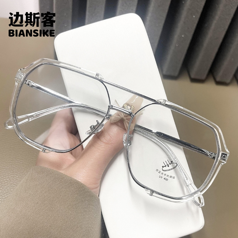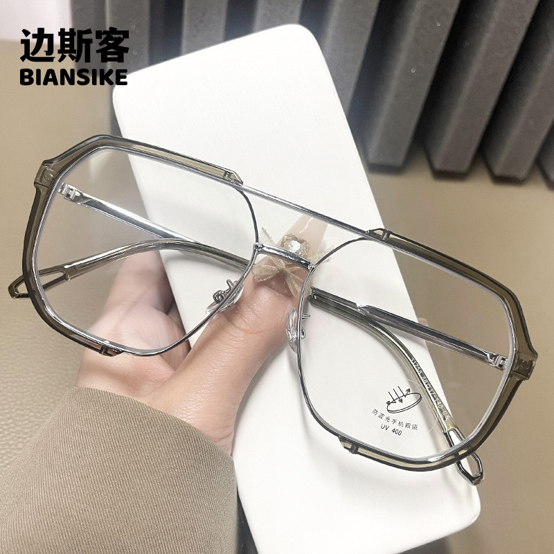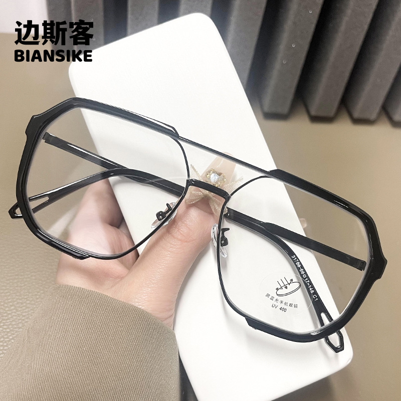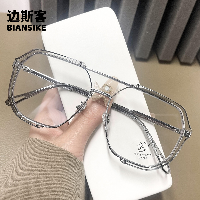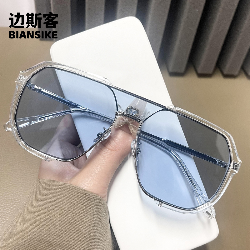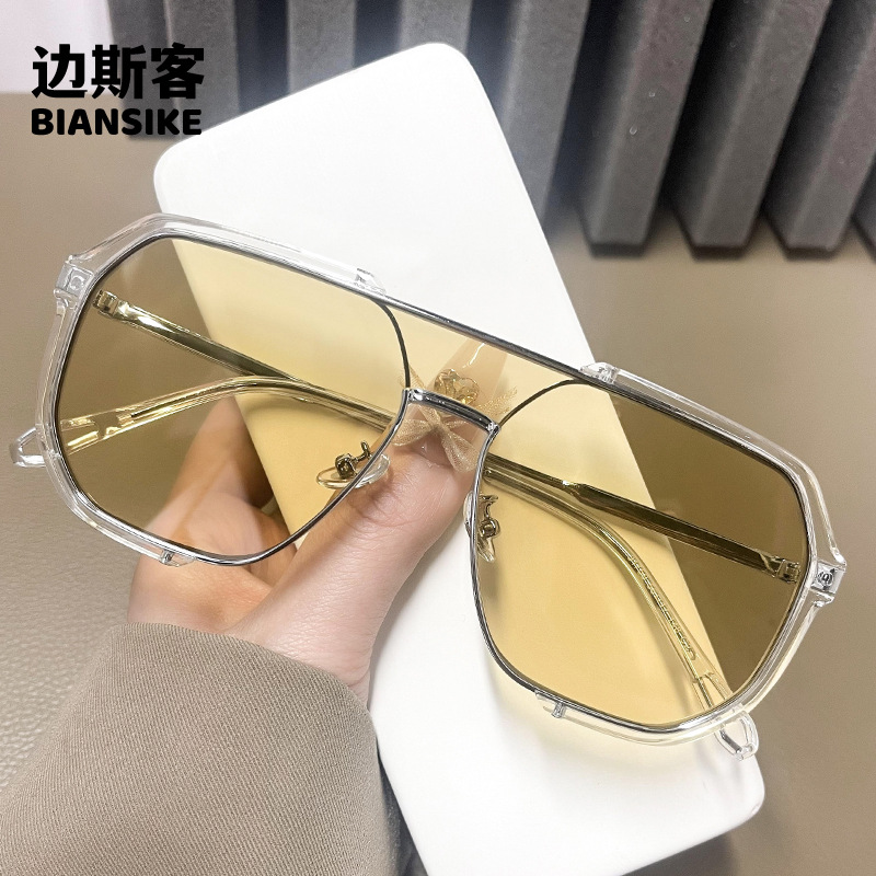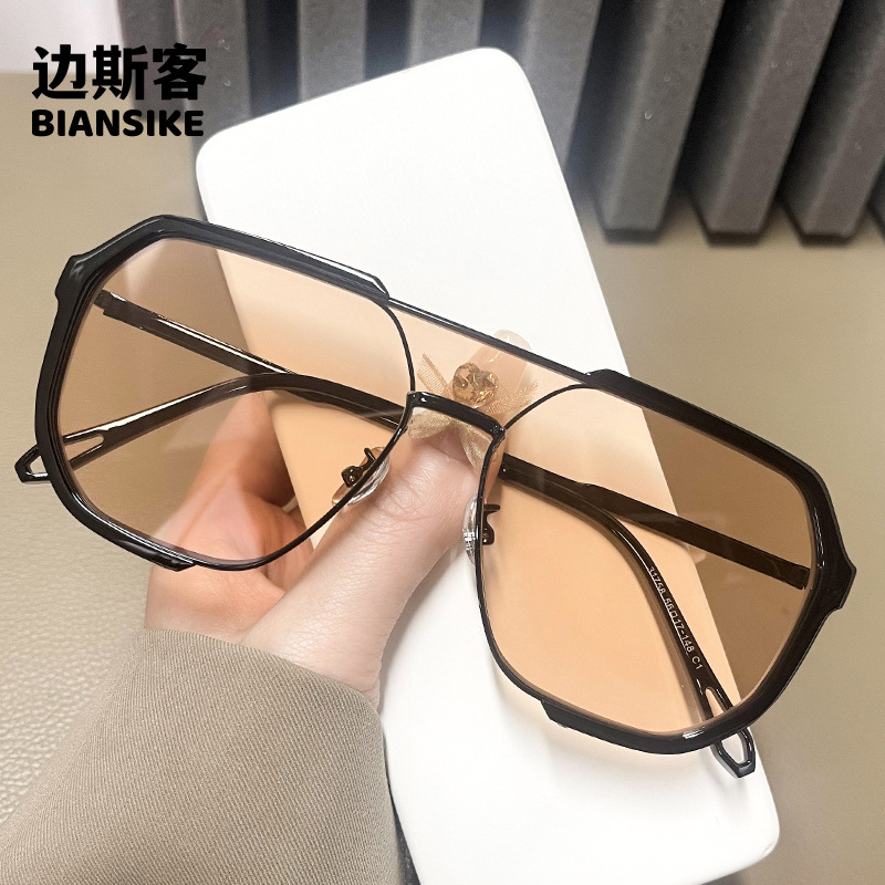 선글라스 31758 유럽 및 미국 패션 대형 프레임 선글라스 인기 있는 더블 빔 다각형 트렌디 패션 평면 안경테스토어 가기