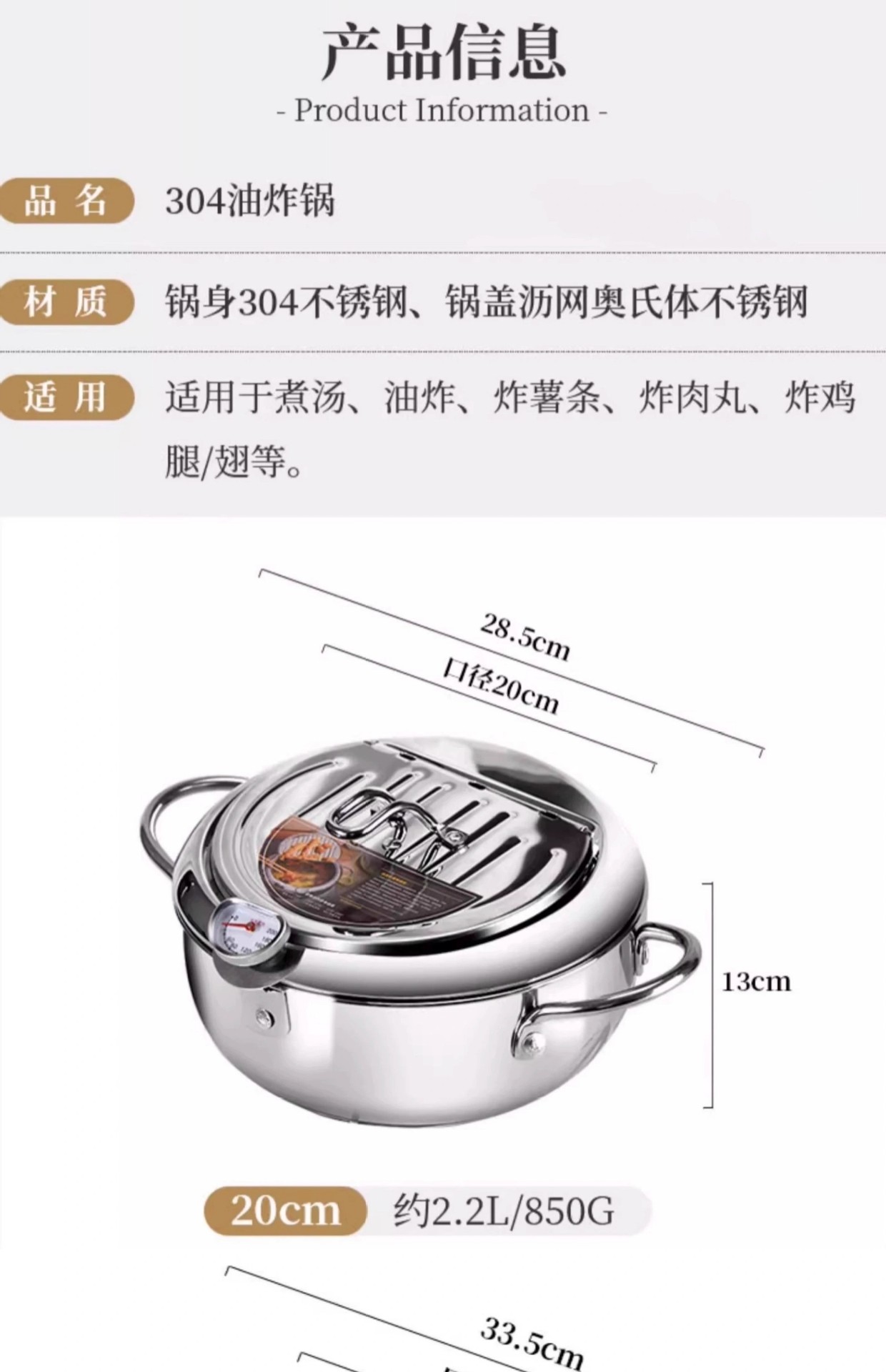 • 온도계를 가진 20cm 스몰 사이즈 프라이어