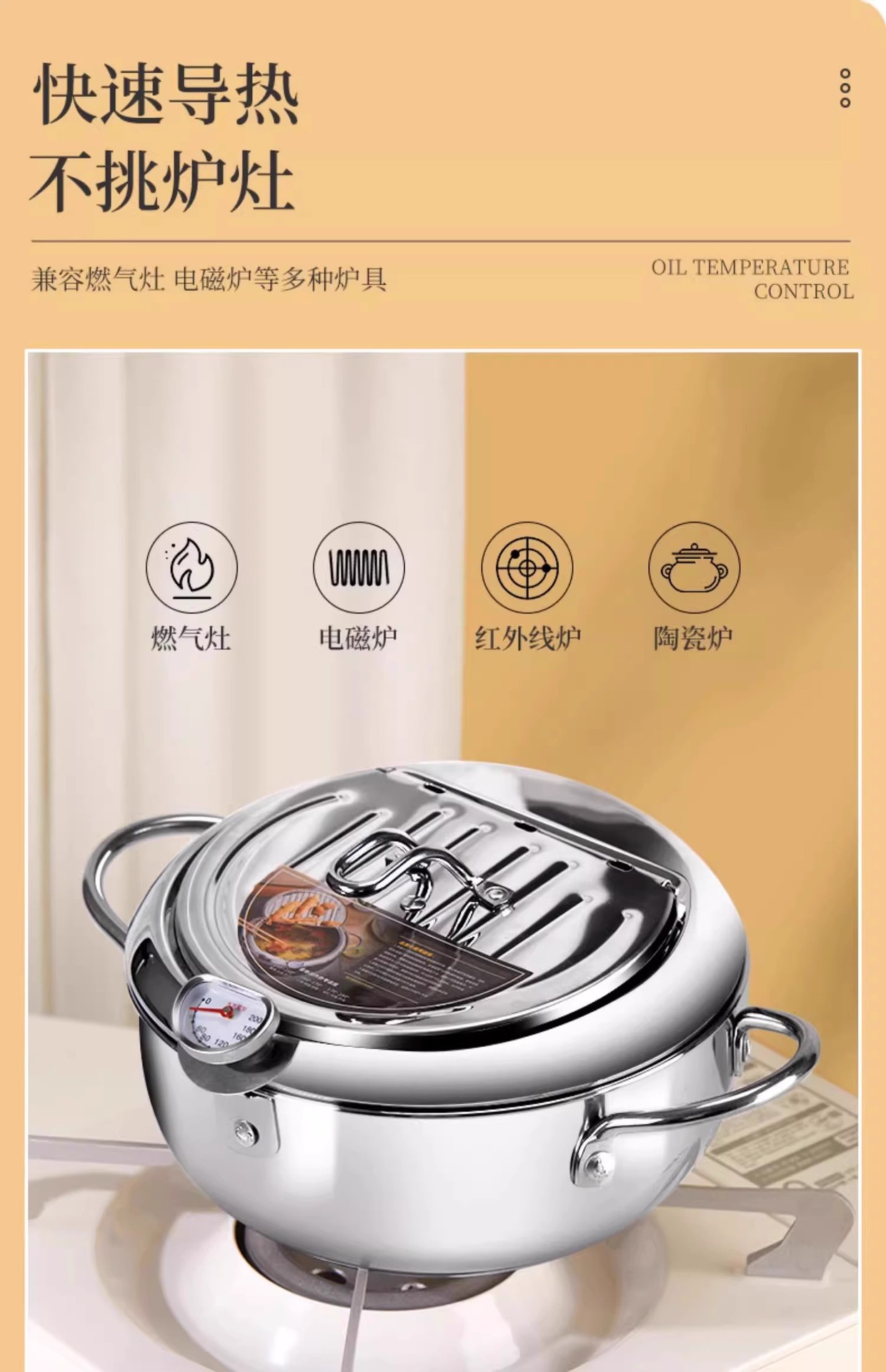 일본 튀김 프라이어 가정용 소형 미니 깊은 온도 제어 가스 연료 절약 일본 소형 프라이어스토어 가기
