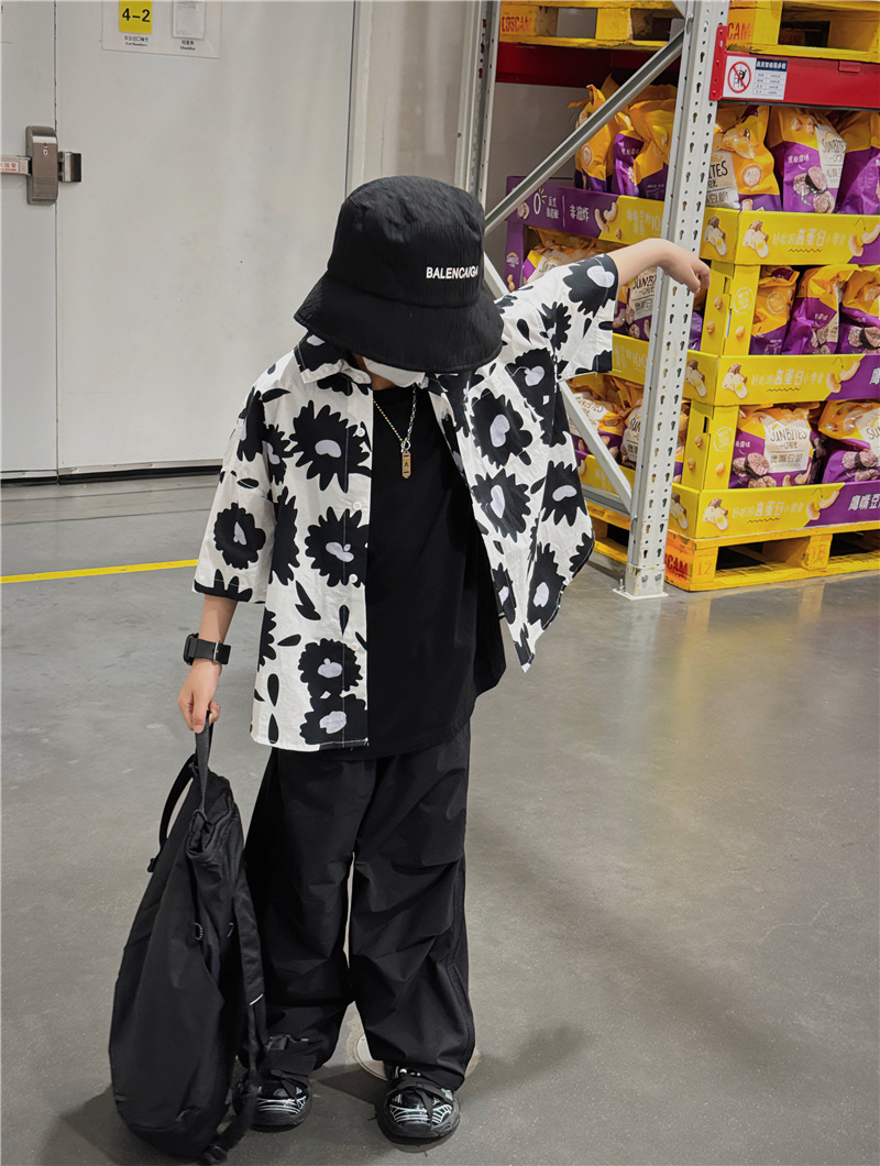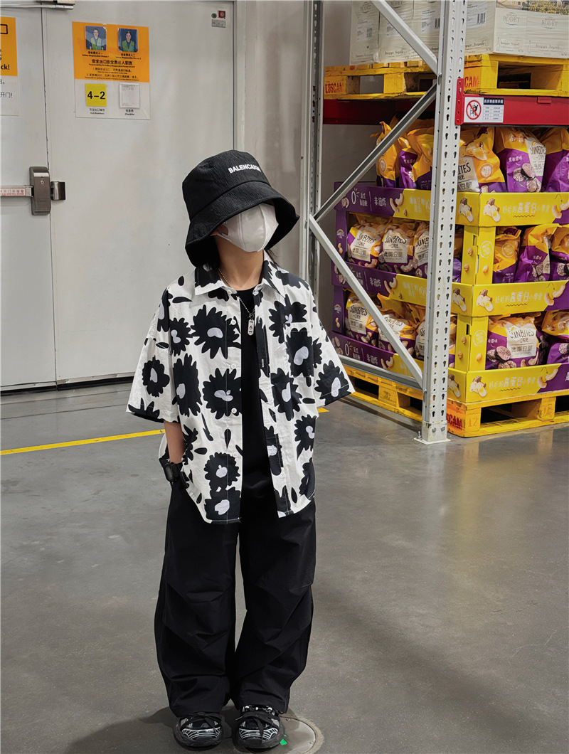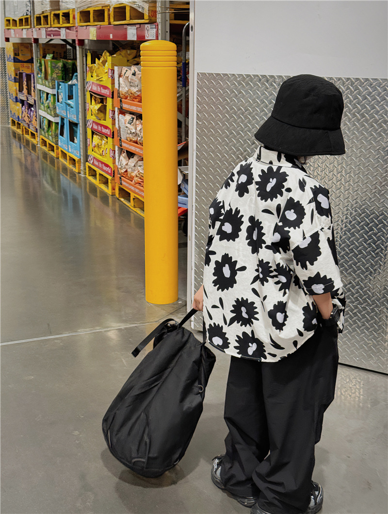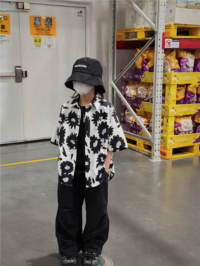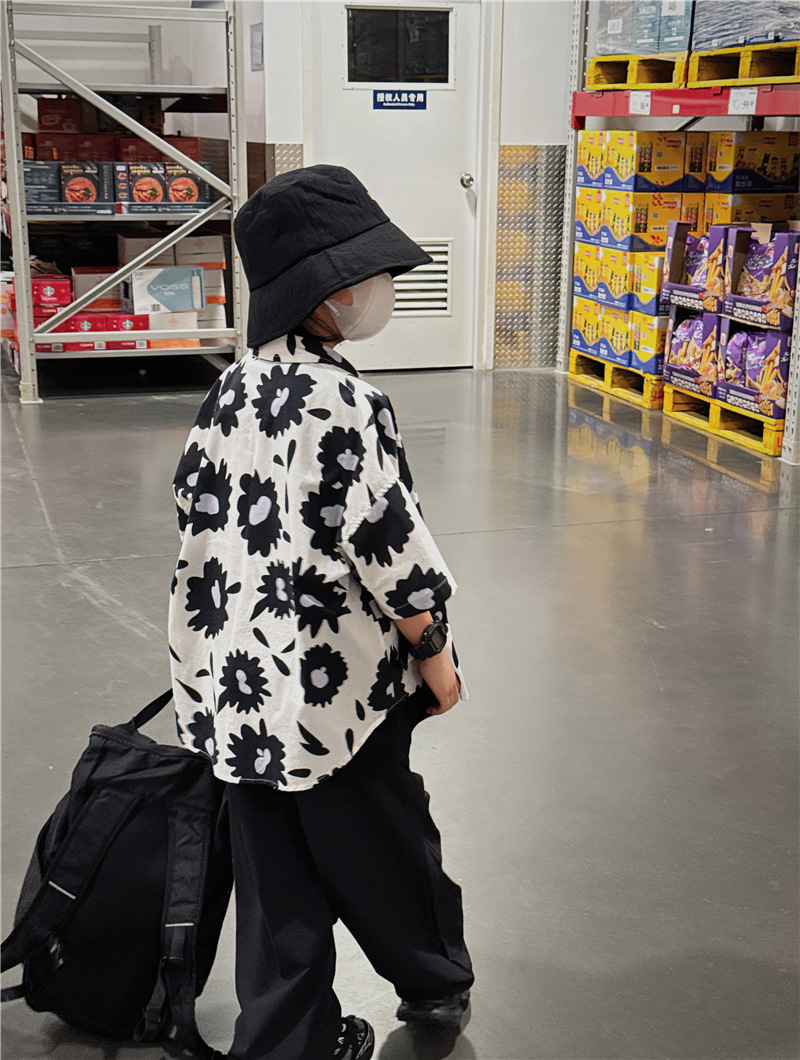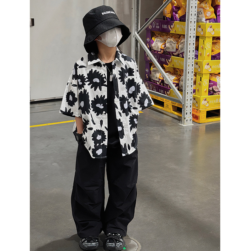 Baoduo 무게 소년 반팔 셔츠 꽃 무늬 탑 한국 스타일 어린이 바닥 셔츠 여름 새 해변 반팔 트렌드스토어 가기