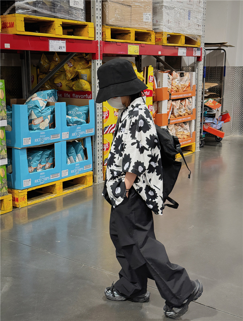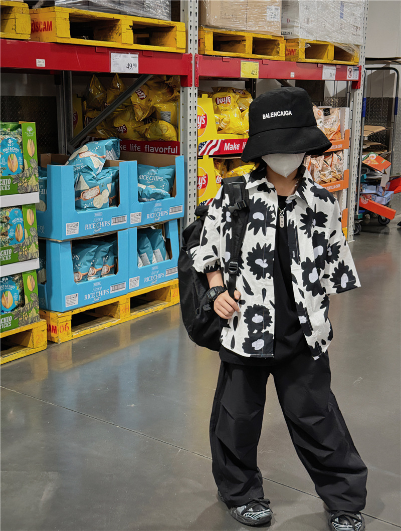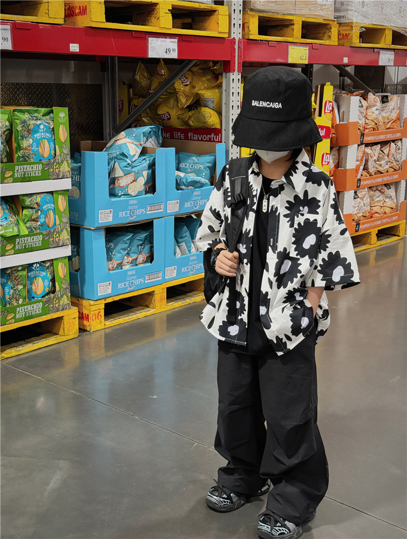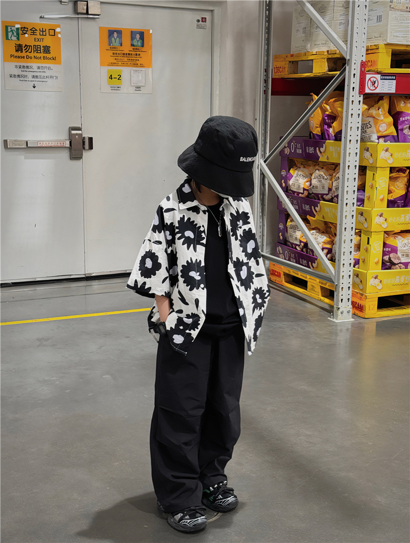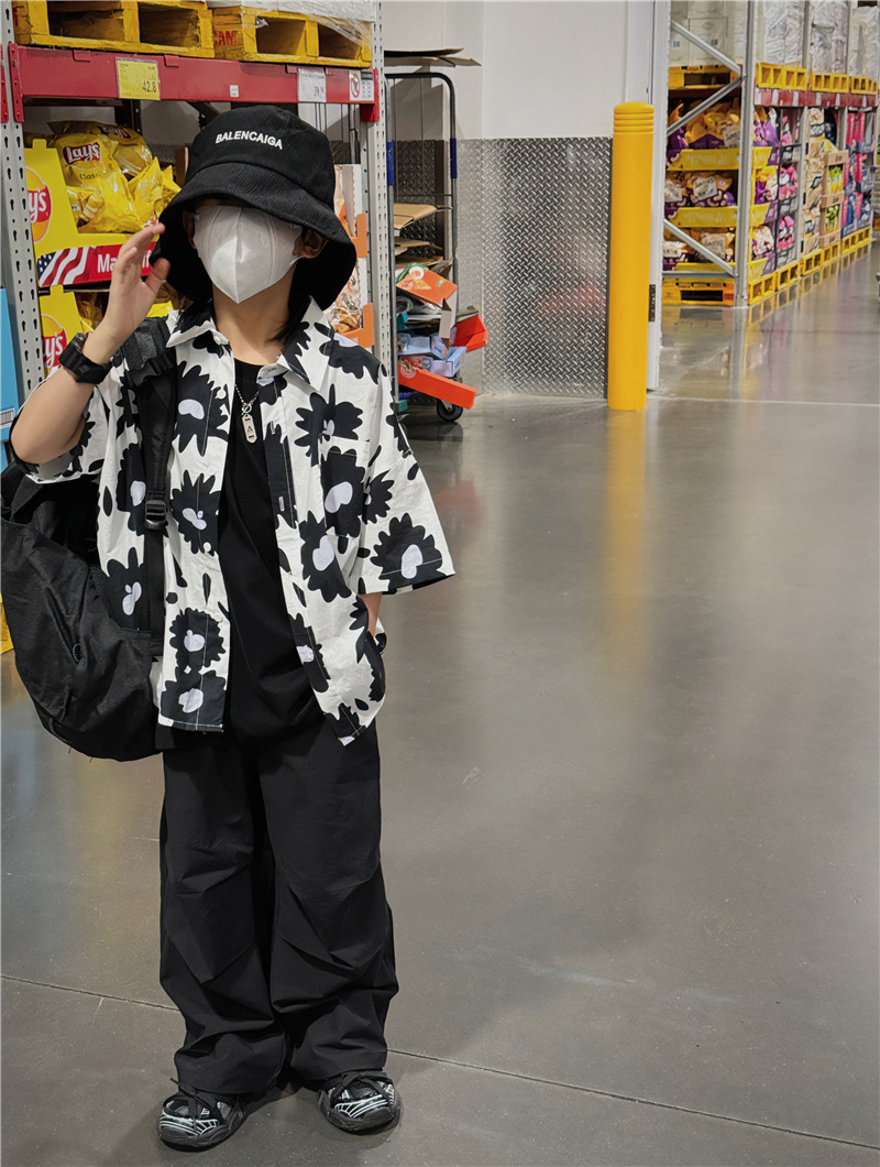 Baoduo 무게 소년 반팔 셔츠 꽃 무늬 탑 한국 스타일 어린이 바닥 셔츠 여름 새 해변 반팔 트렌드스토어 가기