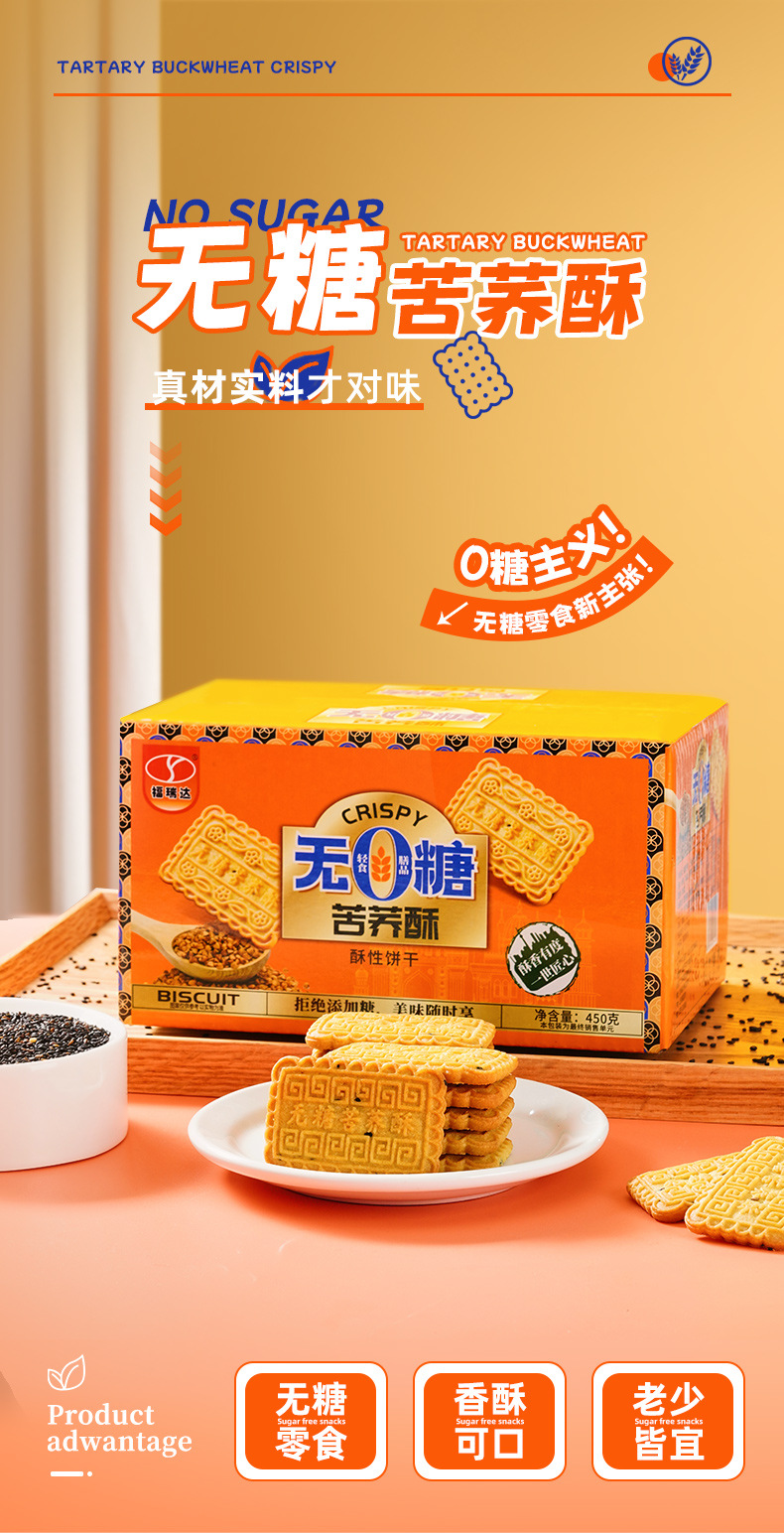 푸리다-무설탕 쓴메밀케이크, 0 설탕 비스킷, 바삭하고 향긋하며 맛있는 전통 과자 간식스토어 가기
