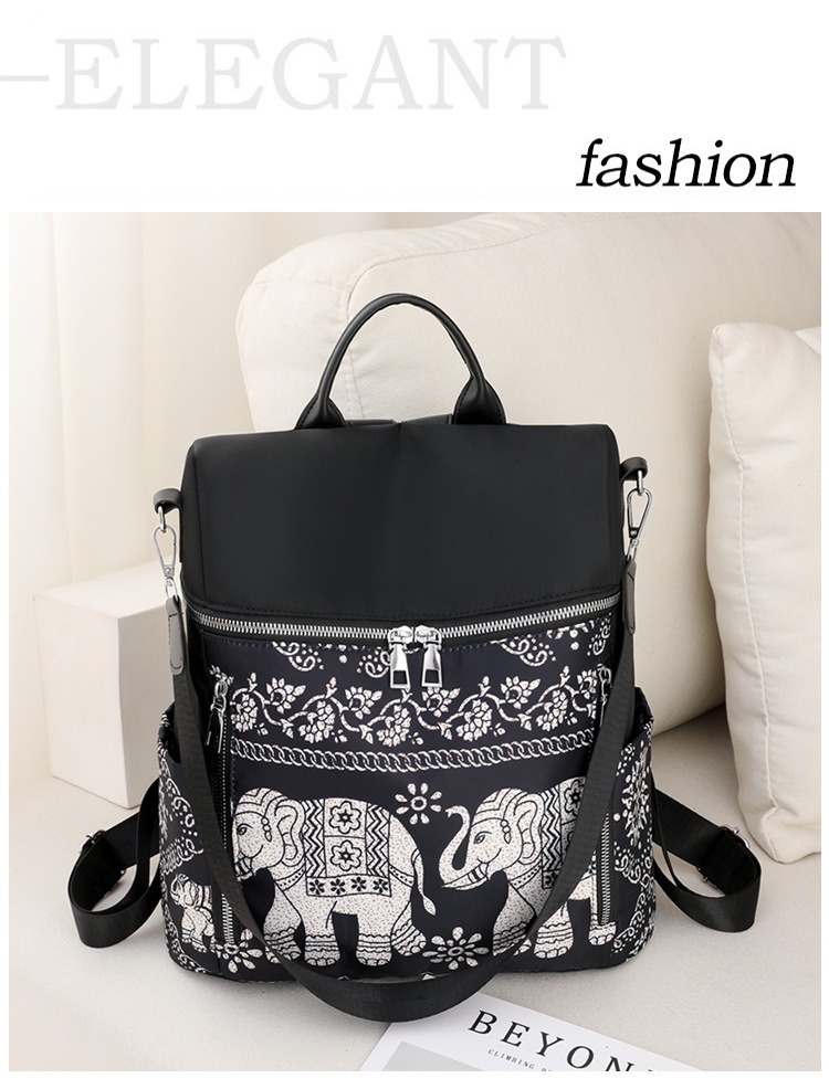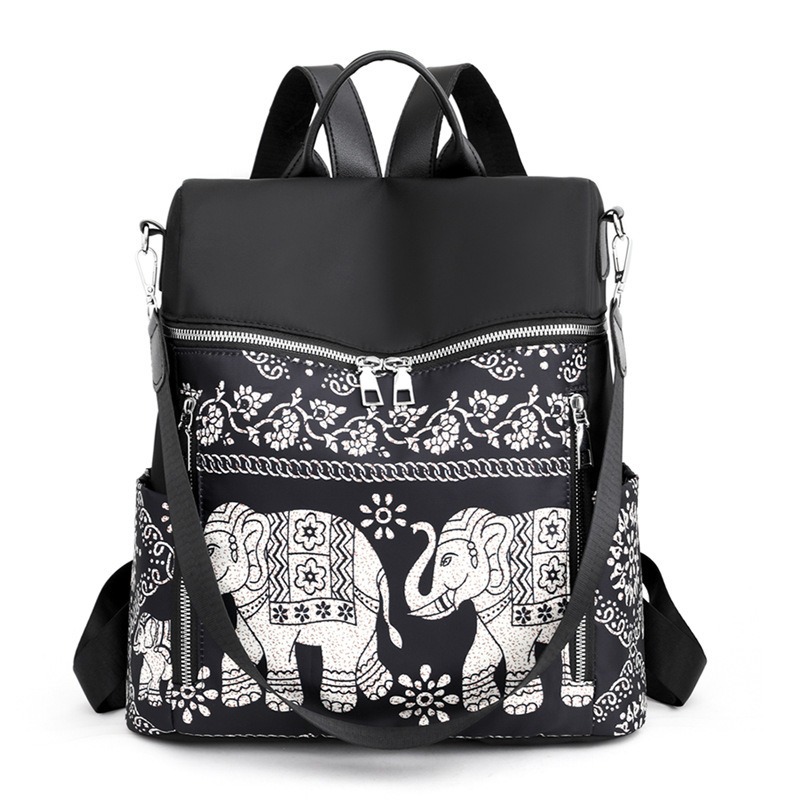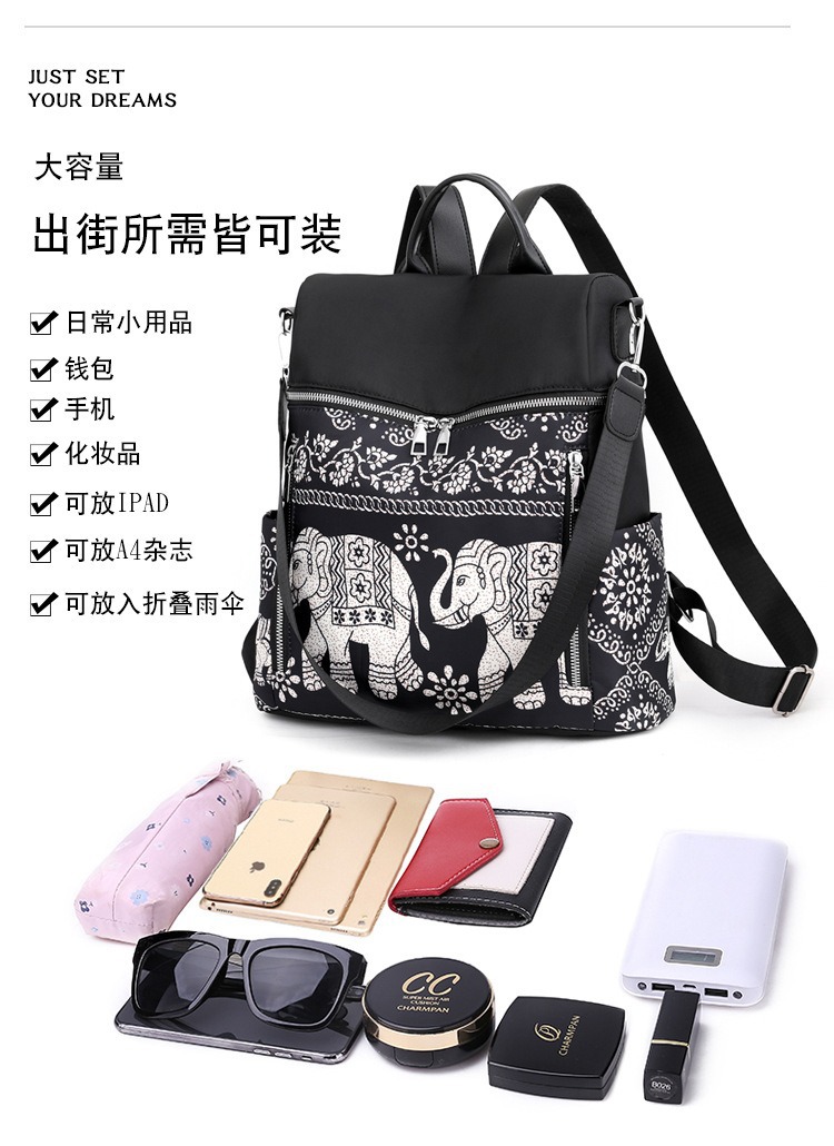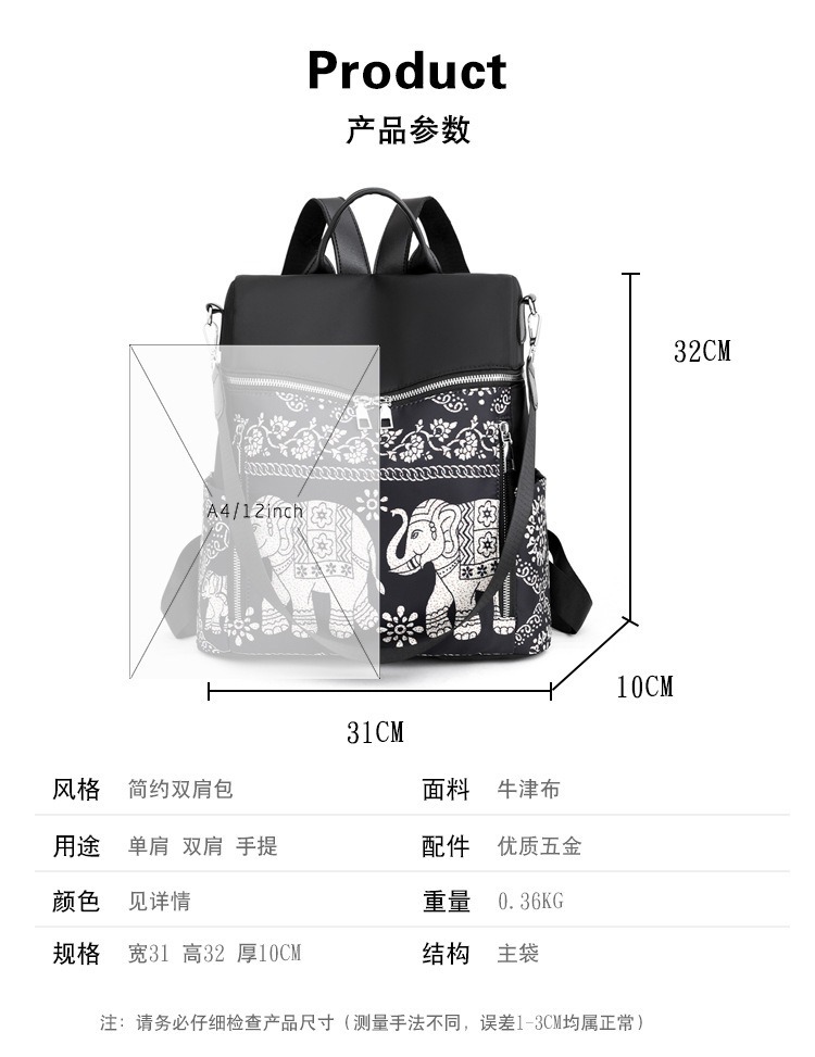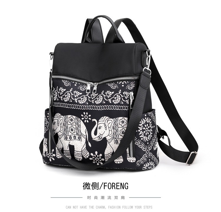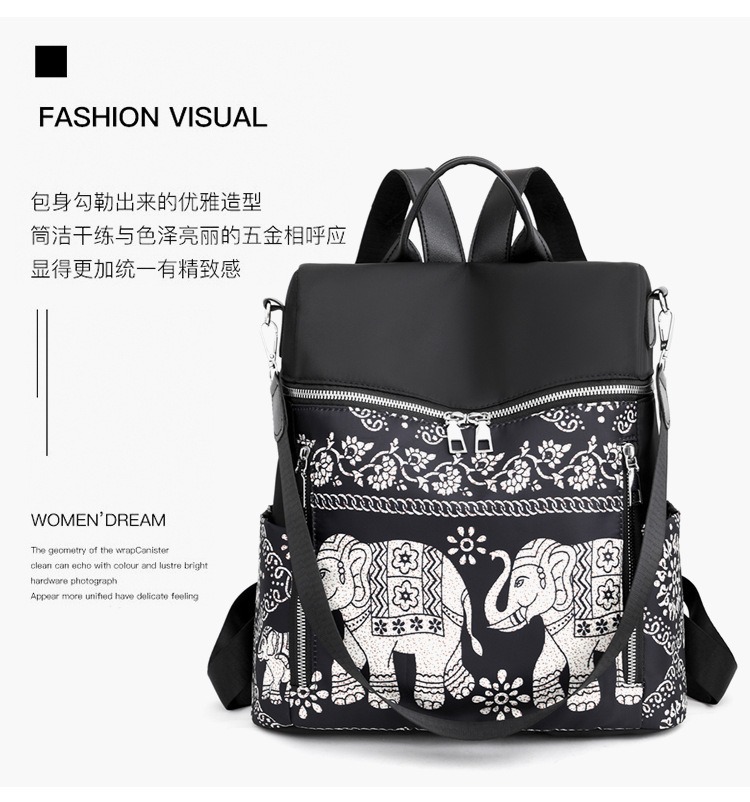 코끼리 인쇄 옥스포드 천 배낭 여성 레저 다기능 가방 민족 스타일 학생 어깨 배낭 국경 대외 무역스토어 가기