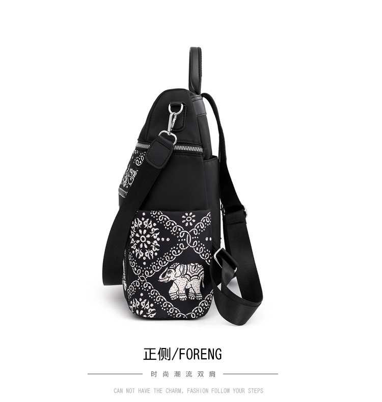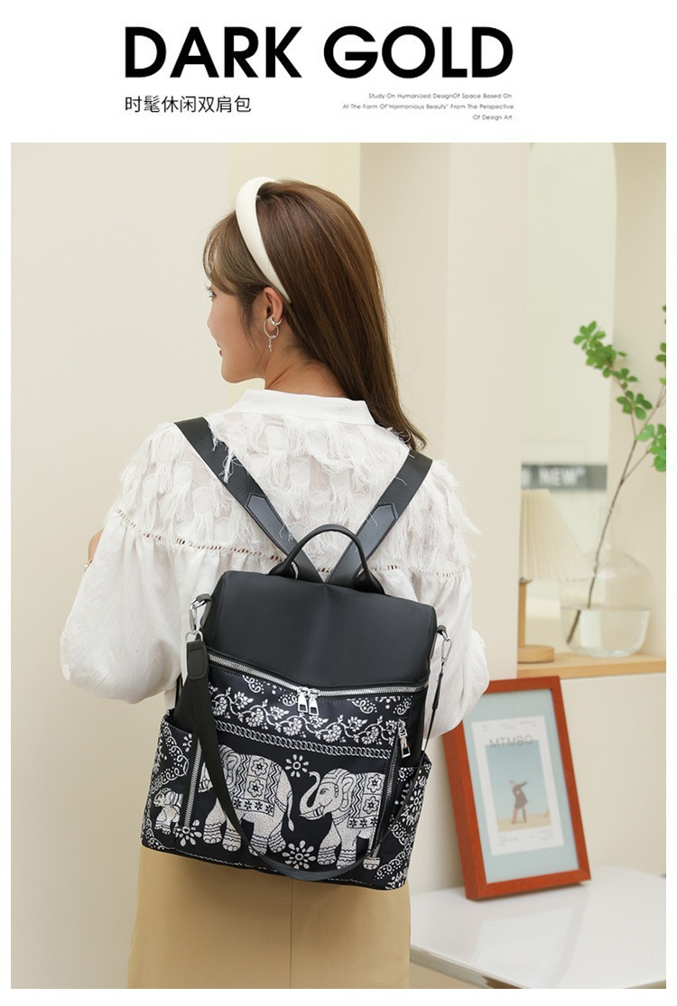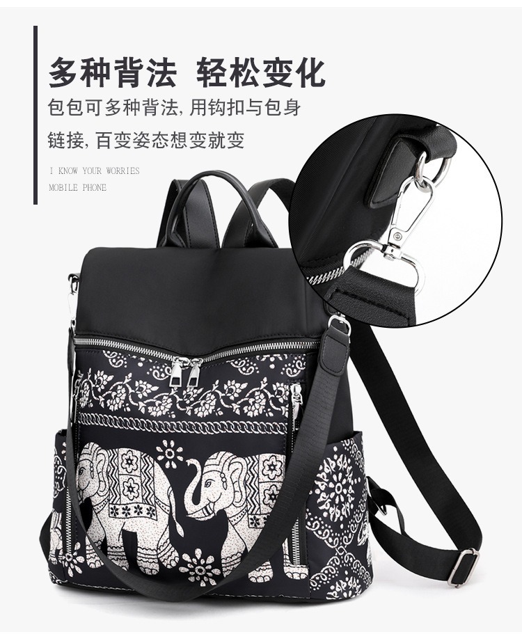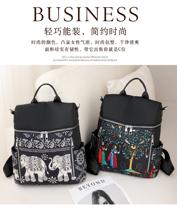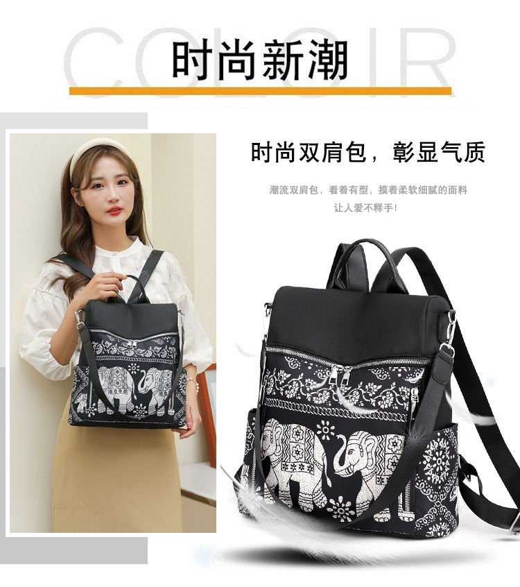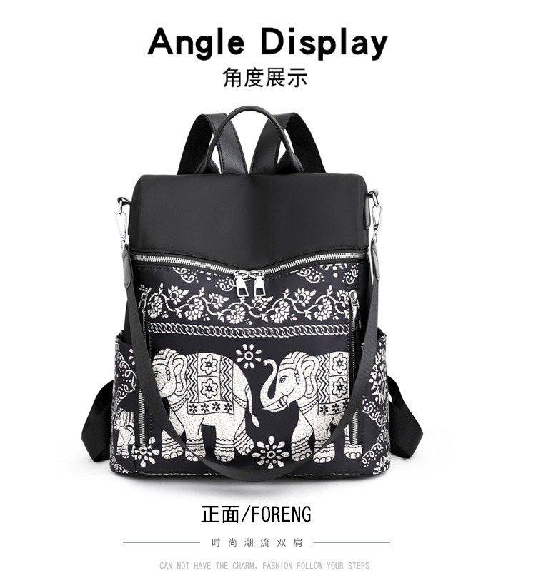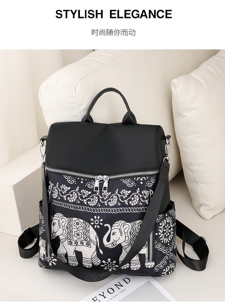 코끼리 인쇄 옥스포드 천 배낭 여성 레저 다기능 가방 민족 스타일 학생 어깨 배낭 국경 대외 무역스토어 가기