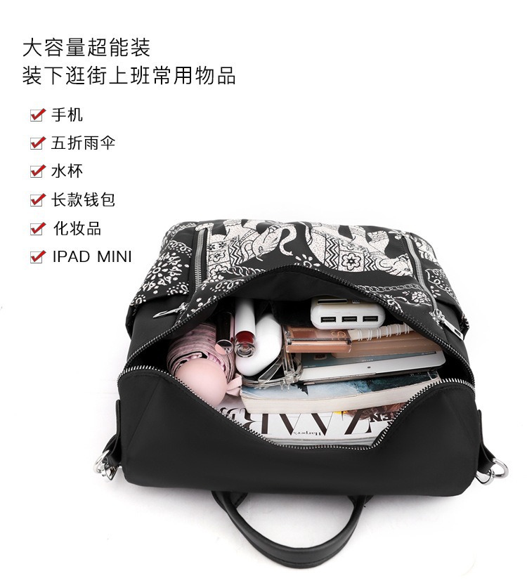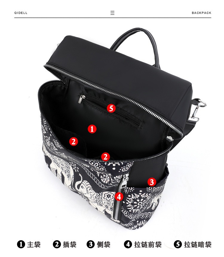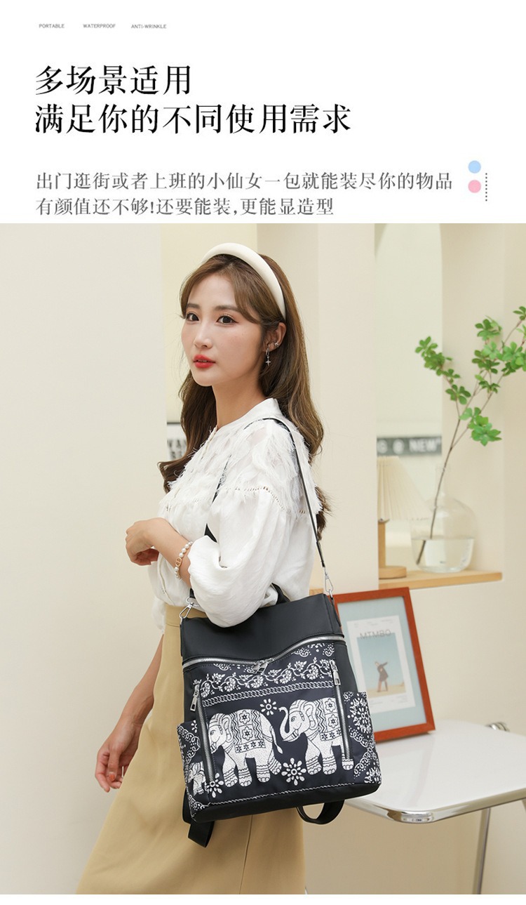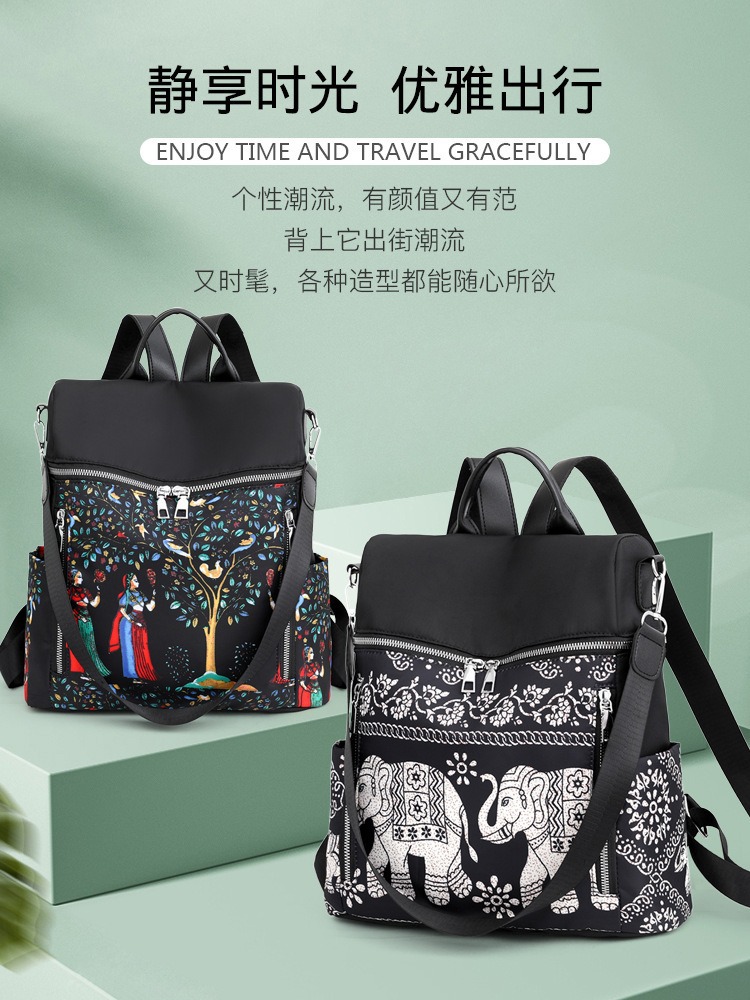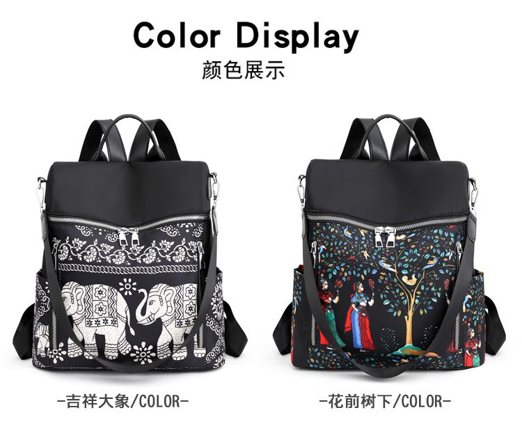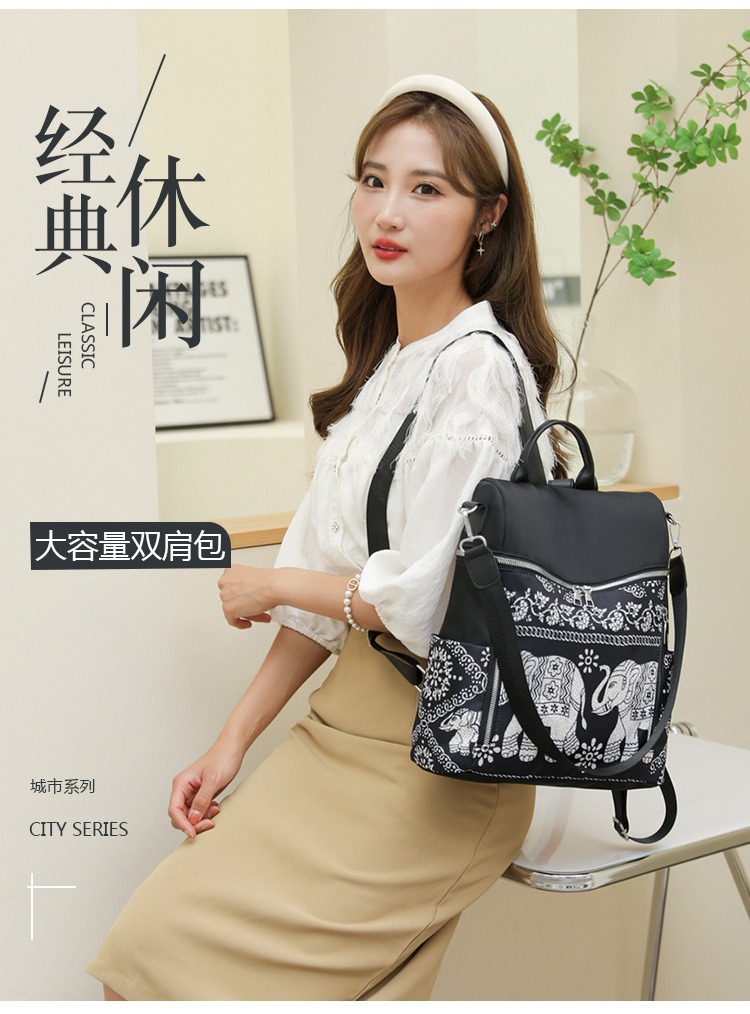 코끼리 인쇄 옥스포드 천 배낭 여성 레저 다기능 가방 민족 스타일 학생 어깨 배낭 국경 대외 무역스토어 가기