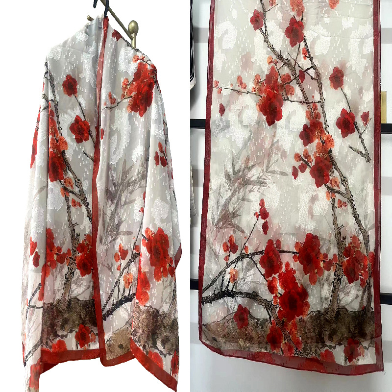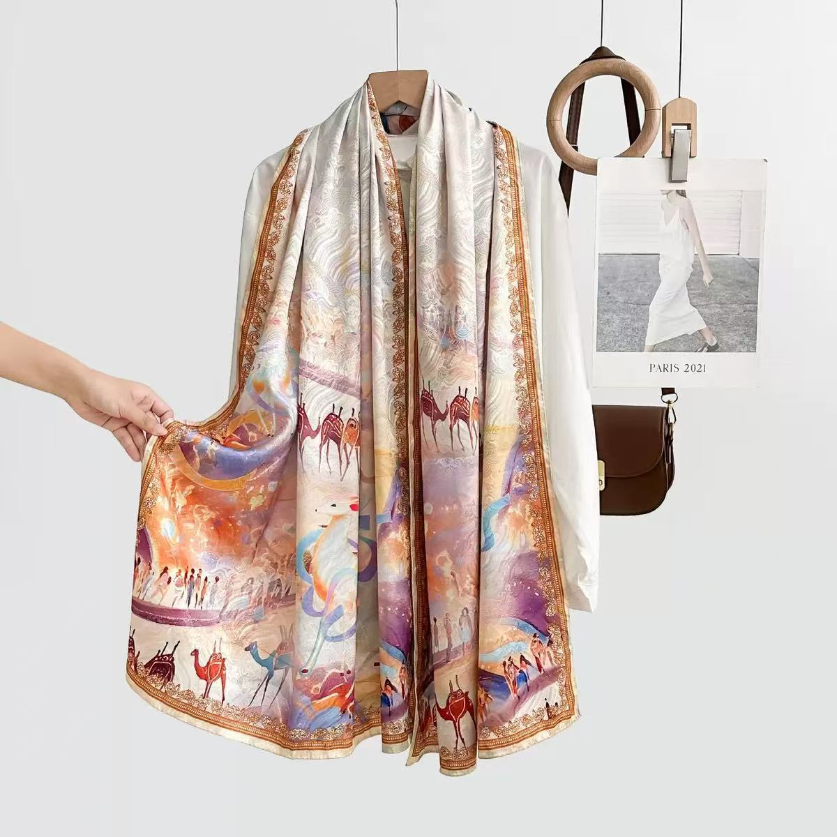 둔황 실크 스카프, 향기로운 구름사, 중국풍 여름 얇은 스카프, 고급스럽고 다용도로 활용 가능한 리본 스카프, 해외 직구 가능