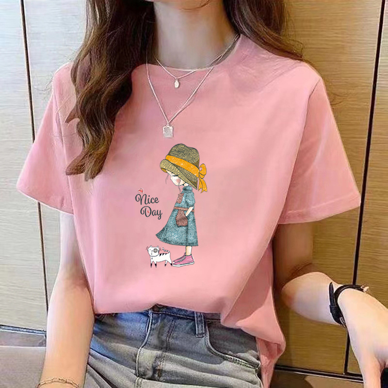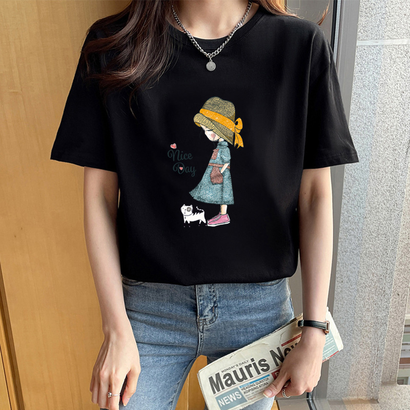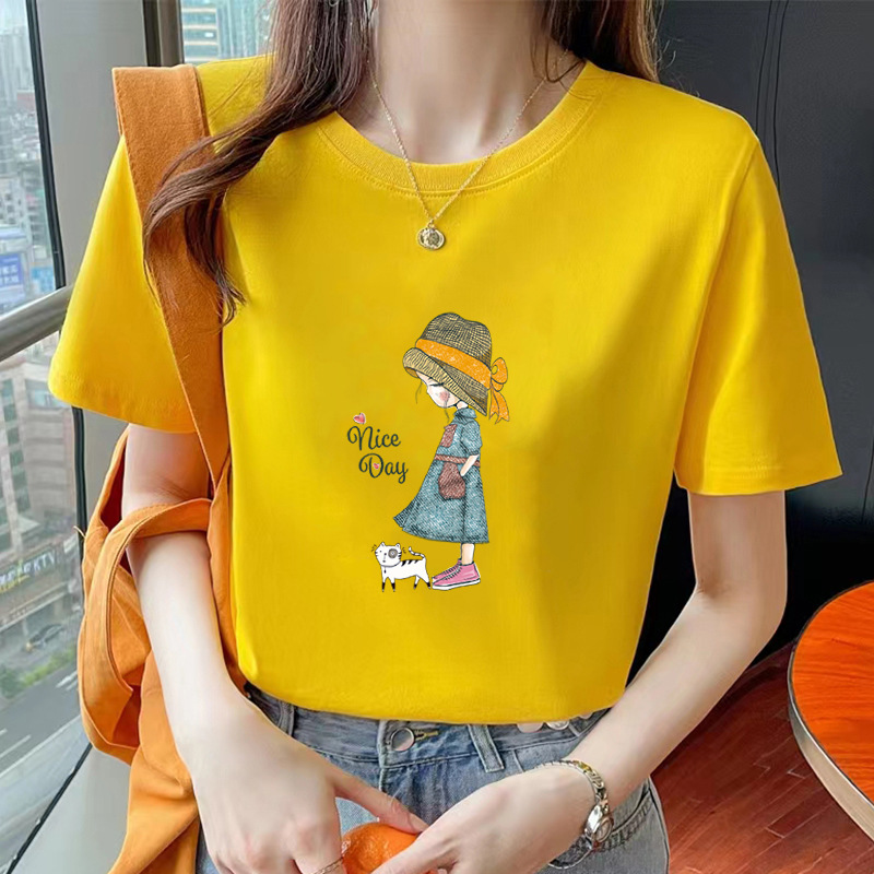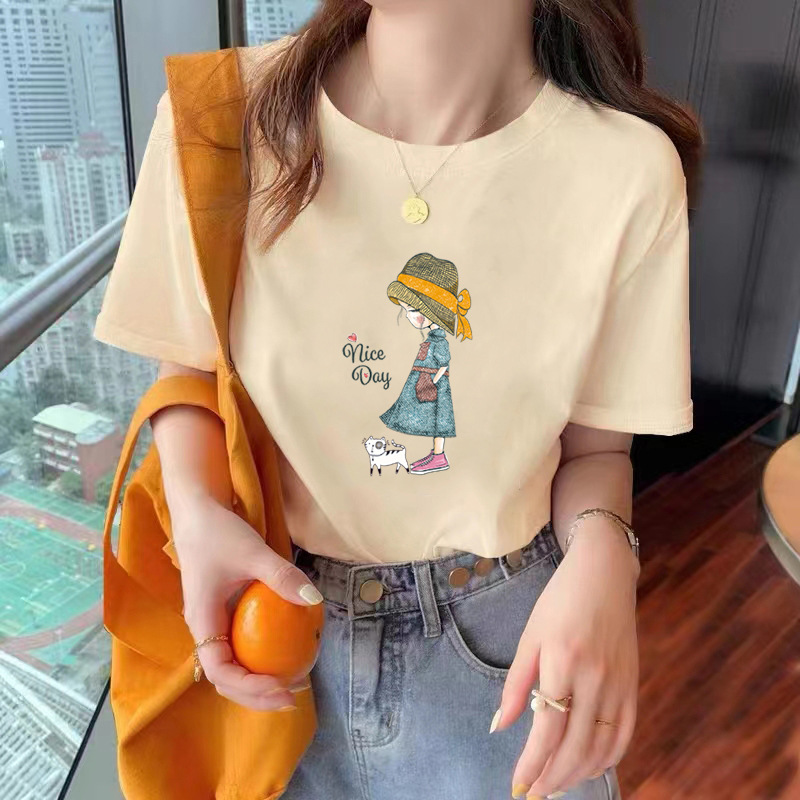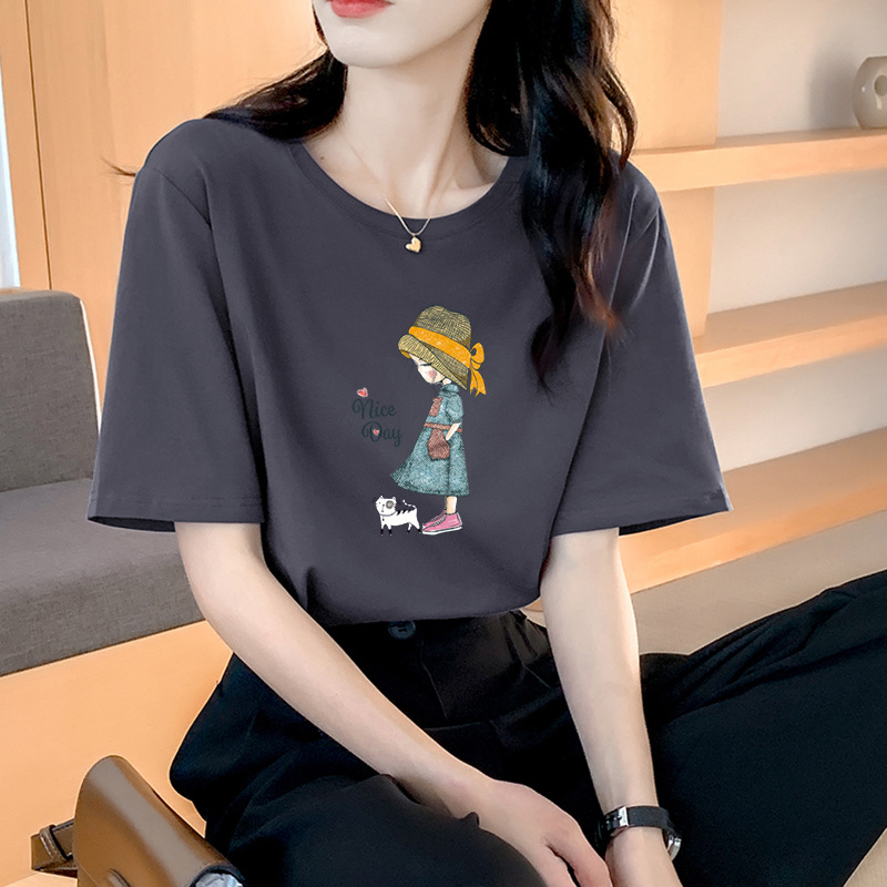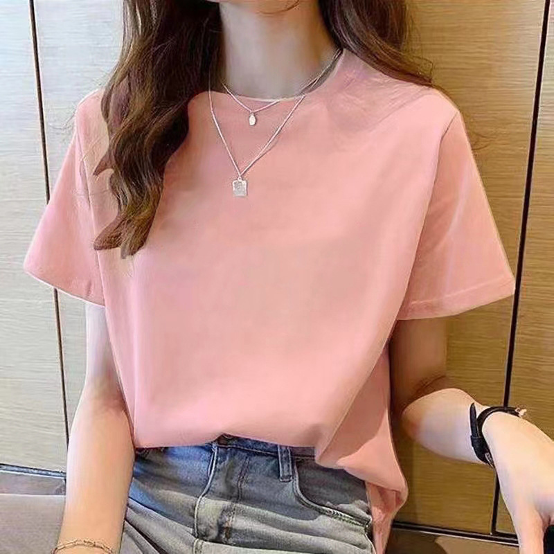 여성용 순면 반팔 티셔츠 오른쪽 어깨 캐주얼 탑 반팔 2025 여름 신작 코튼 티셔츠 바닥 겉옷스토어 가기