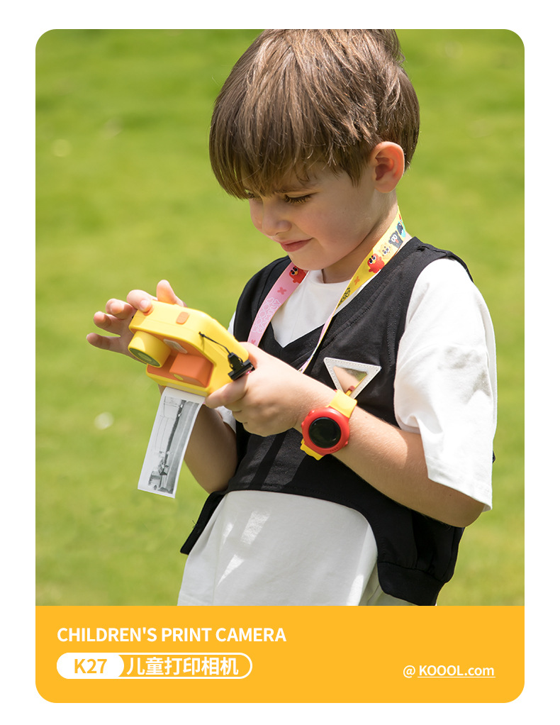 • [인쇄 카메라 - 카드 없음] 생생한 노란색 + (인쇄지 3롤 + 끈)