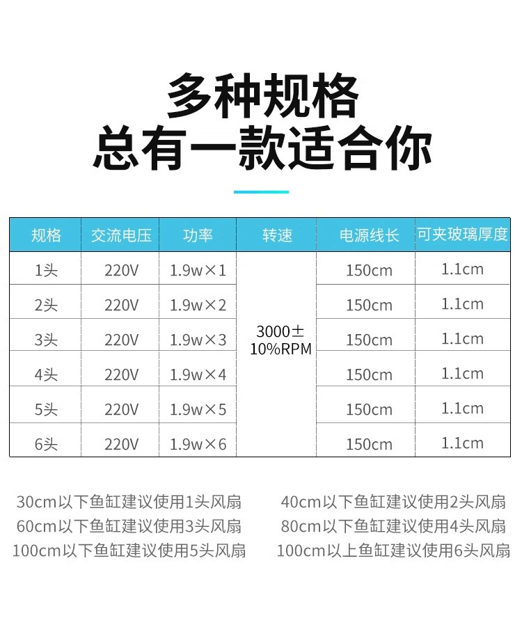 • 5 헤드 3C 인증/6 속도 조절 (아래 100CM 어항에 적합)