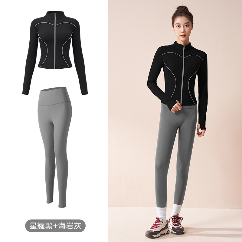 복숭아 라인 센스 편안한 야외 야간 실행 반사 라이딩 세트 방풍 슬림 핏 달리기 피트니스 스포츠 타이트 세트