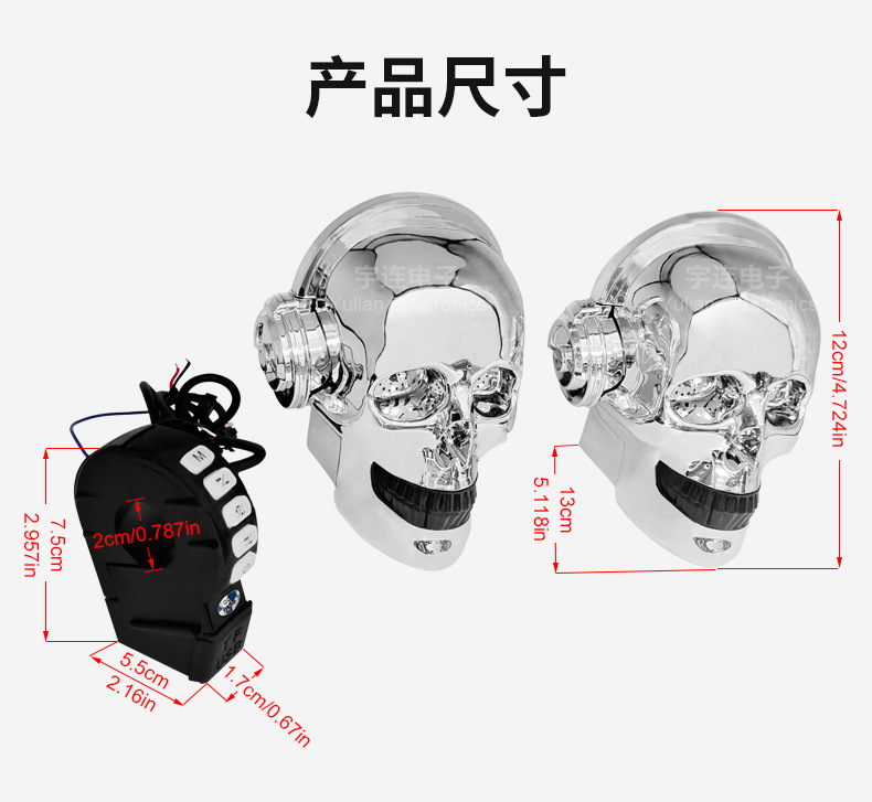 국경 간 뜨거운 판매 12V 오토바이 팔찌 두개골 오디오 자동차 서브 우퍼 방수 블루투스 전화