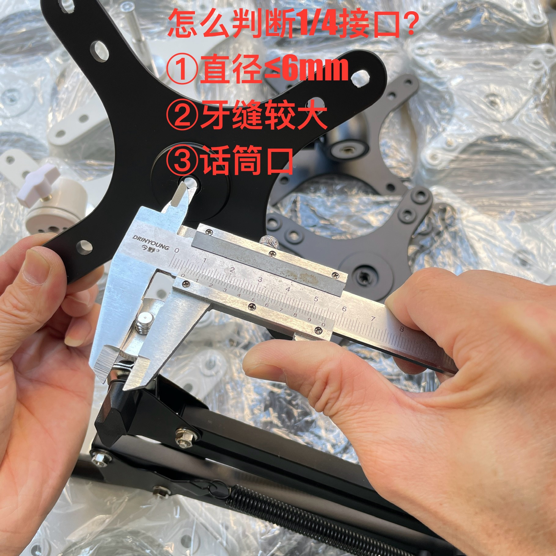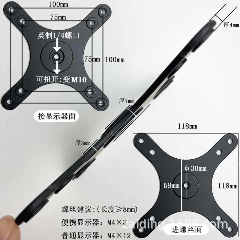 产品升级提醒:中间英制1/4-20牙距不变,转换头由原来的3/8更换成M10-1牙距,望知悉。