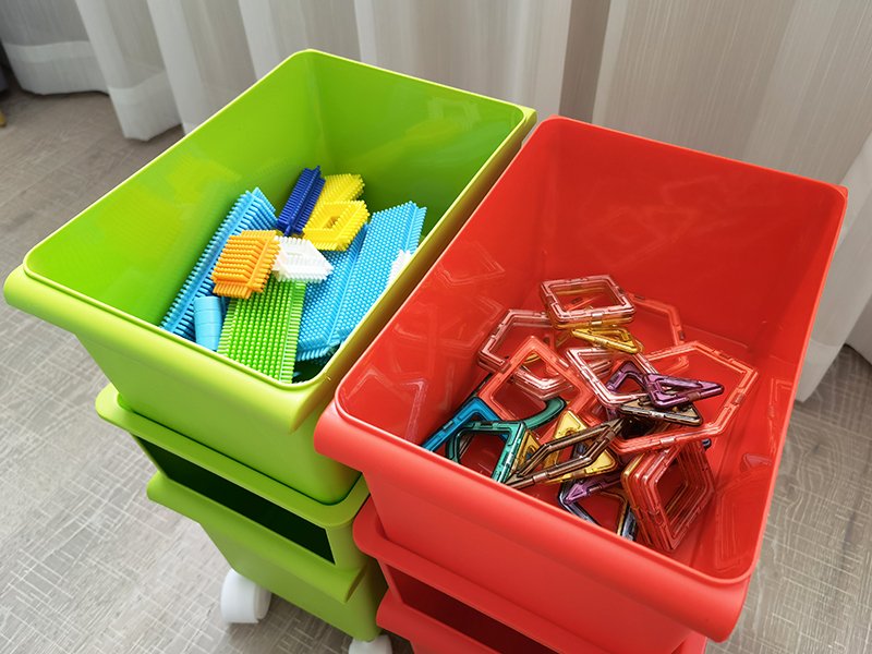 뚜껑이있는 바퀴가 달린 플라스틱 보관 상자 뚜껑 어린이 빌딩 블록 퍼즐 보관 상자 더블 레이어 장난감 보관 채널스토어 가기