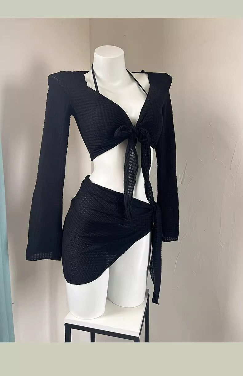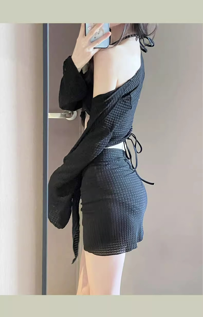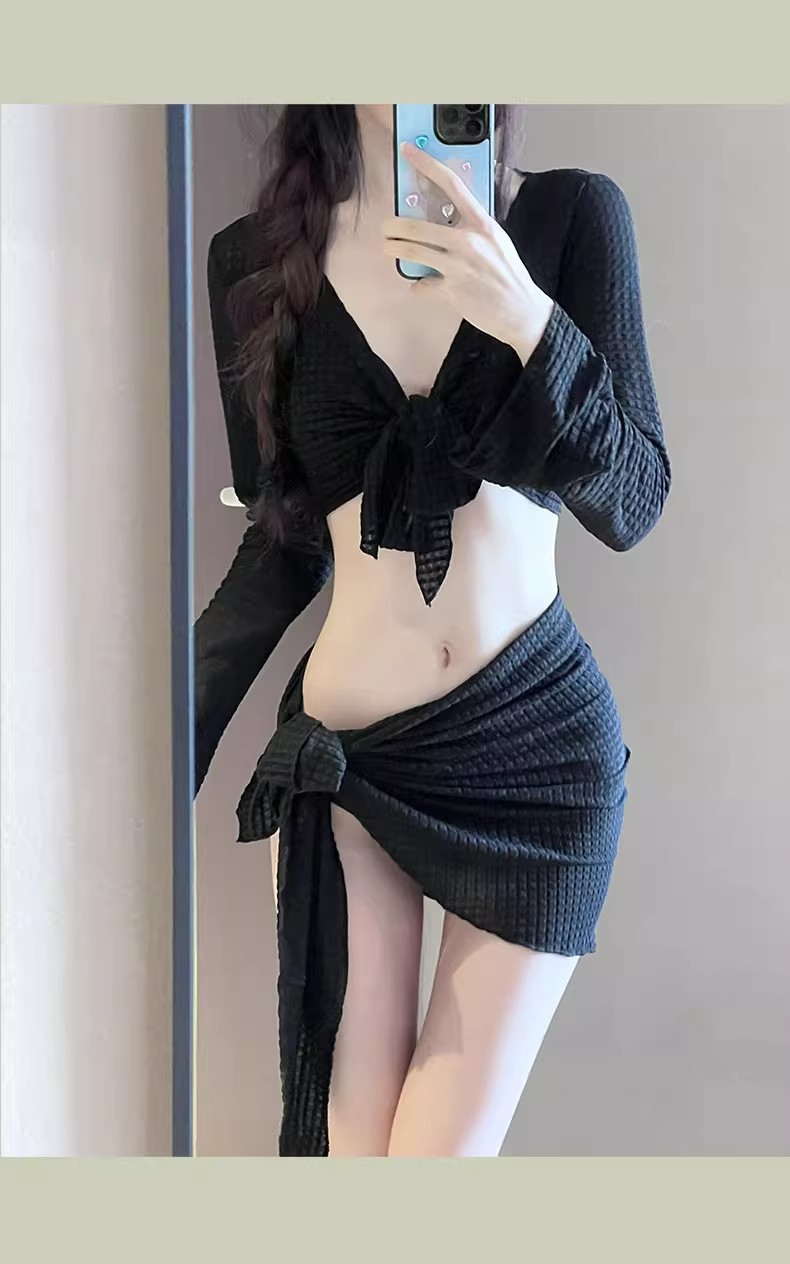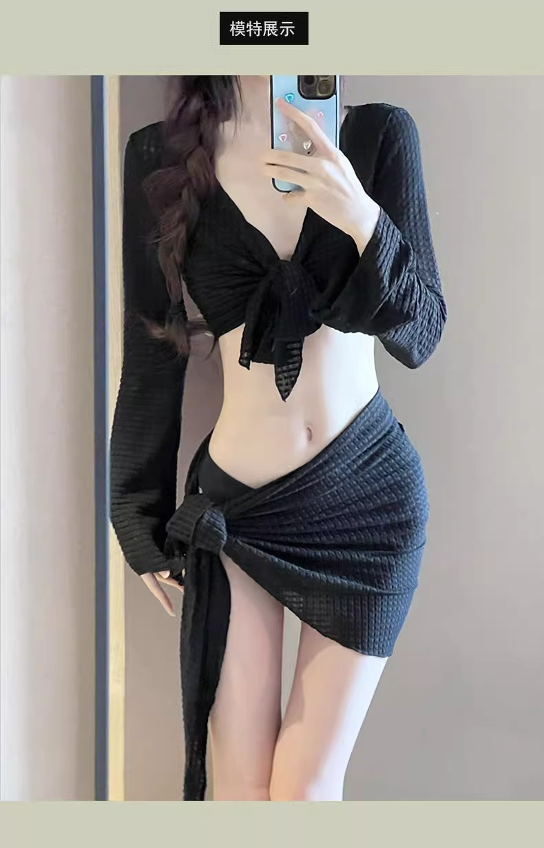 비키니 수영복 여성 2024 년 여름 새 4 피스 세트 하이 엔드 센스 블랙 섹시 수영복 슬리밍 휴가 대외 무역스토어 가기