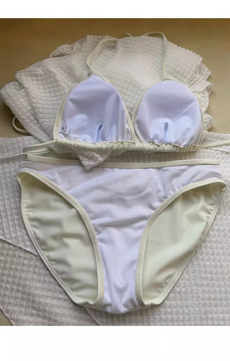 비키니 수영복 여성 2024 년 여름 새 4 피스 세트 하이 엔드 센스 블랙 섹시 수영복 슬리밍 휴가 대외 무역