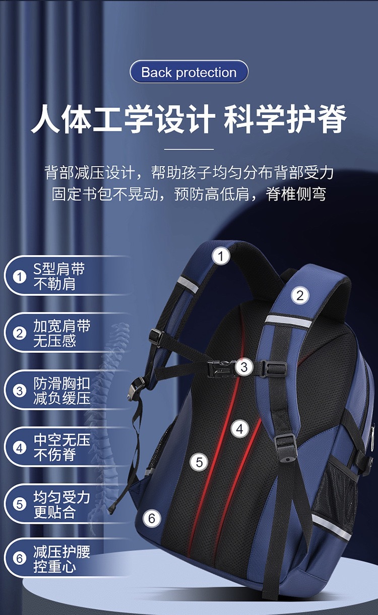 중학교 책가방 어린이 1-3-6-9 학년 2024 새 남학생 부담 감소 다구획 초등학교 대용량