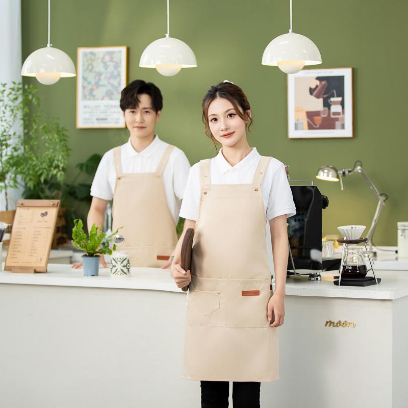 한국 방수 및 내유성 광고 인쇄 주방 앞치마 맞춤 로고 넓어진 어깨 끈 케이터링 앞치마 도매