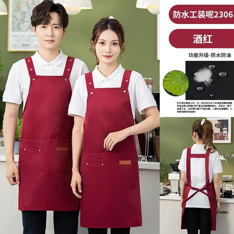 한국 방수 및 내유성 광고 인쇄 주방 앞치마 맞춤 로고 넓어진 어깨 끈 케이터링 앞치마 도매스토어 가기