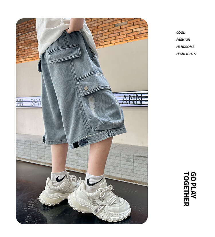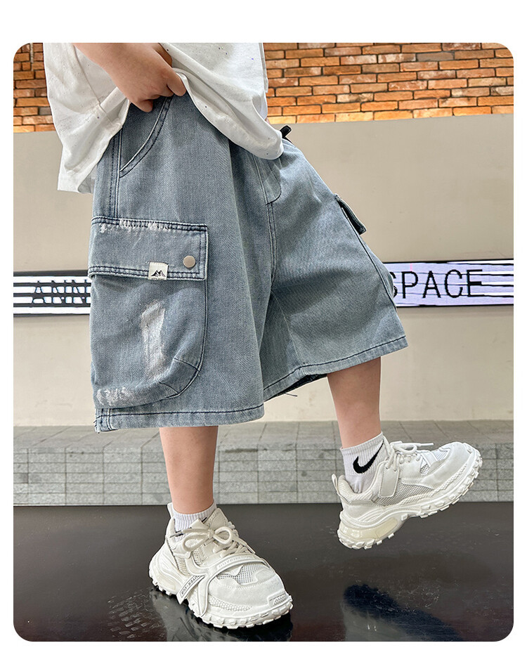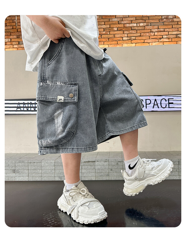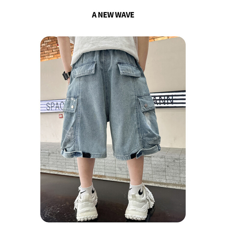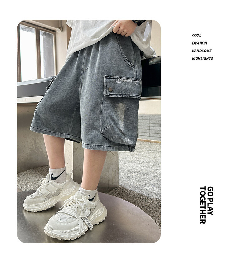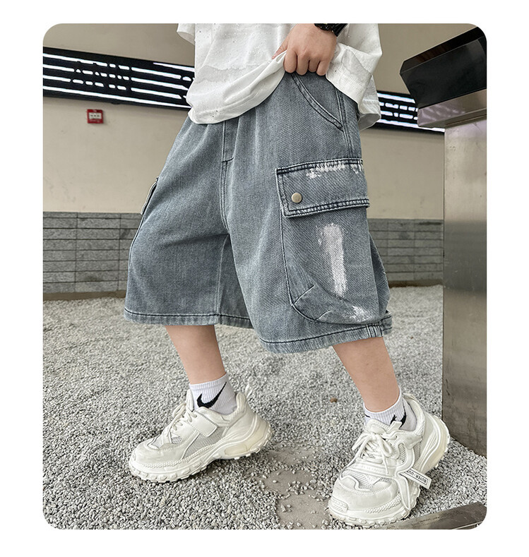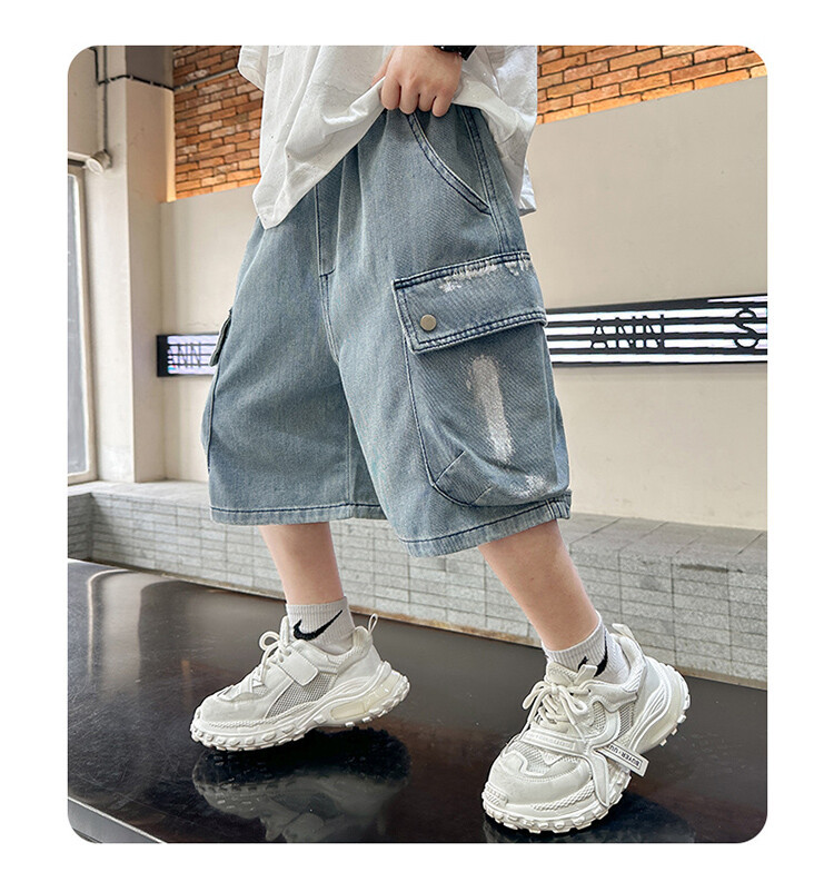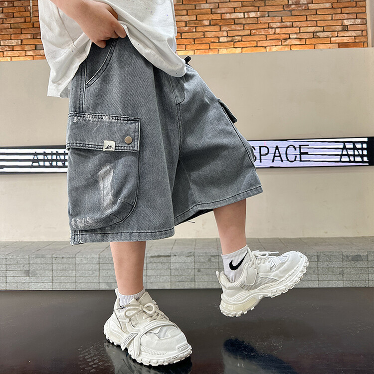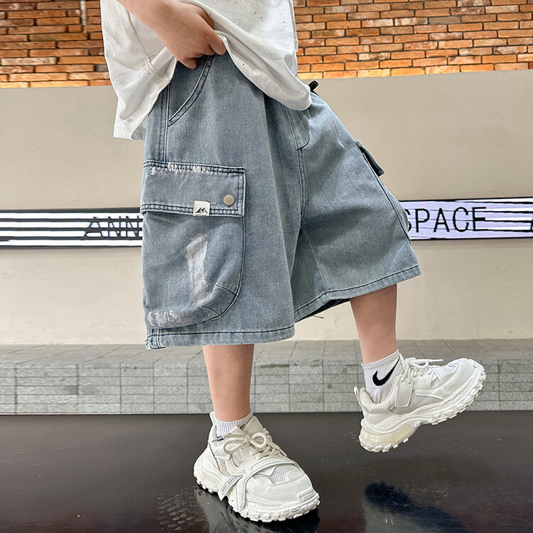 남학생 '트렌디 쿨 카우 반바지 여름 어린이 얇은 작업복 바지 느슨한 유행 소년 바지 아마존