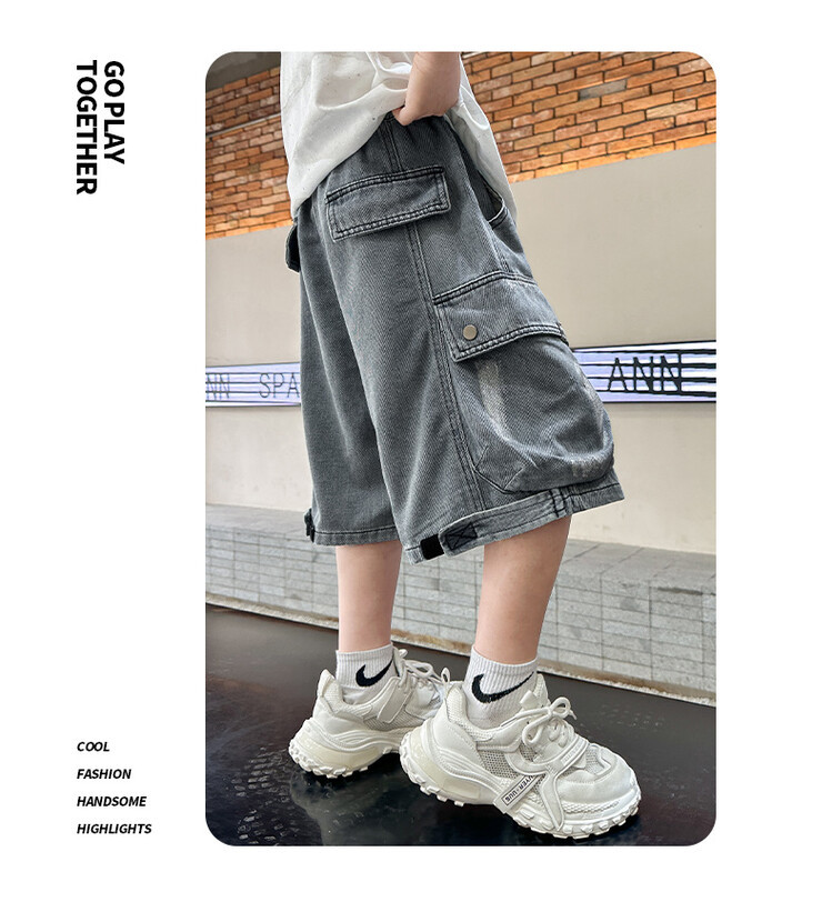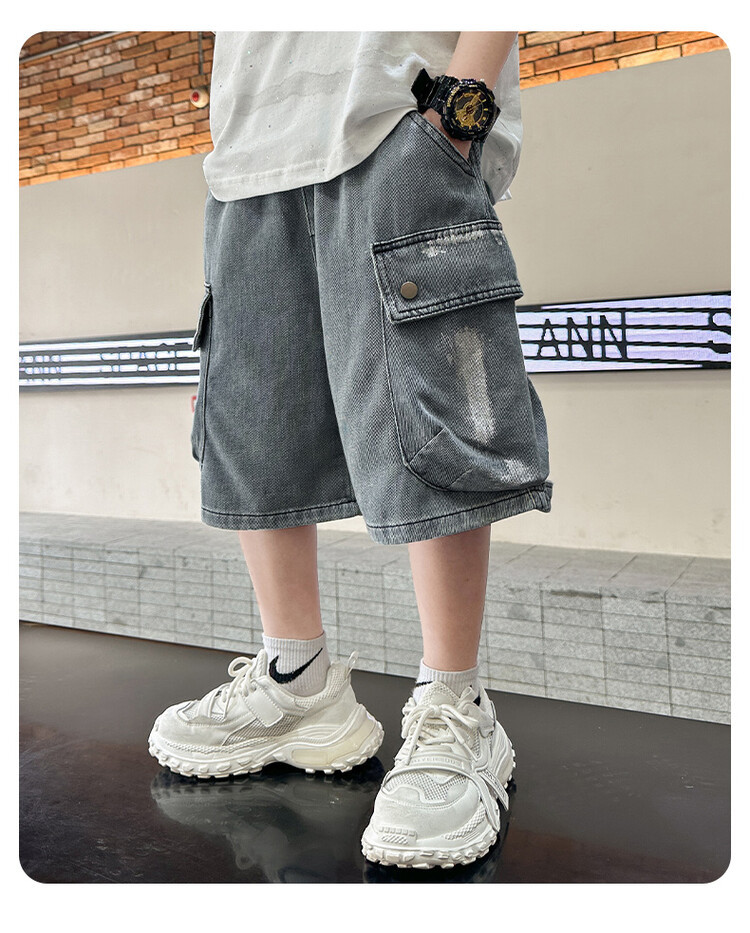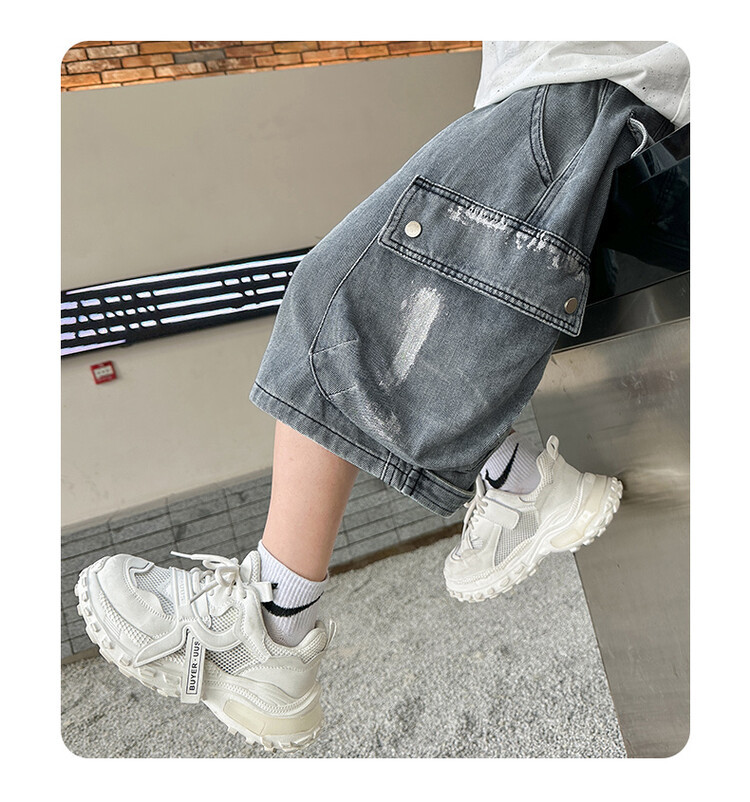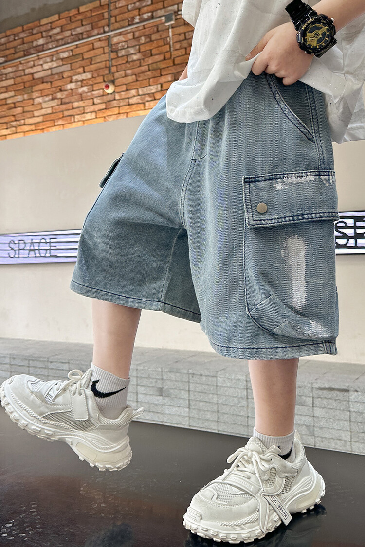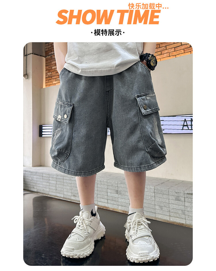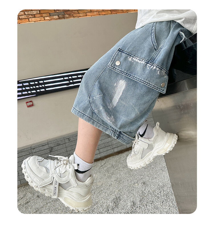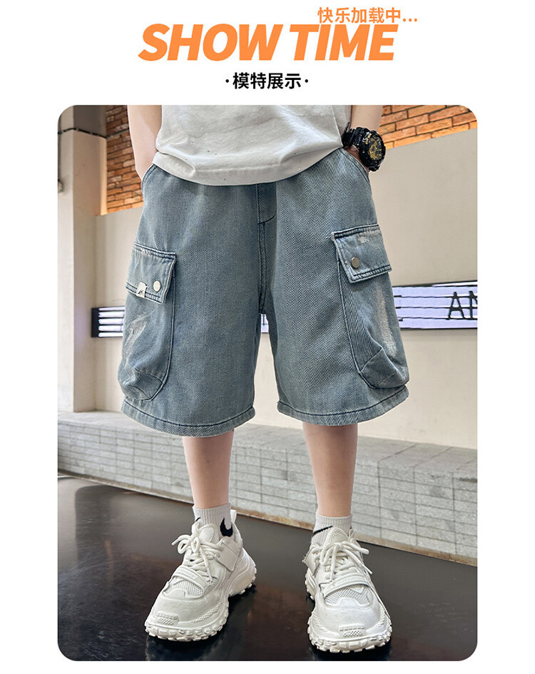 남학생 '트렌디 쿨 카우 반바지 여름 어린이 얇은 작업복 바지 느슨한 유행 소년 바지 아마존