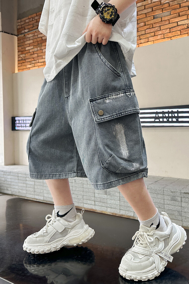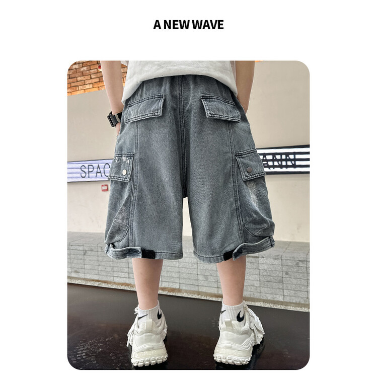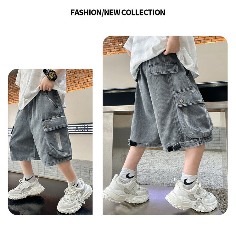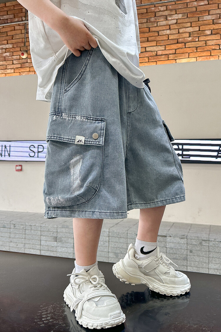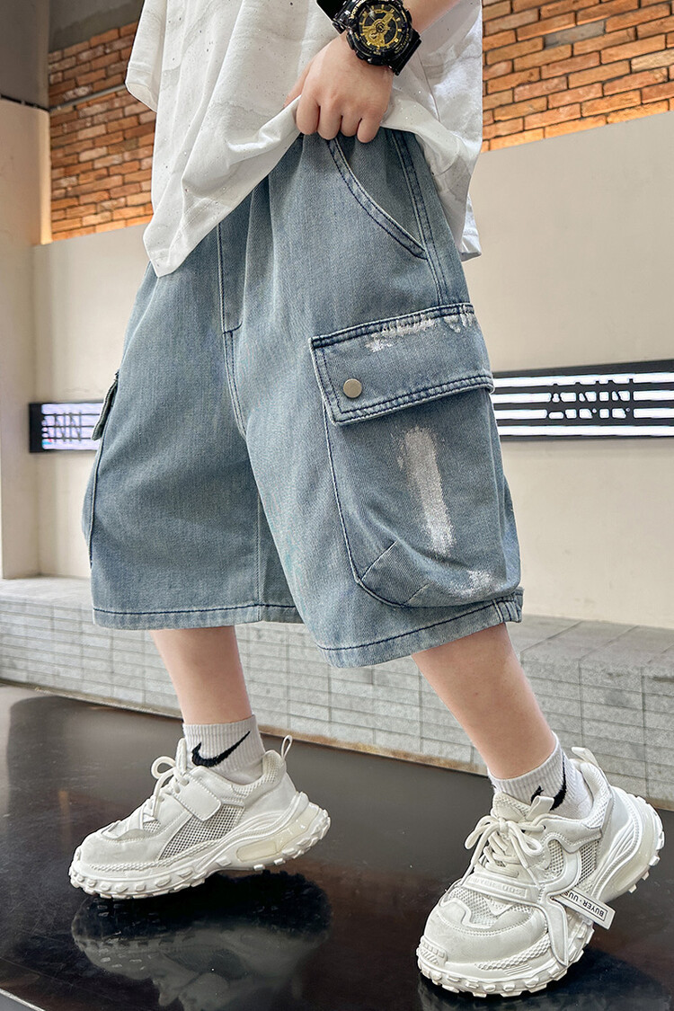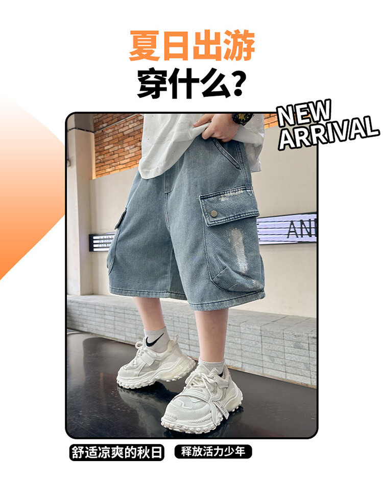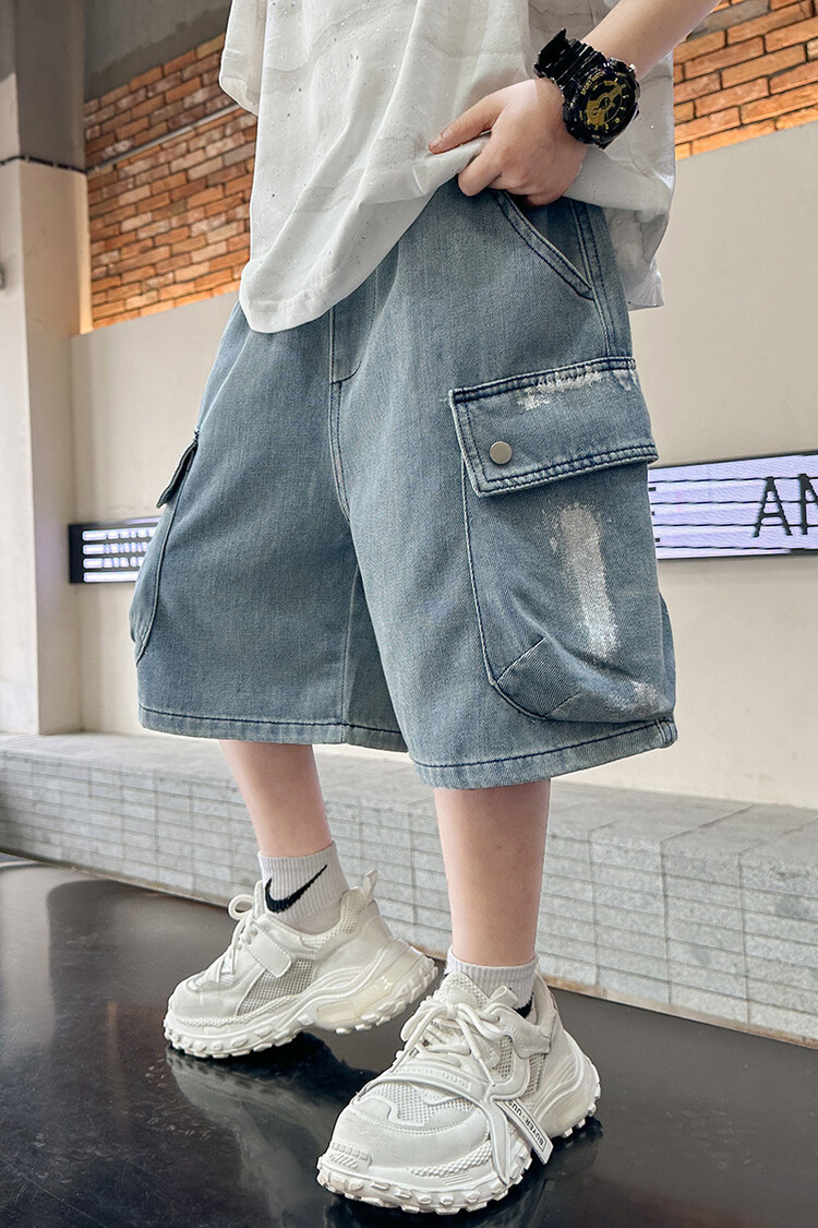 남학생 '트렌디 쿨 카우 반바지 여름 어린이 얇은 작업복 바지 느슨한 유행 소년 바지 아마존