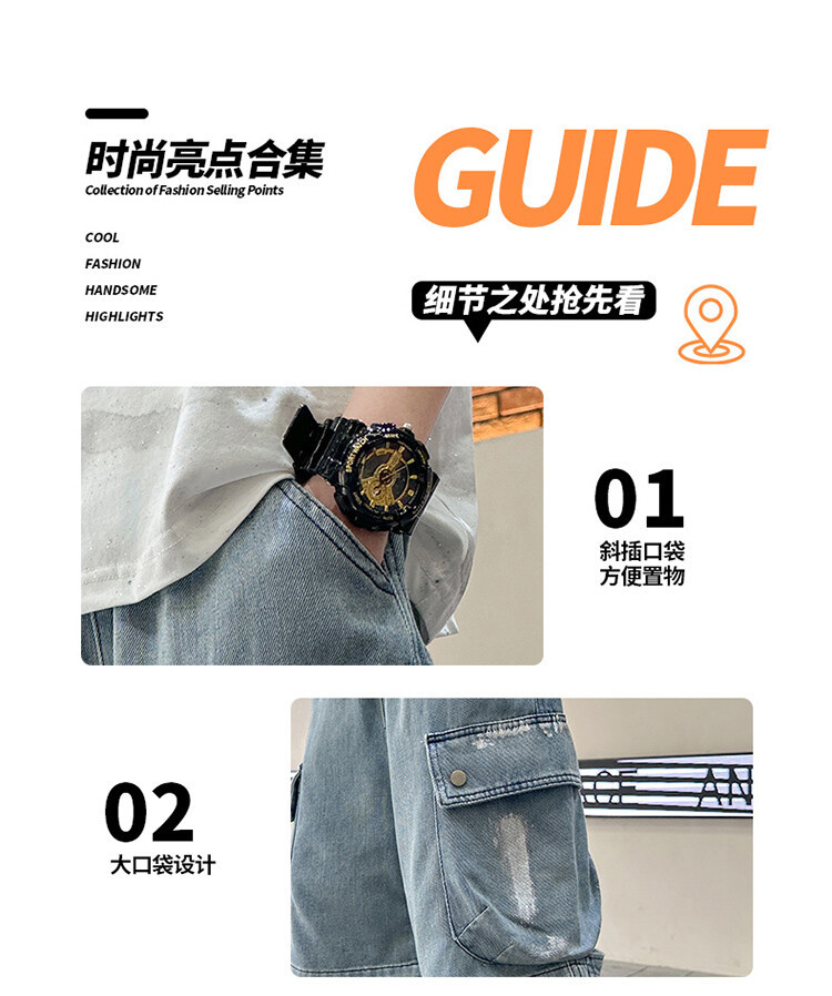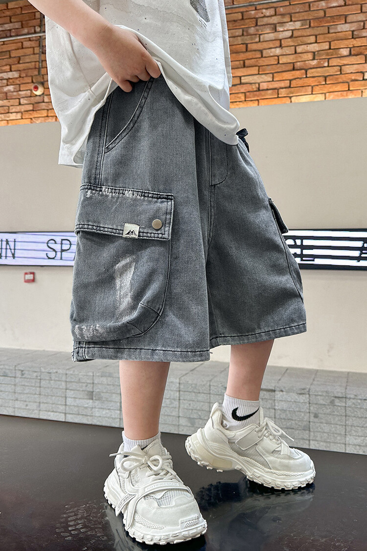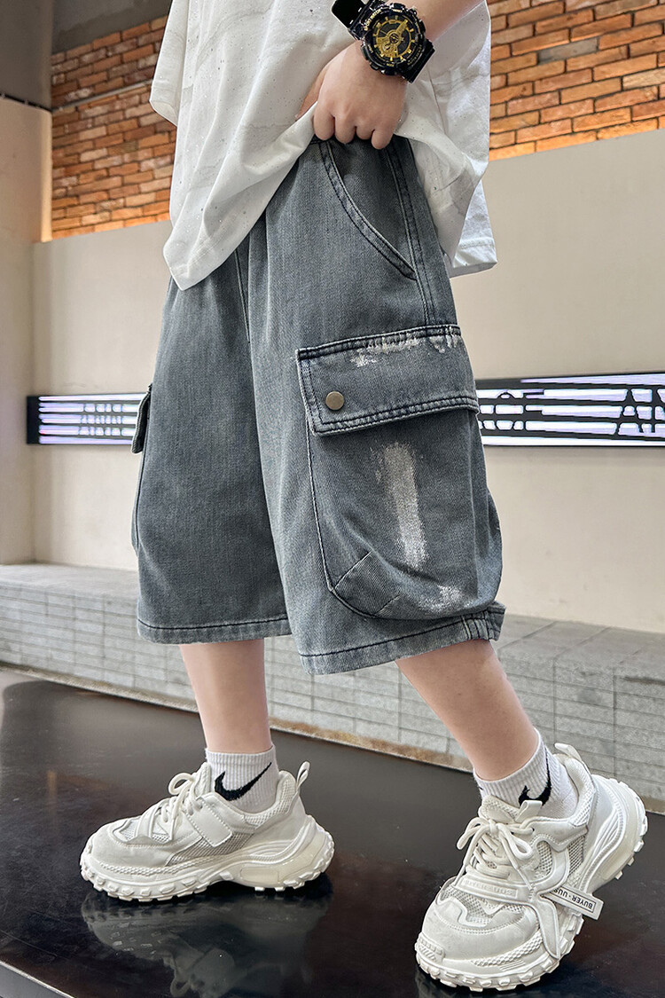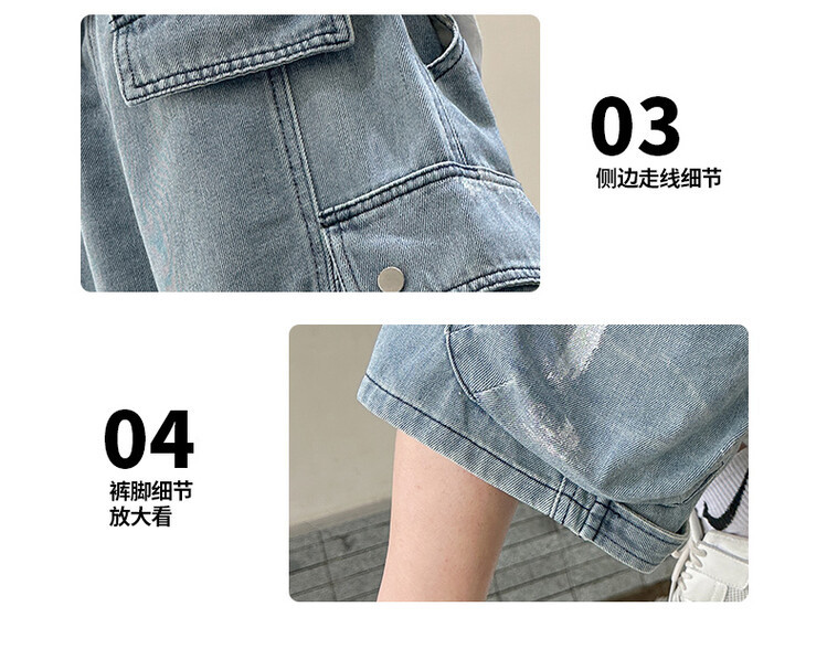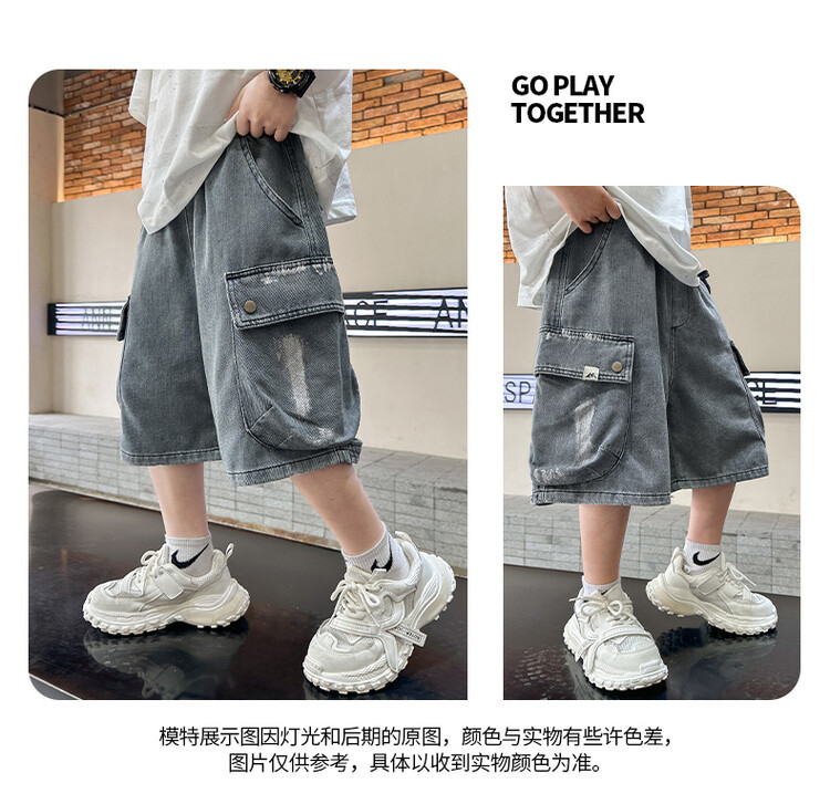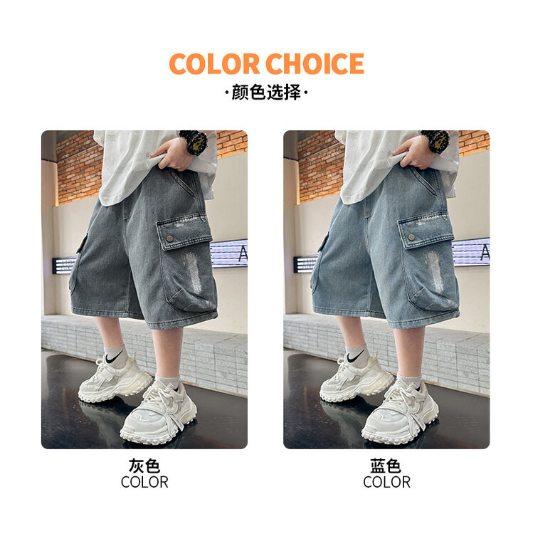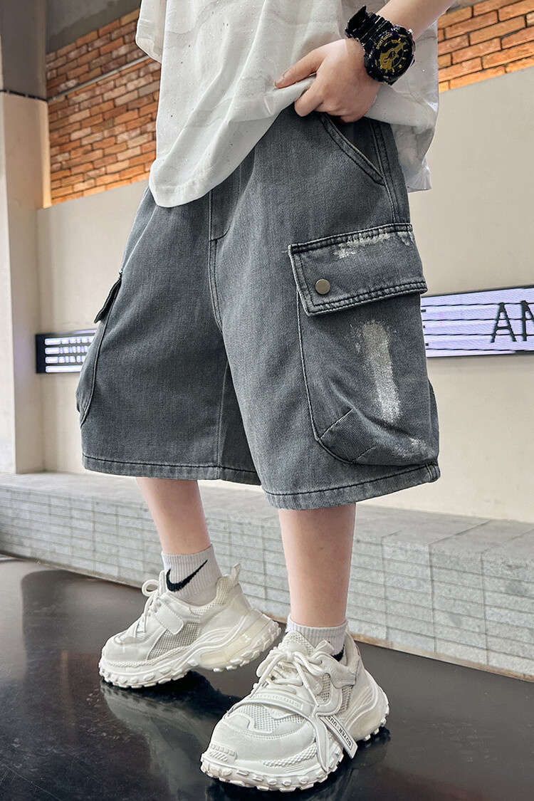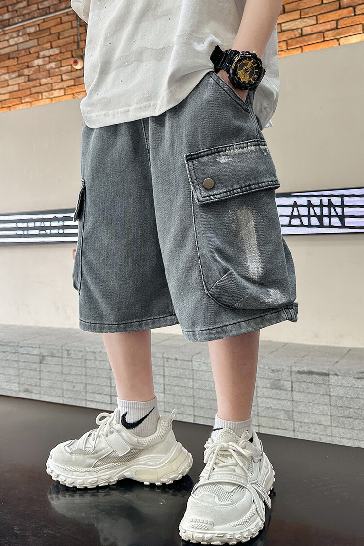 남학생 '트렌디 쿨 카우 반바지 여름 어린이 얇은 작업복 바지 느슨한 유행 소년 바지 아마존