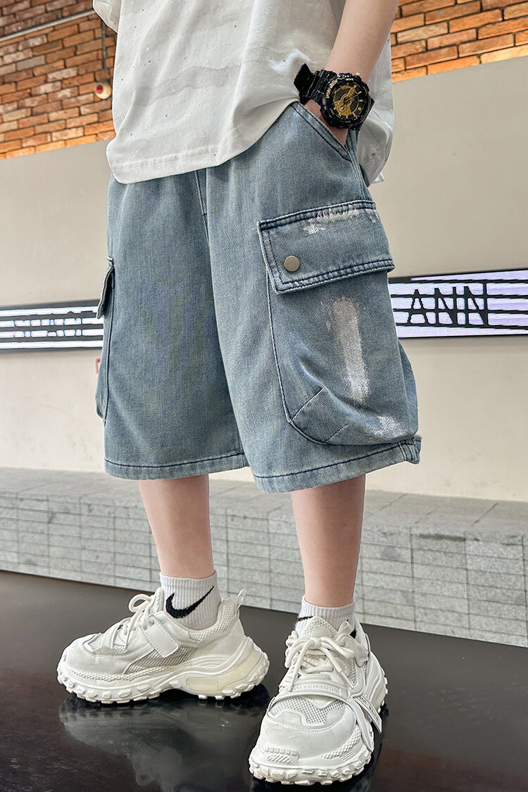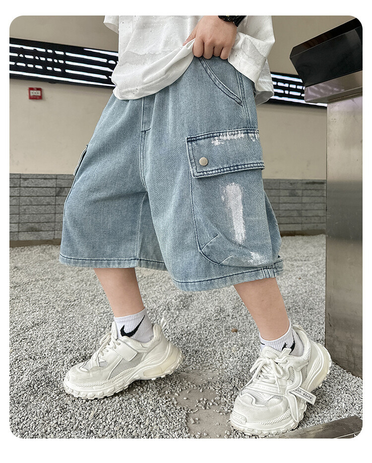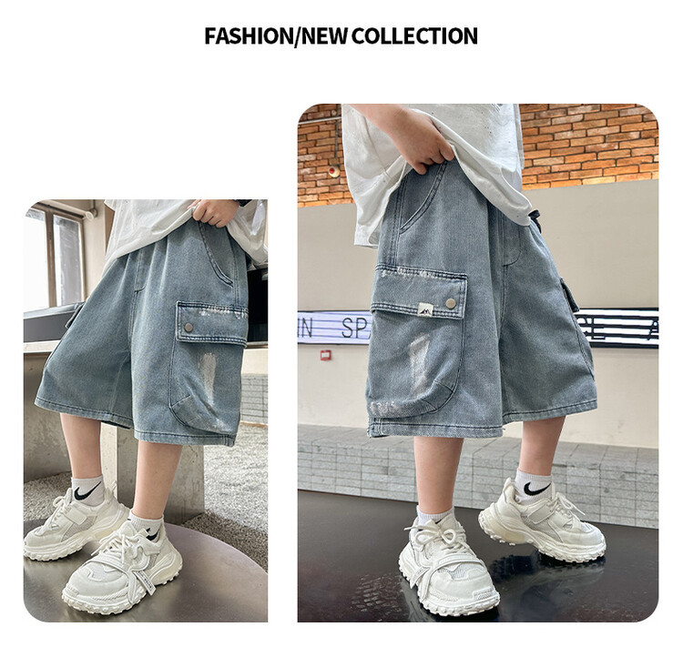 남학생 '트렌디 쿨 카우 반바지 여름 어린이 얇은 작업복 바지 느슨한 유행 소년 바지 아마존스토어 가기